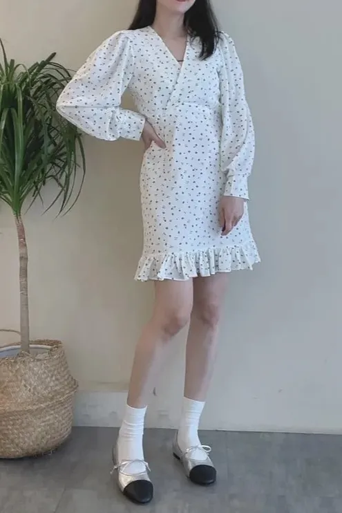 下擺有點荷花擺的感覺 浪漫小洋裝🤞