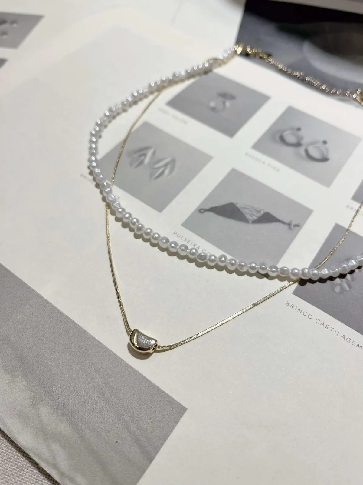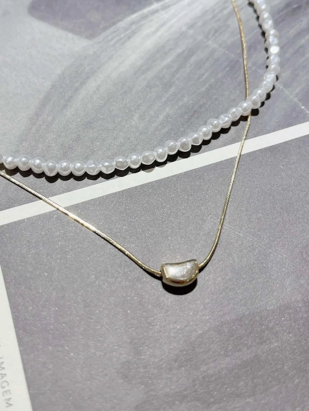 淡水珍珠+圓弧愛心鍊