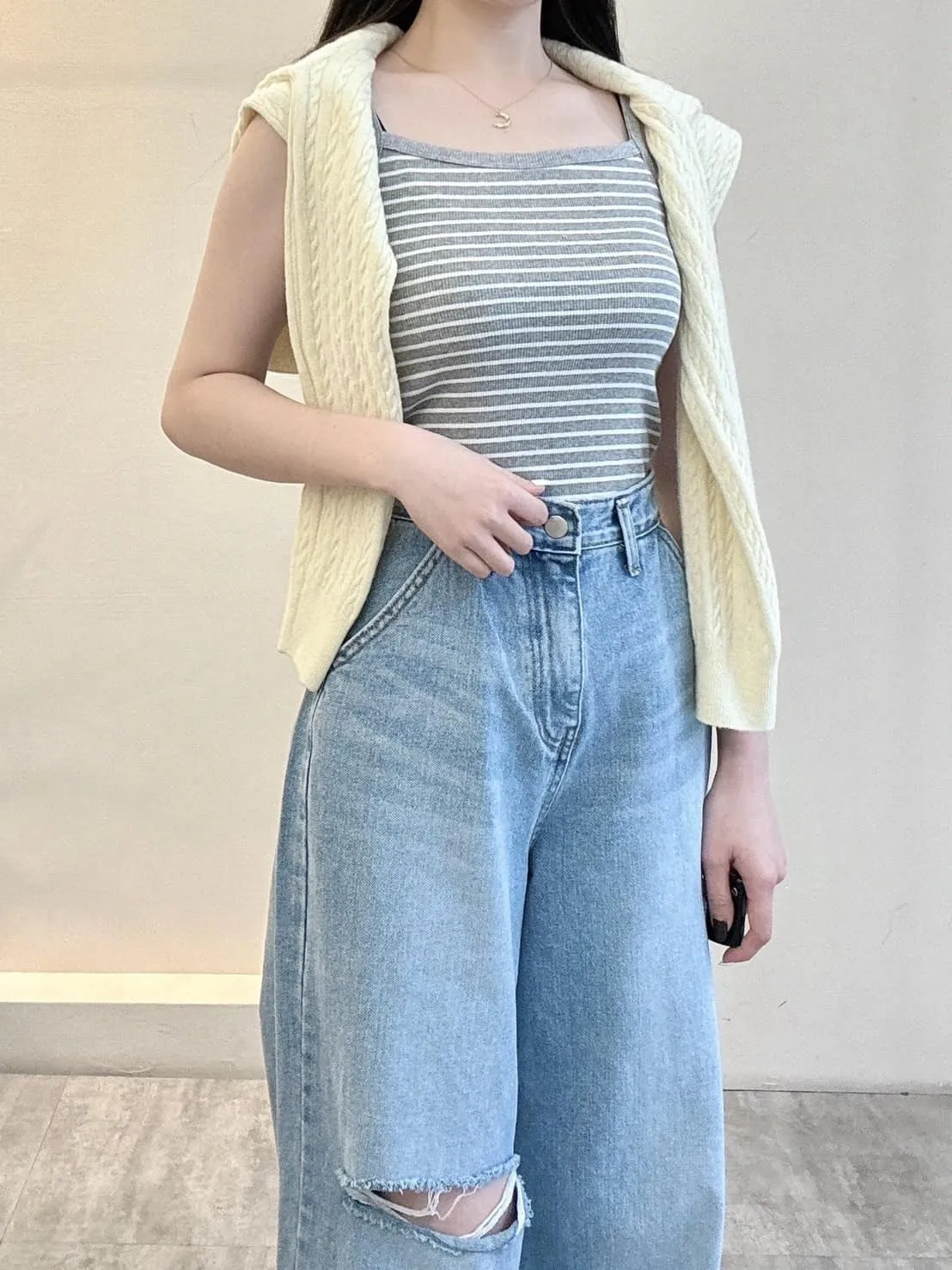 橫條滾邊背心