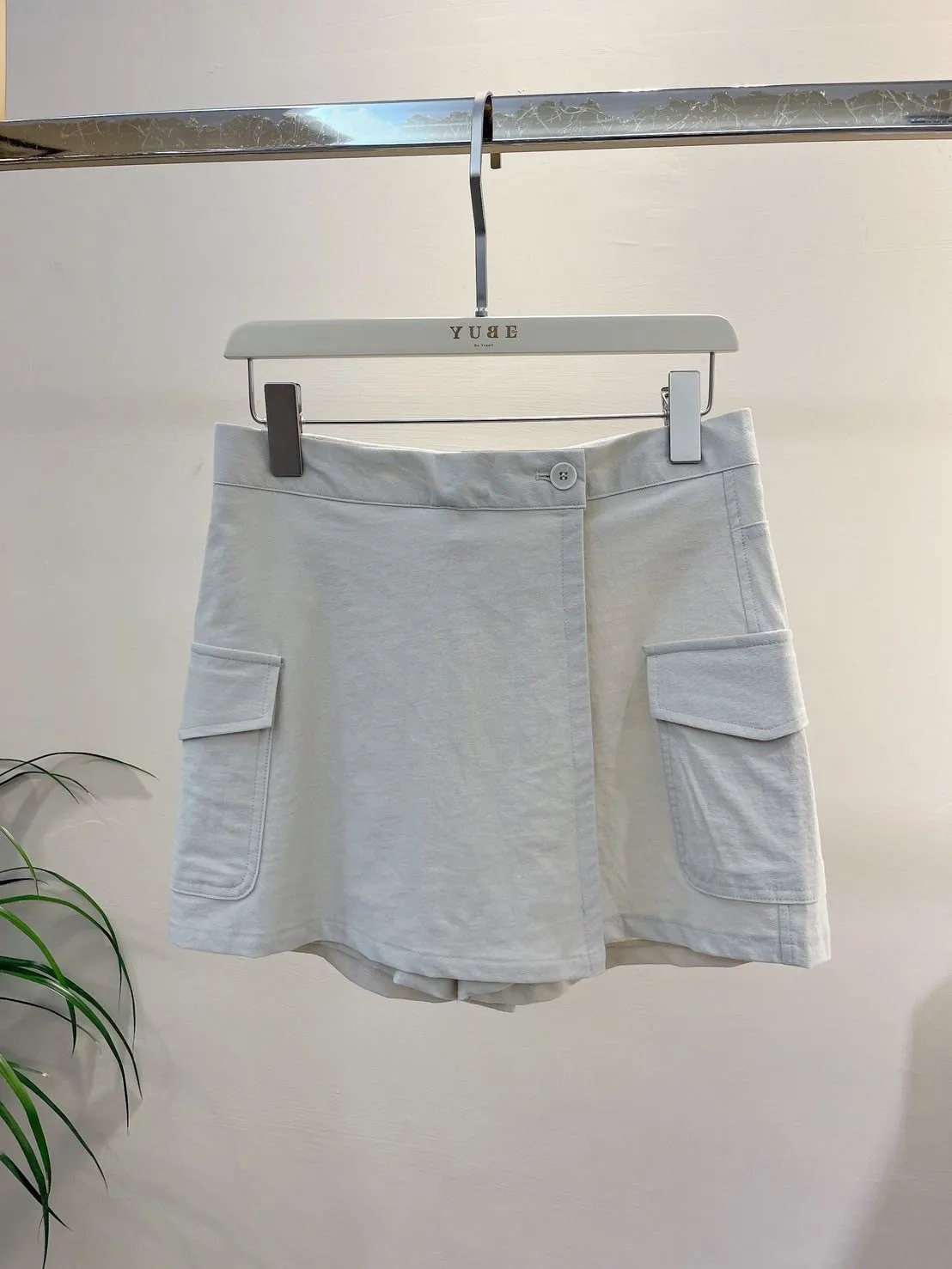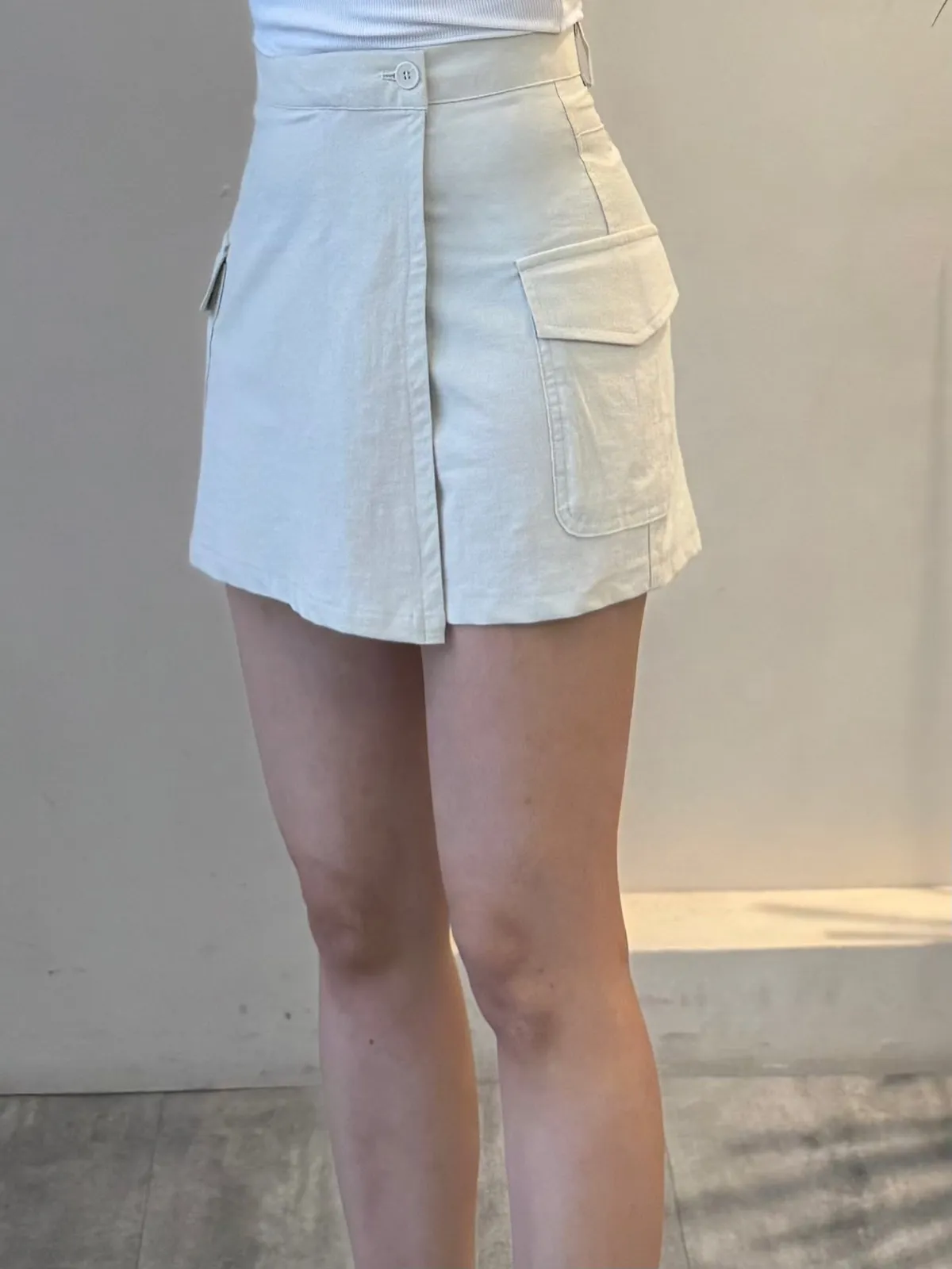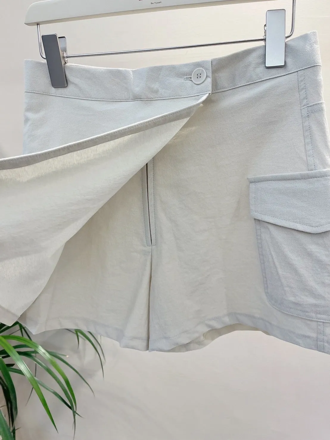 基礎百搭雙口袋短褲,有前遮片設計,看起來是裙子其實是褲子!!