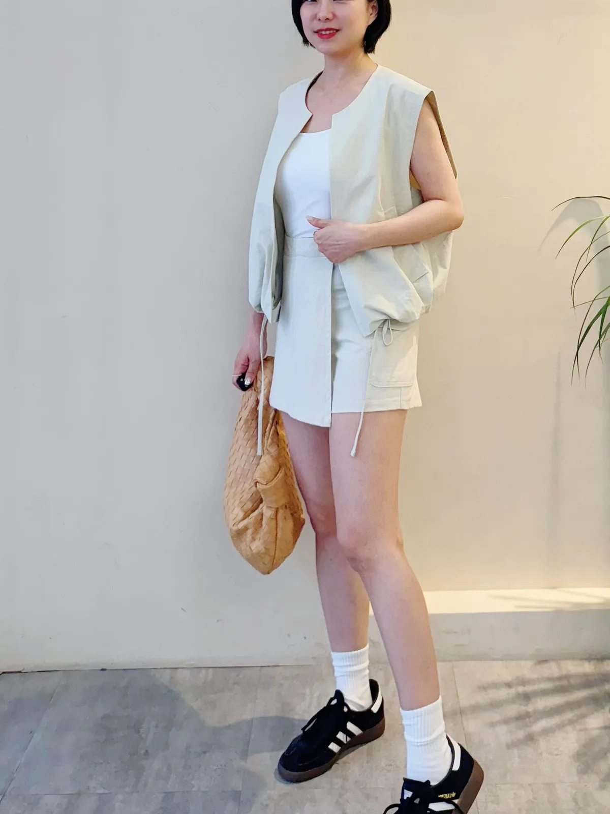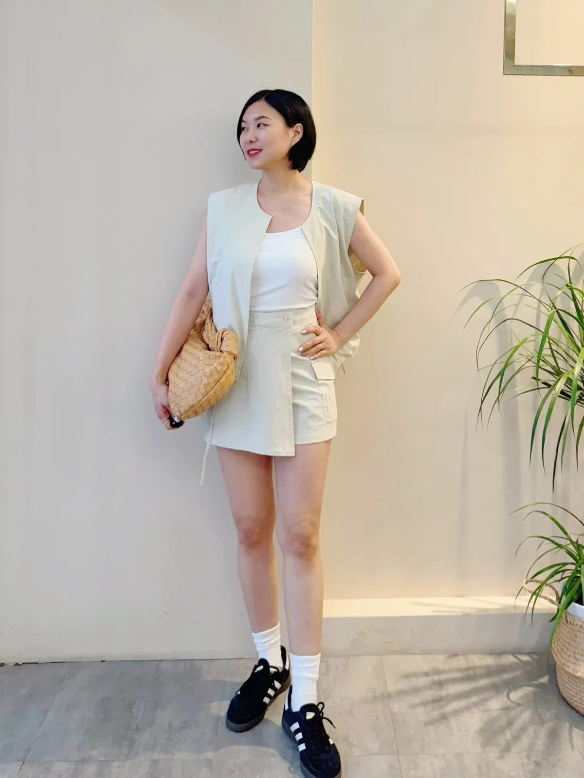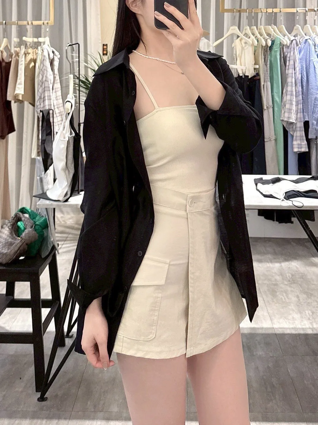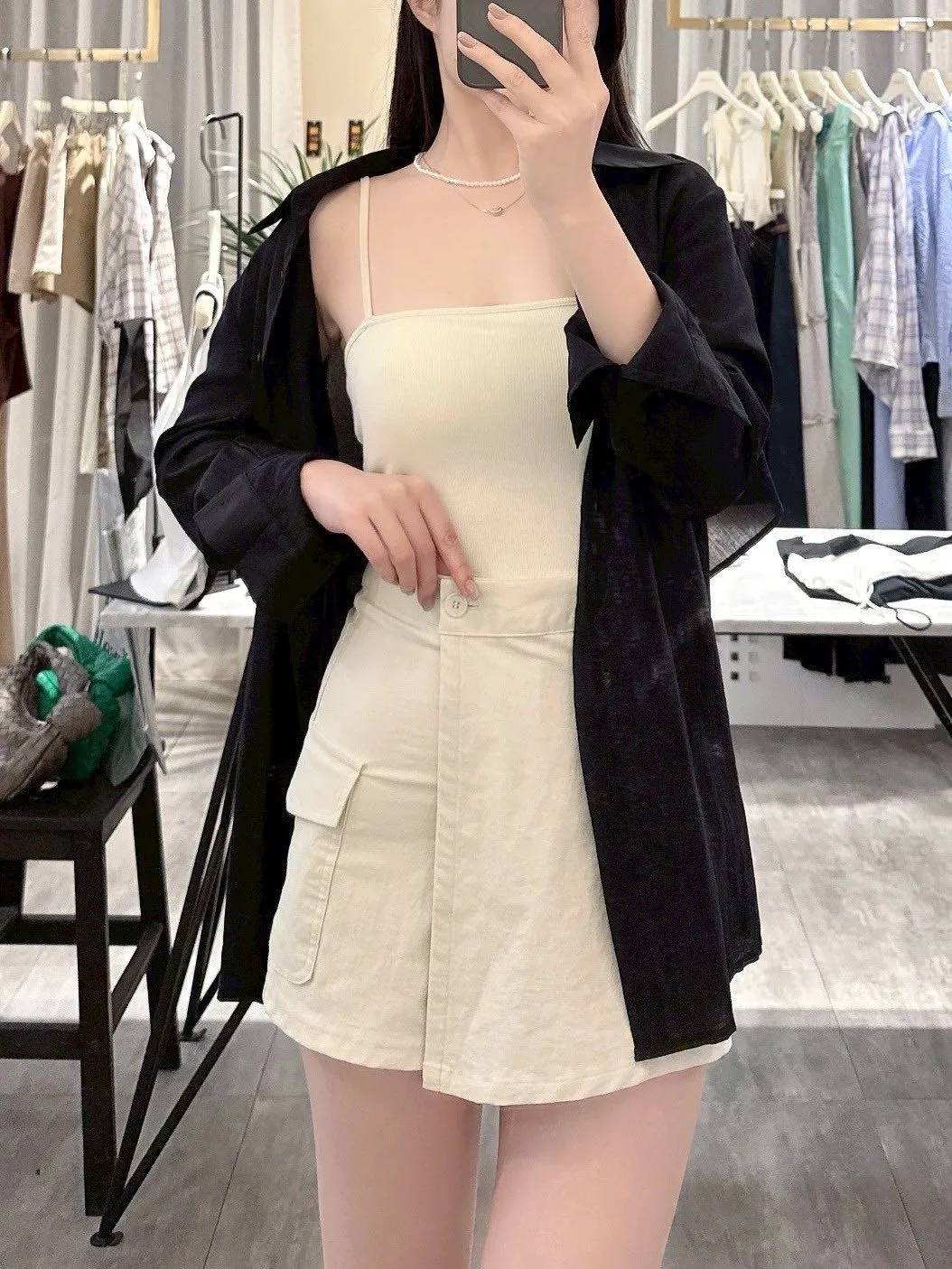 基礎百搭雙口袋短褲,有前遮片設計,看起來是裙子其實是褲子!!