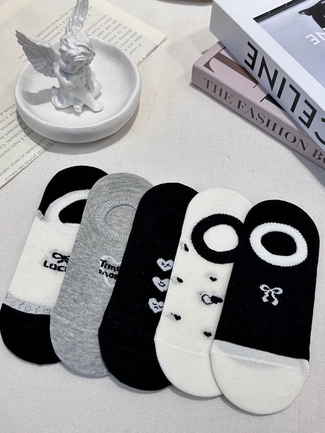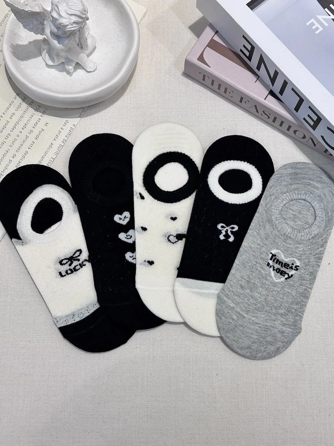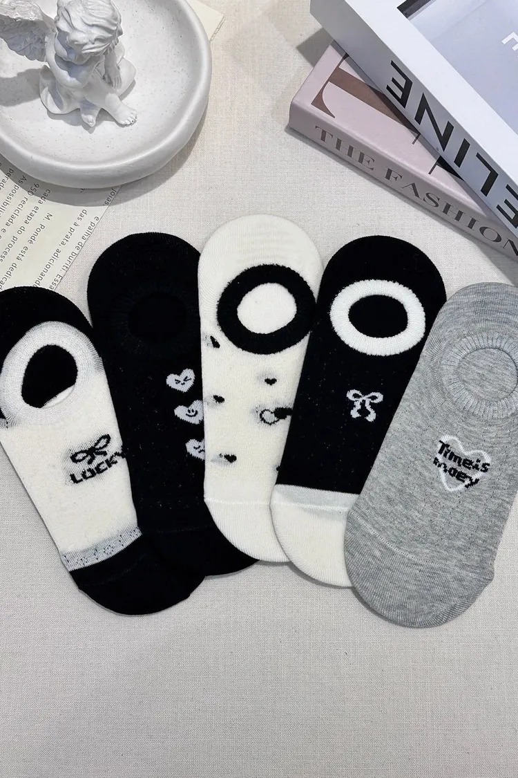 黑白灰造型薄款短襪 (一組五雙)