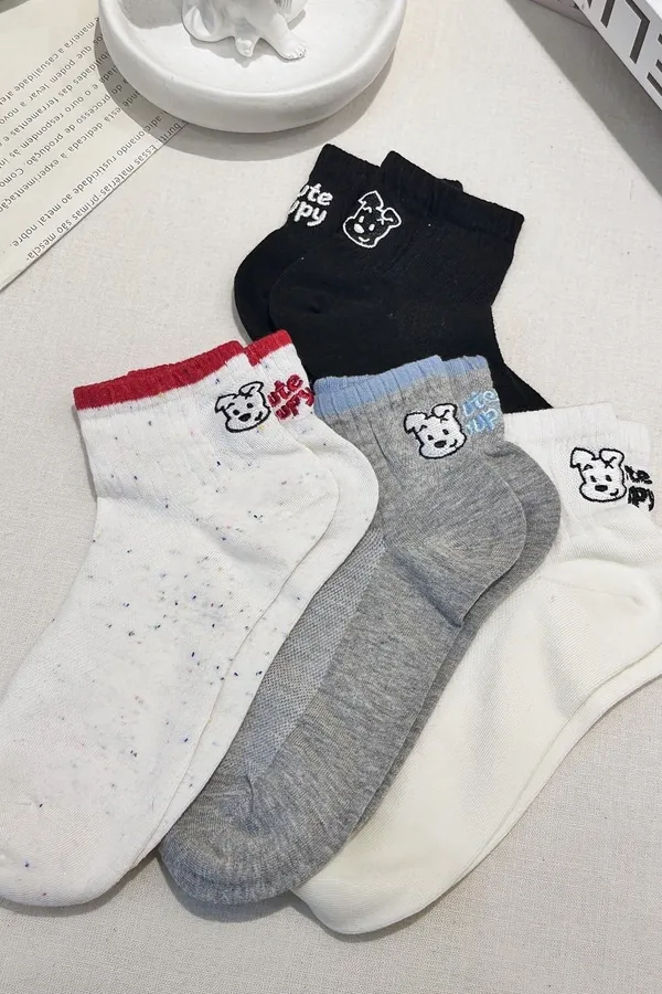 狗狗刺繡短襪