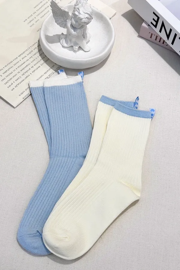 撞色滾邊襪