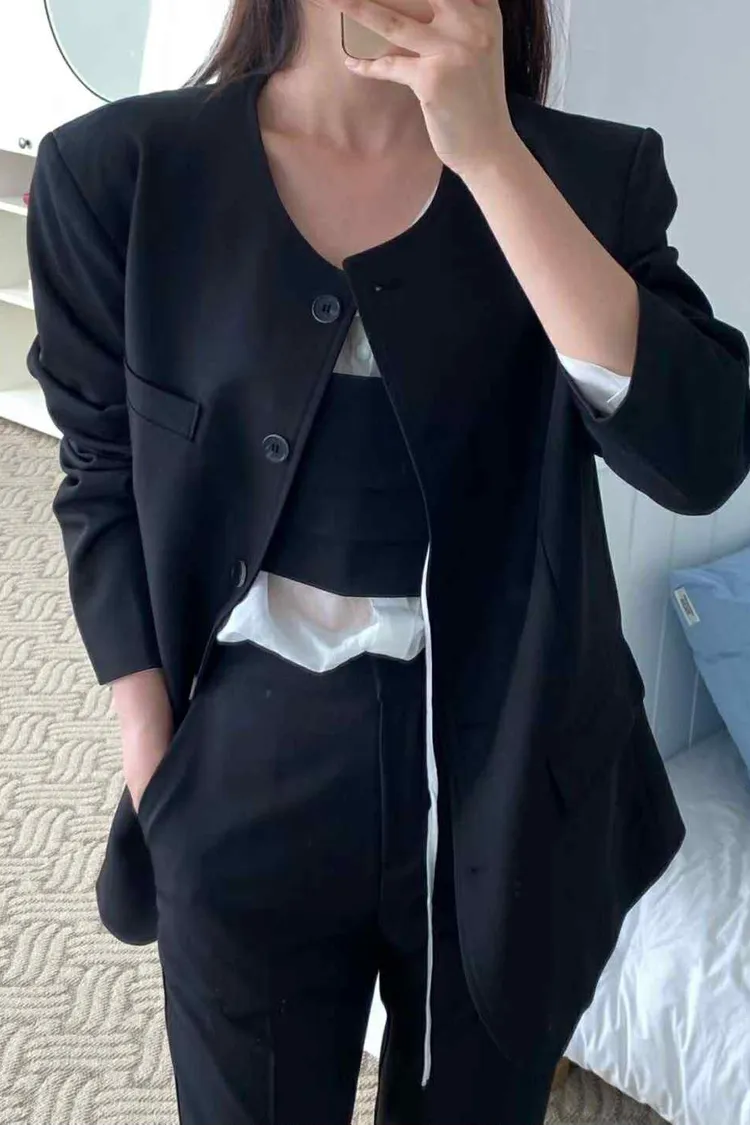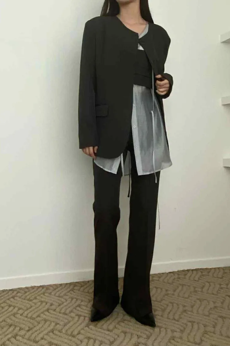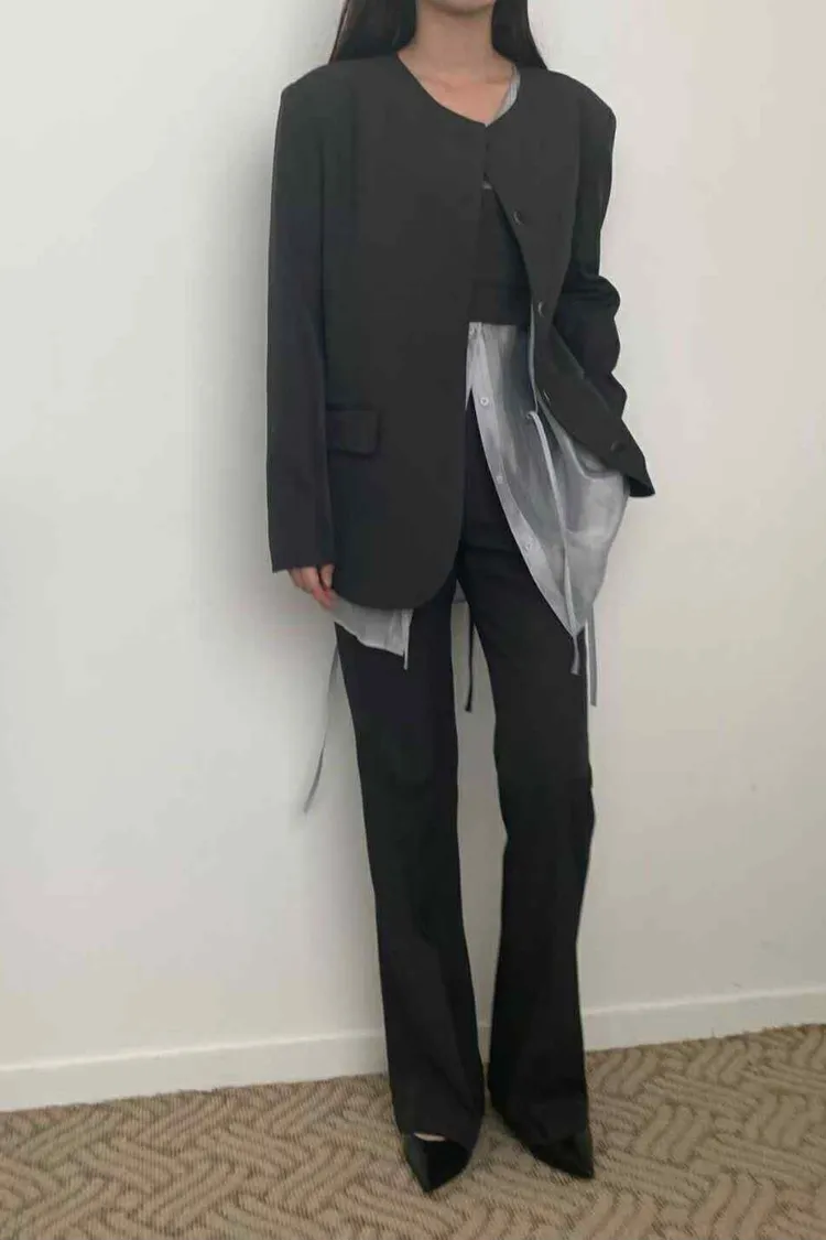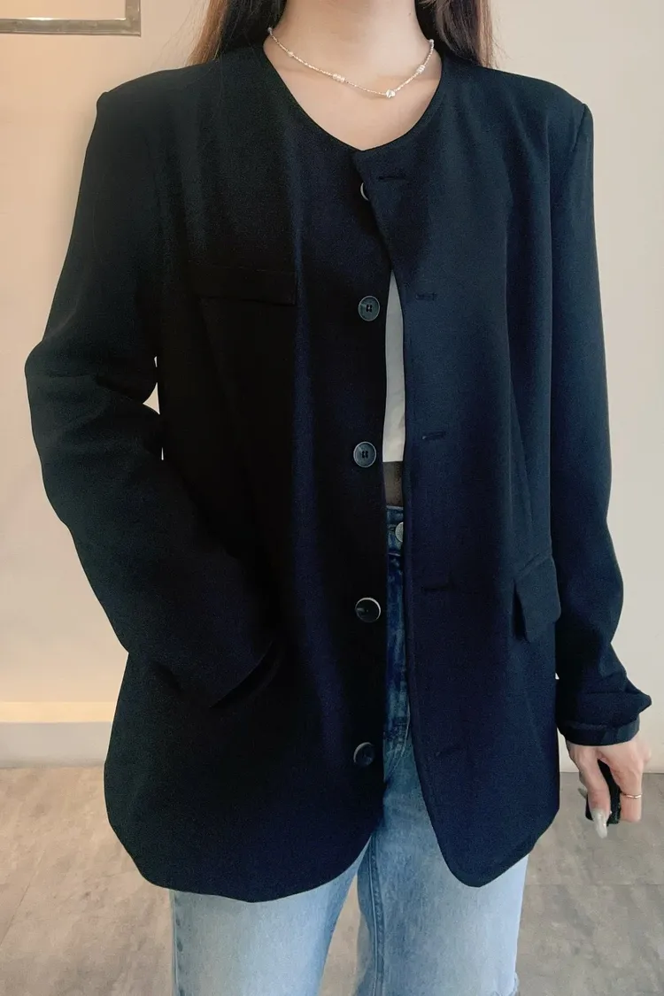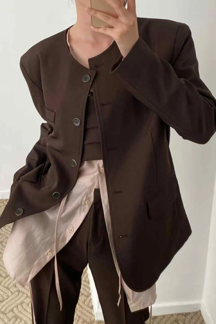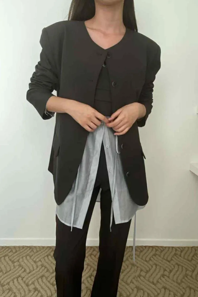 長版圓領俐落西外