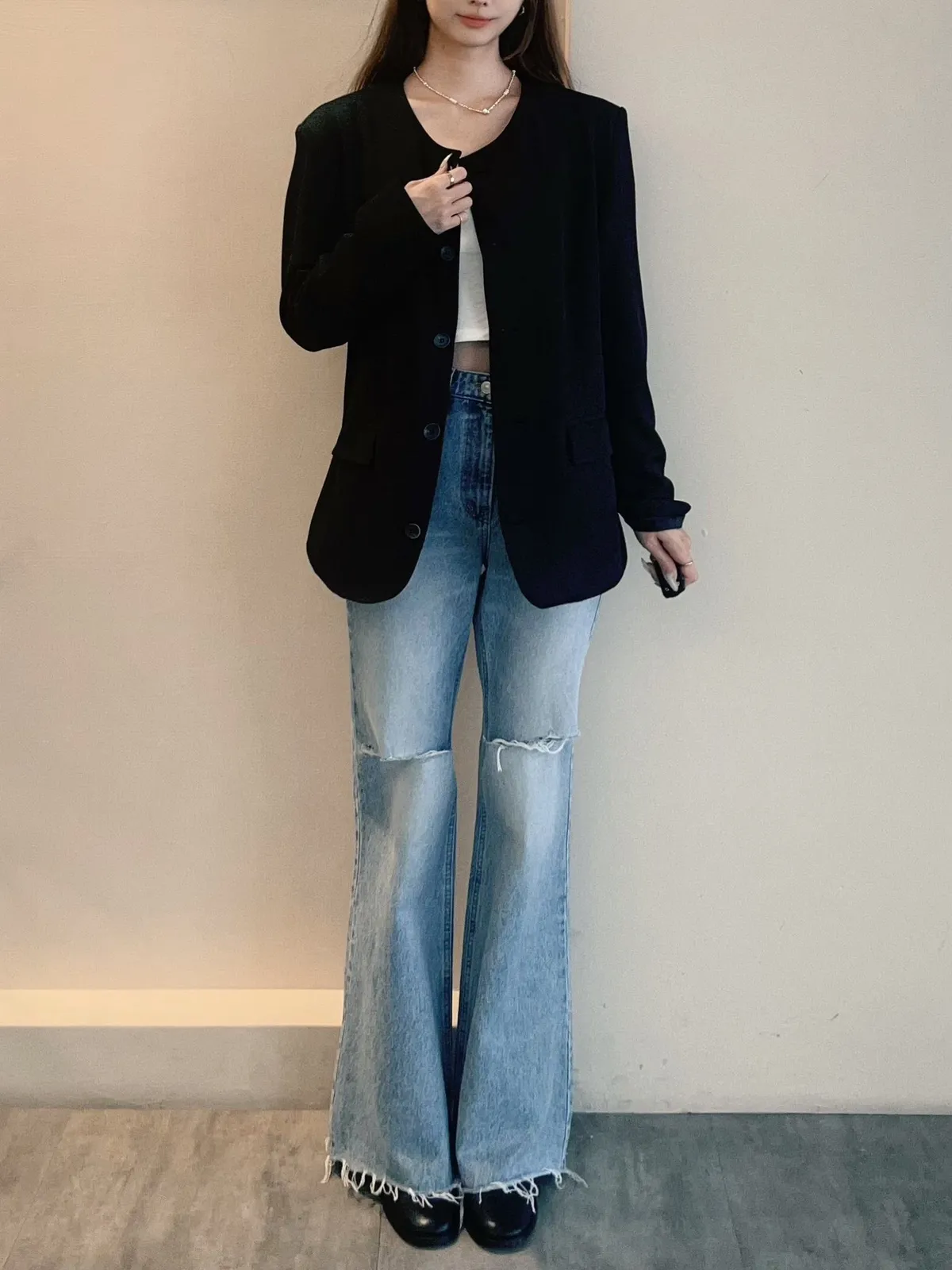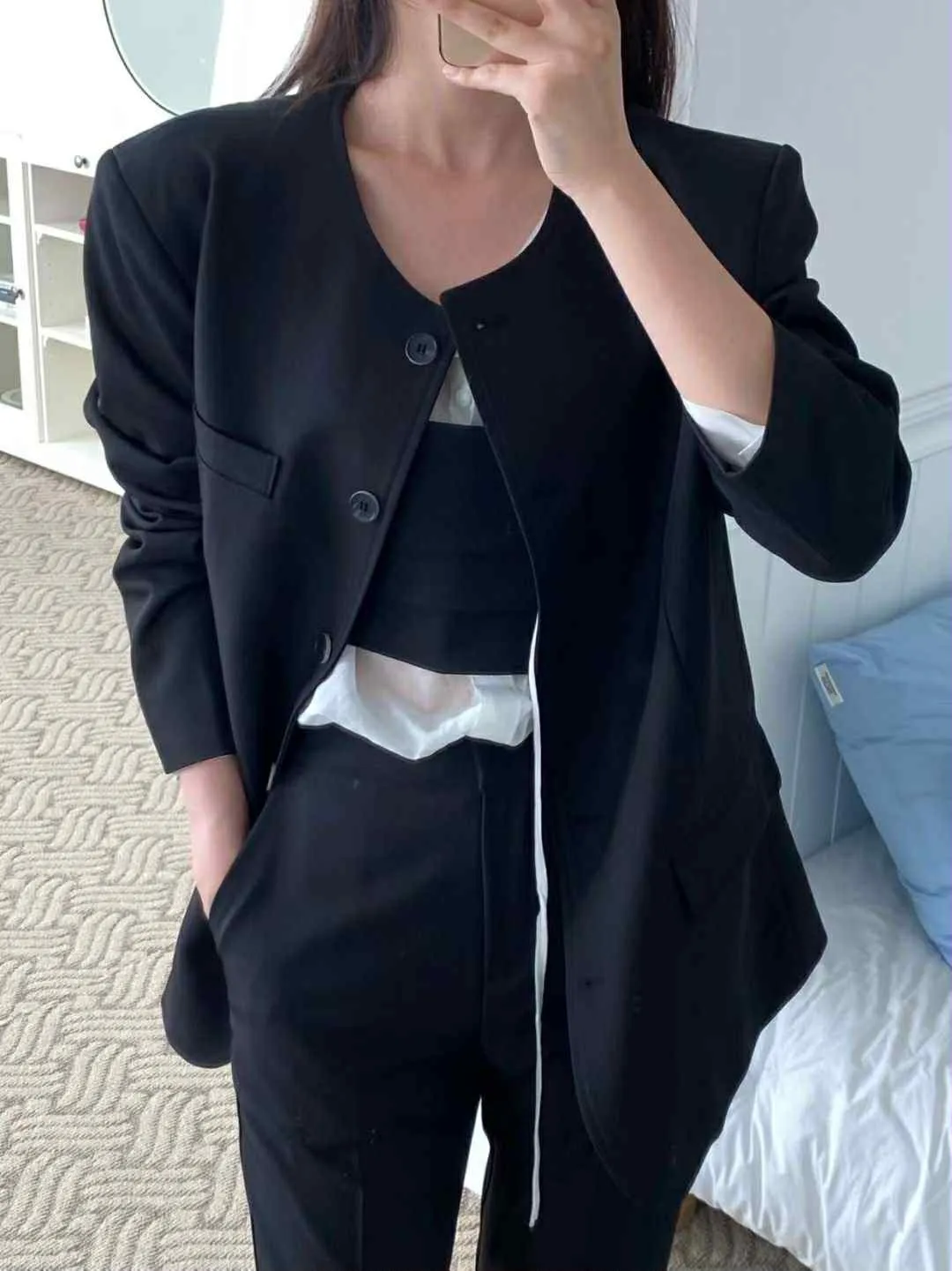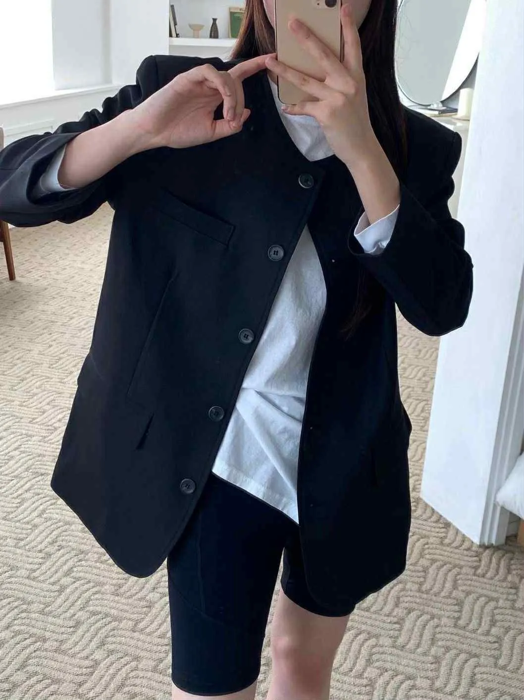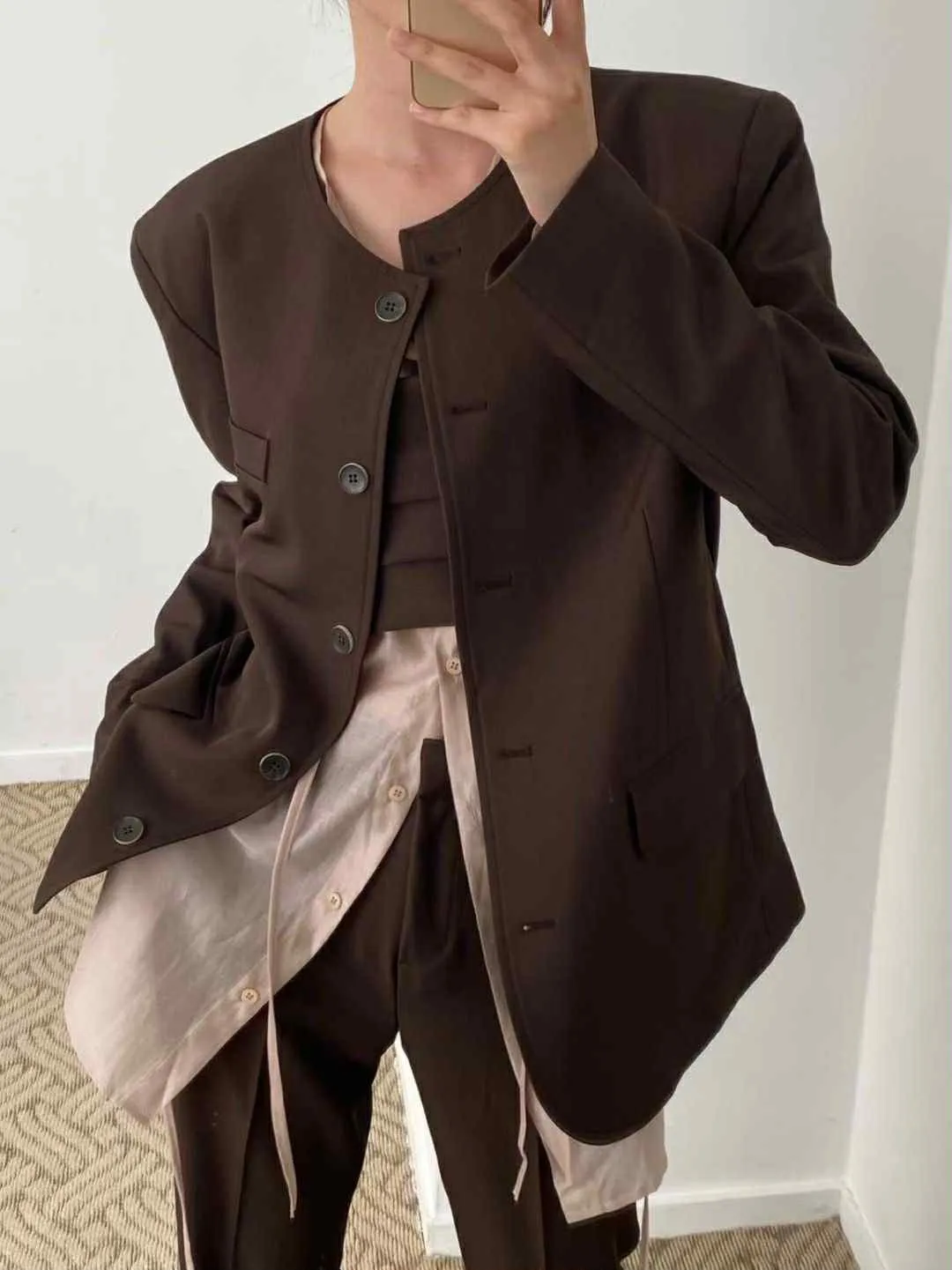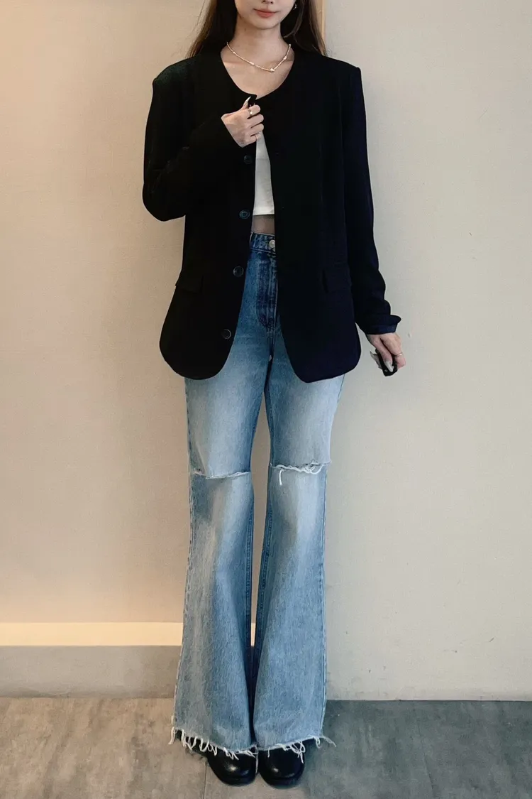 長版圓領俐落西外