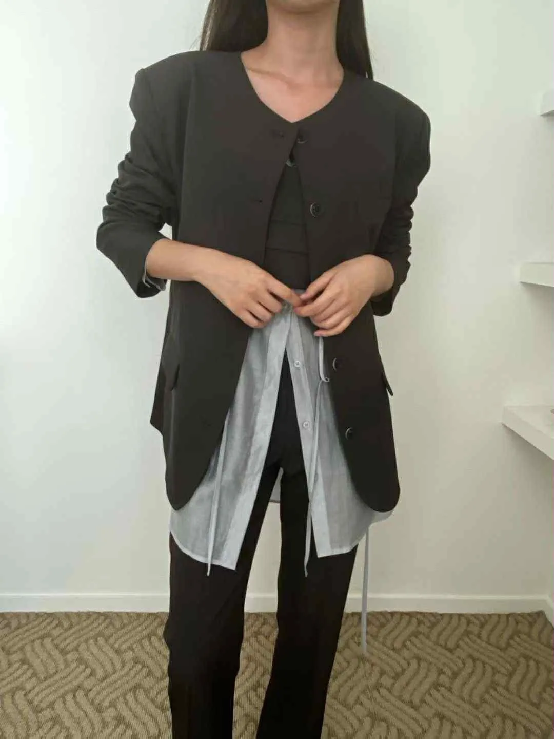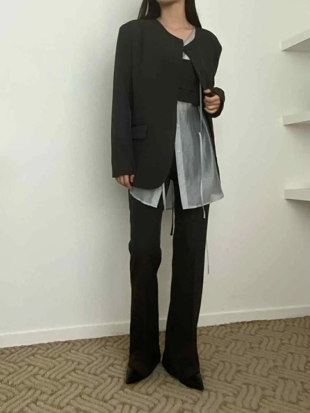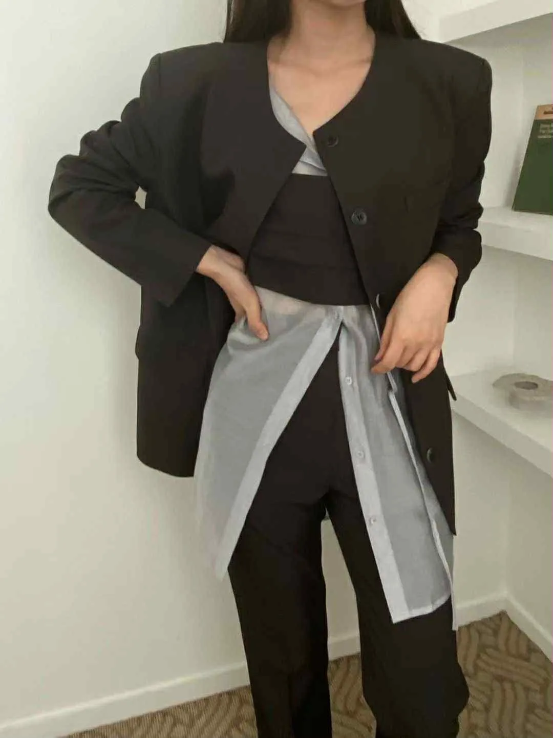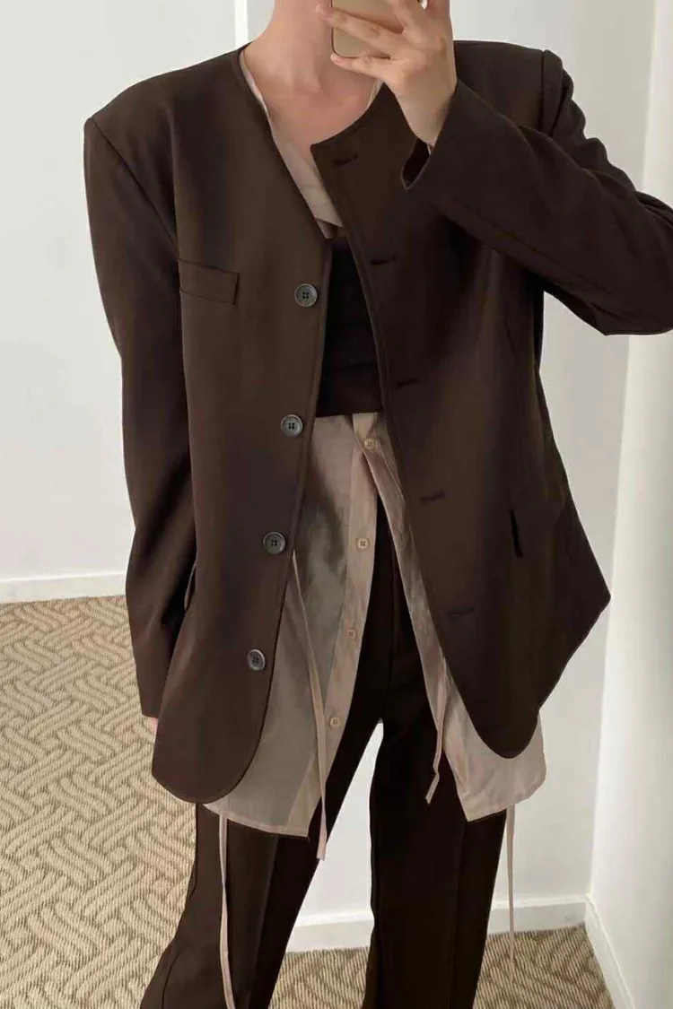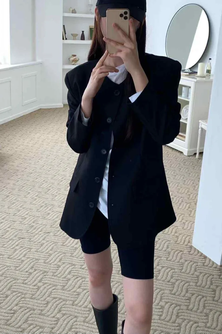 長版有點Over size 的西裝外套不要太時髦