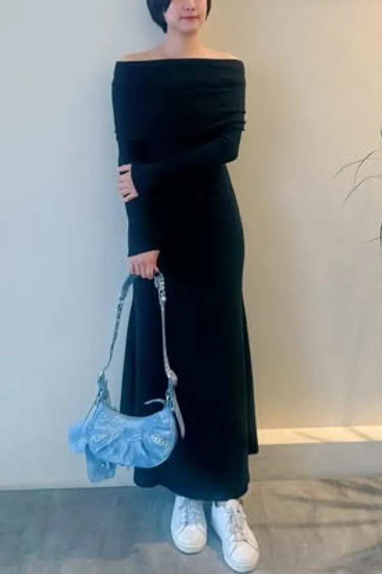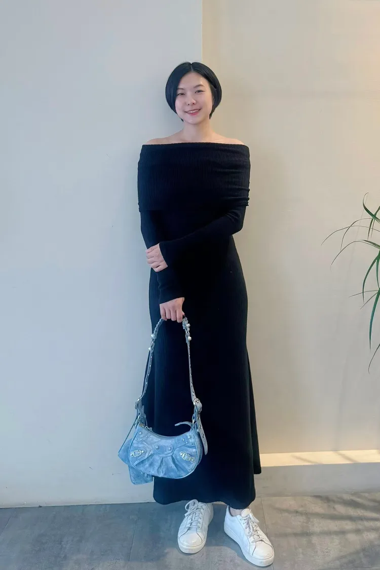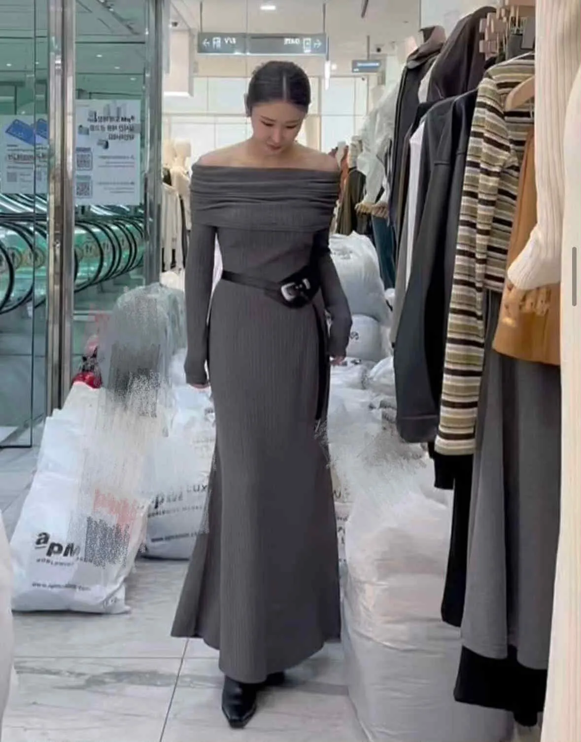 胸前縐摺設計+小魚尾下擺吸睛度破表😍