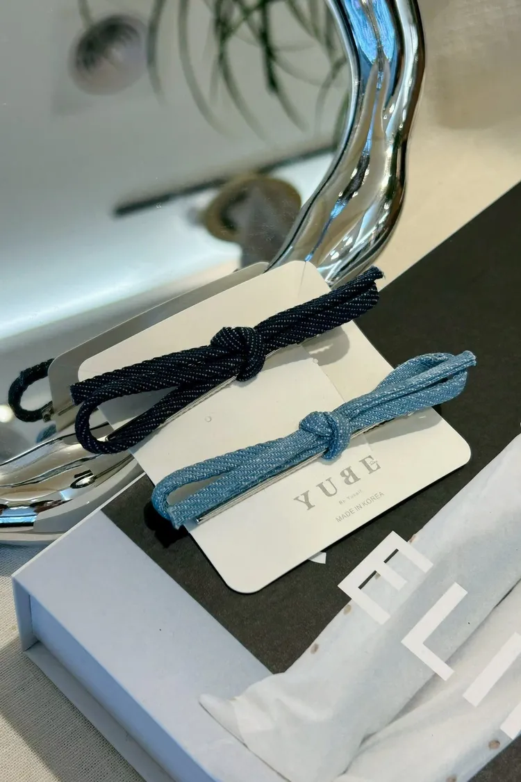 牛仔蝴蝶結髮夾