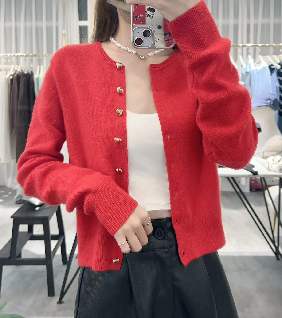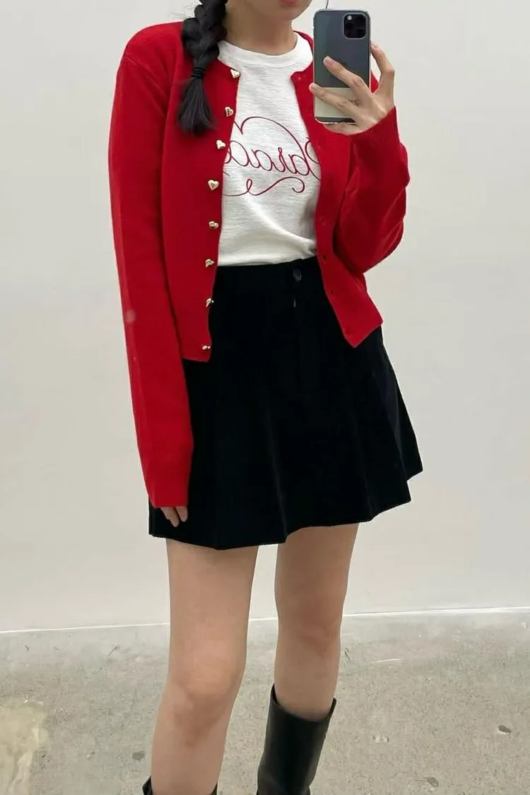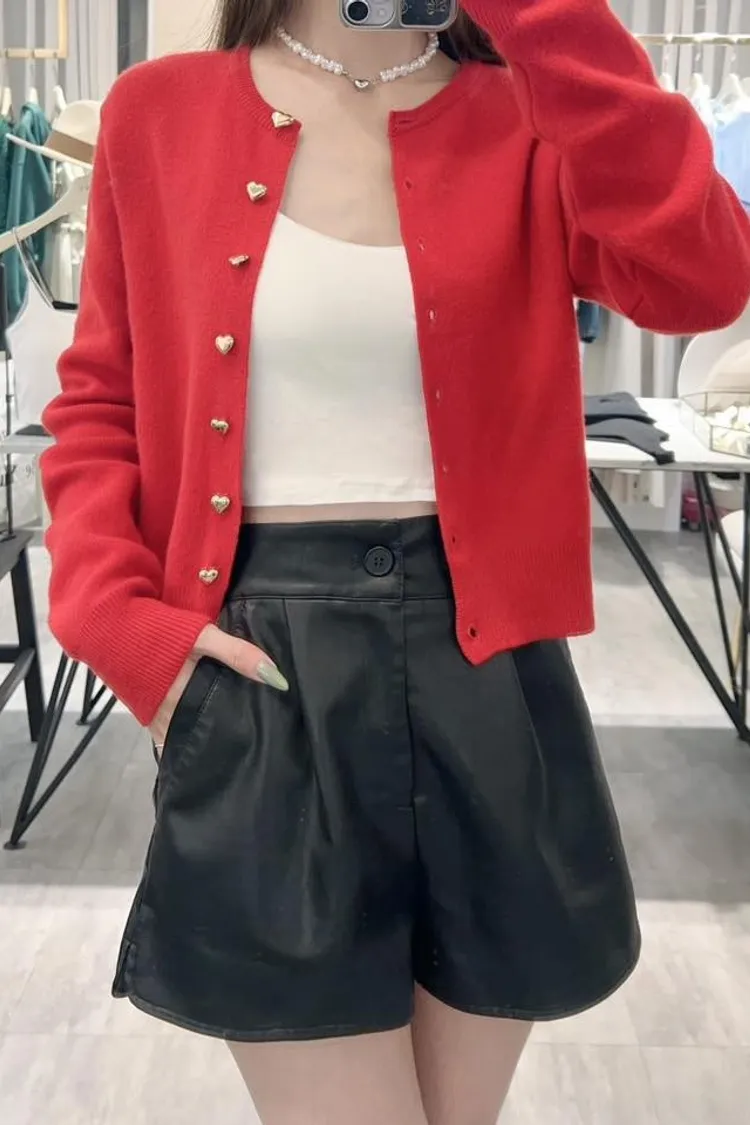 可愛的愛心鈕扣造型針織外💖