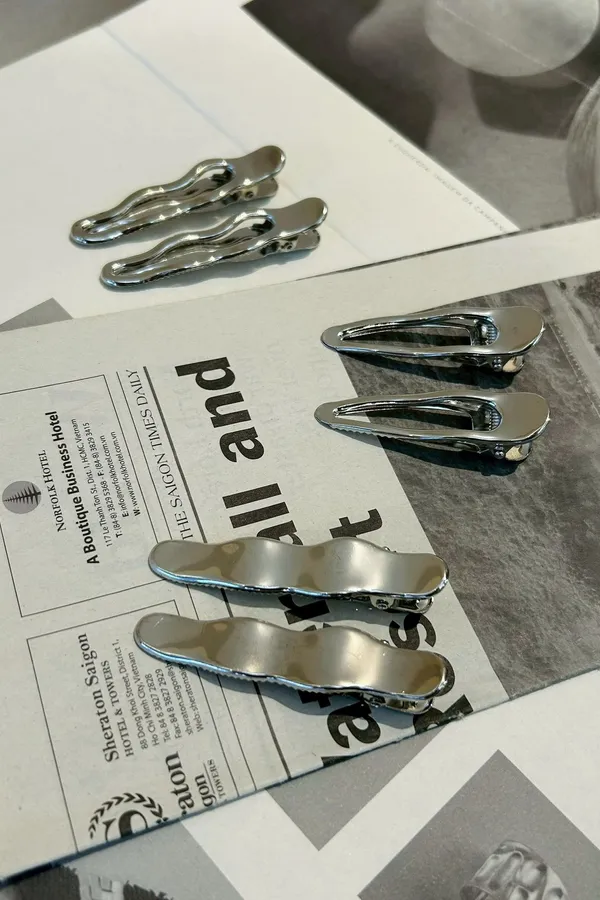 金屬銀色波浪夾 一對