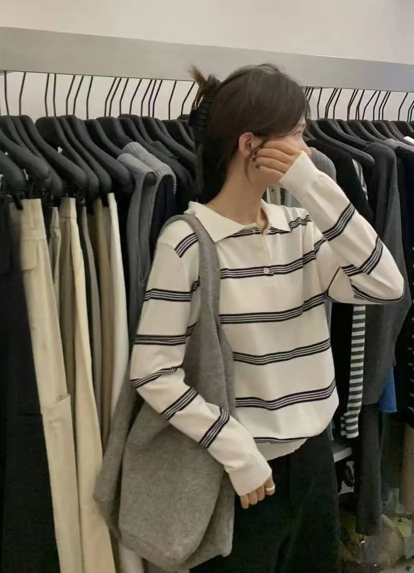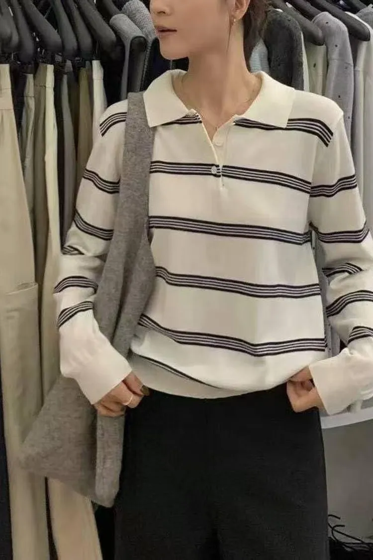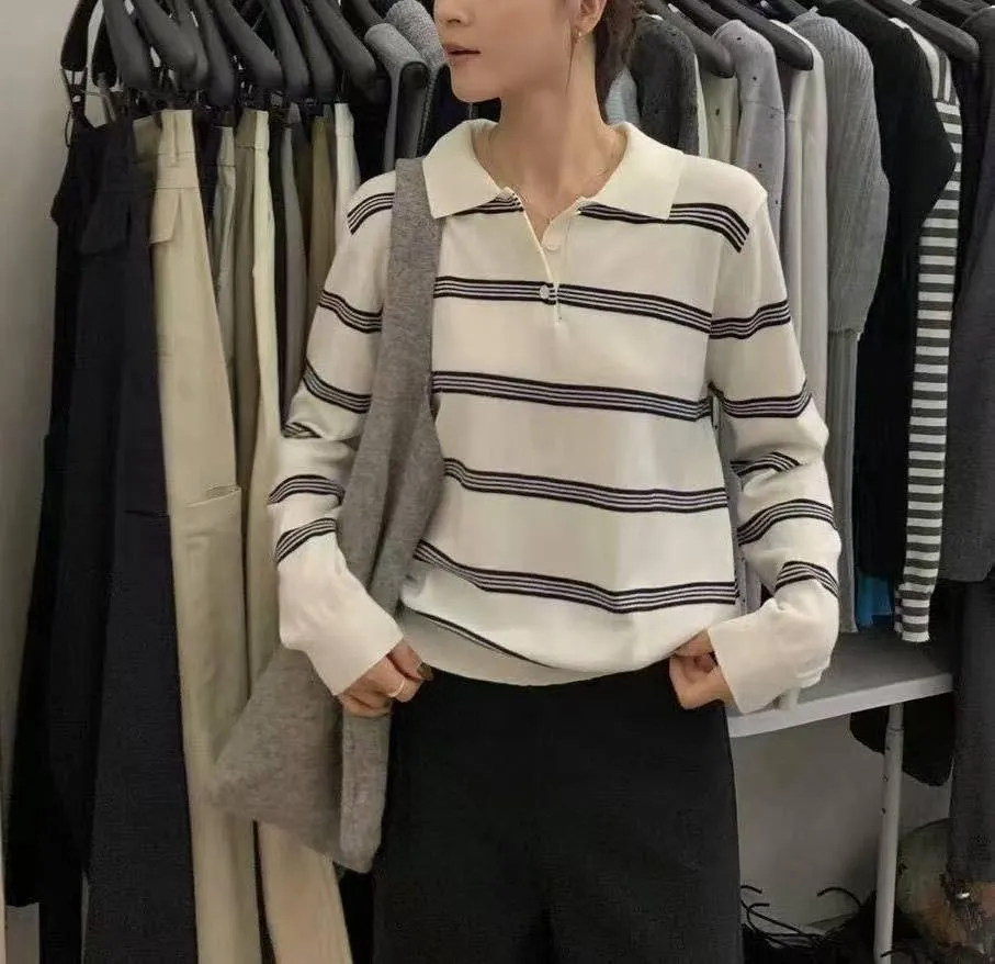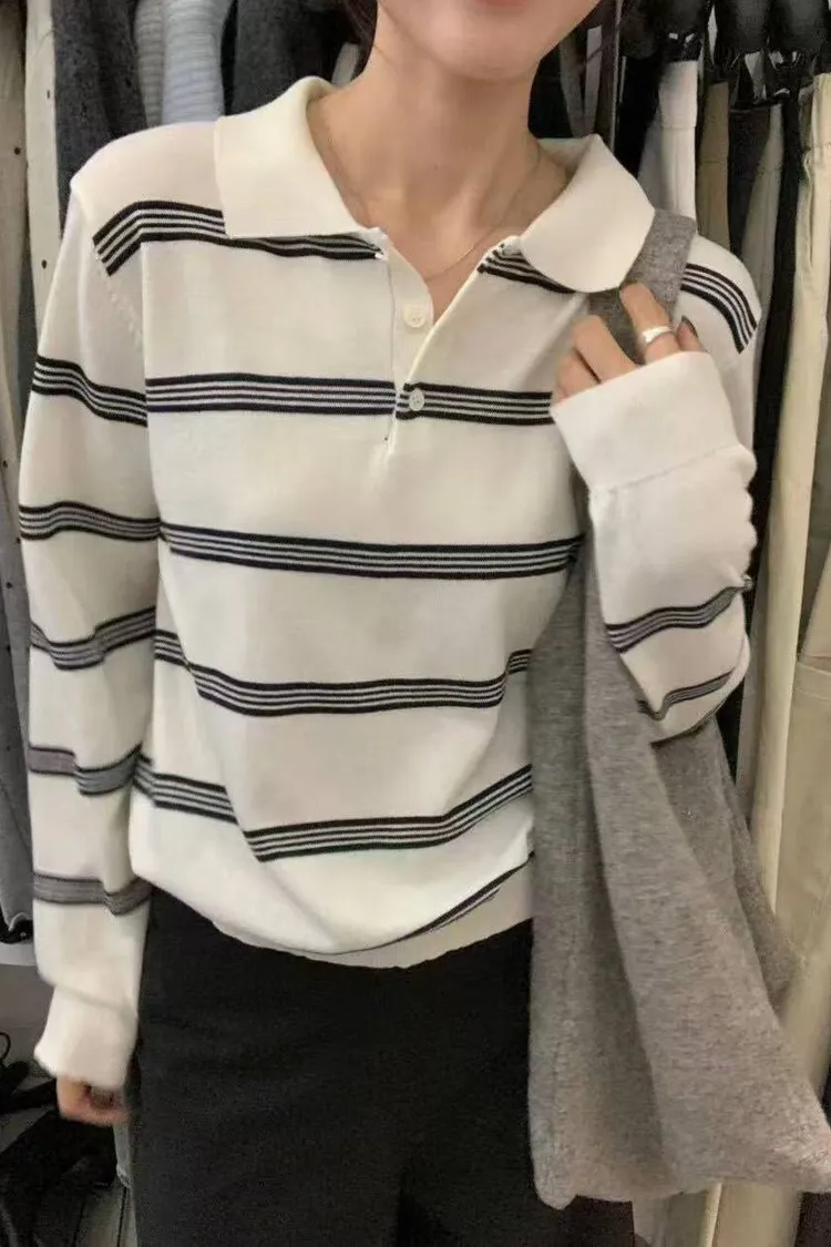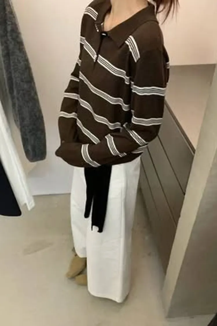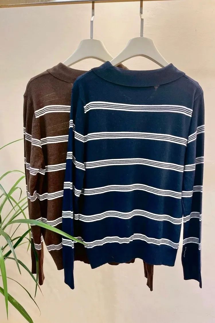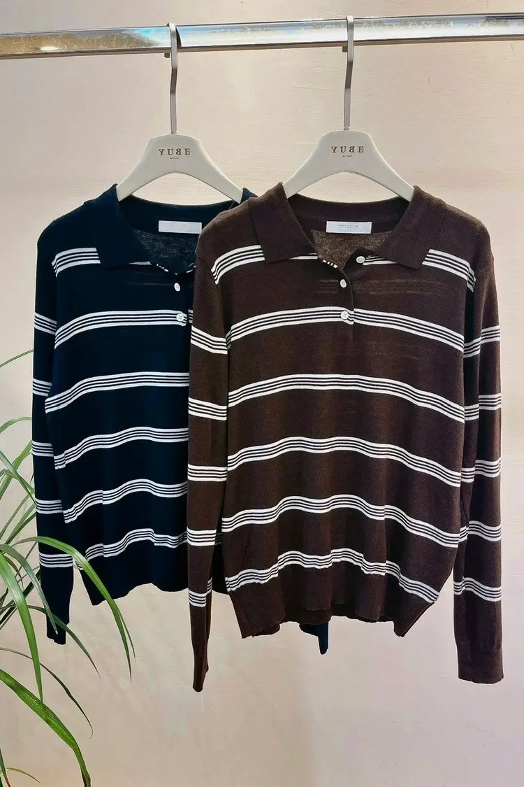 橫條針織POLO T