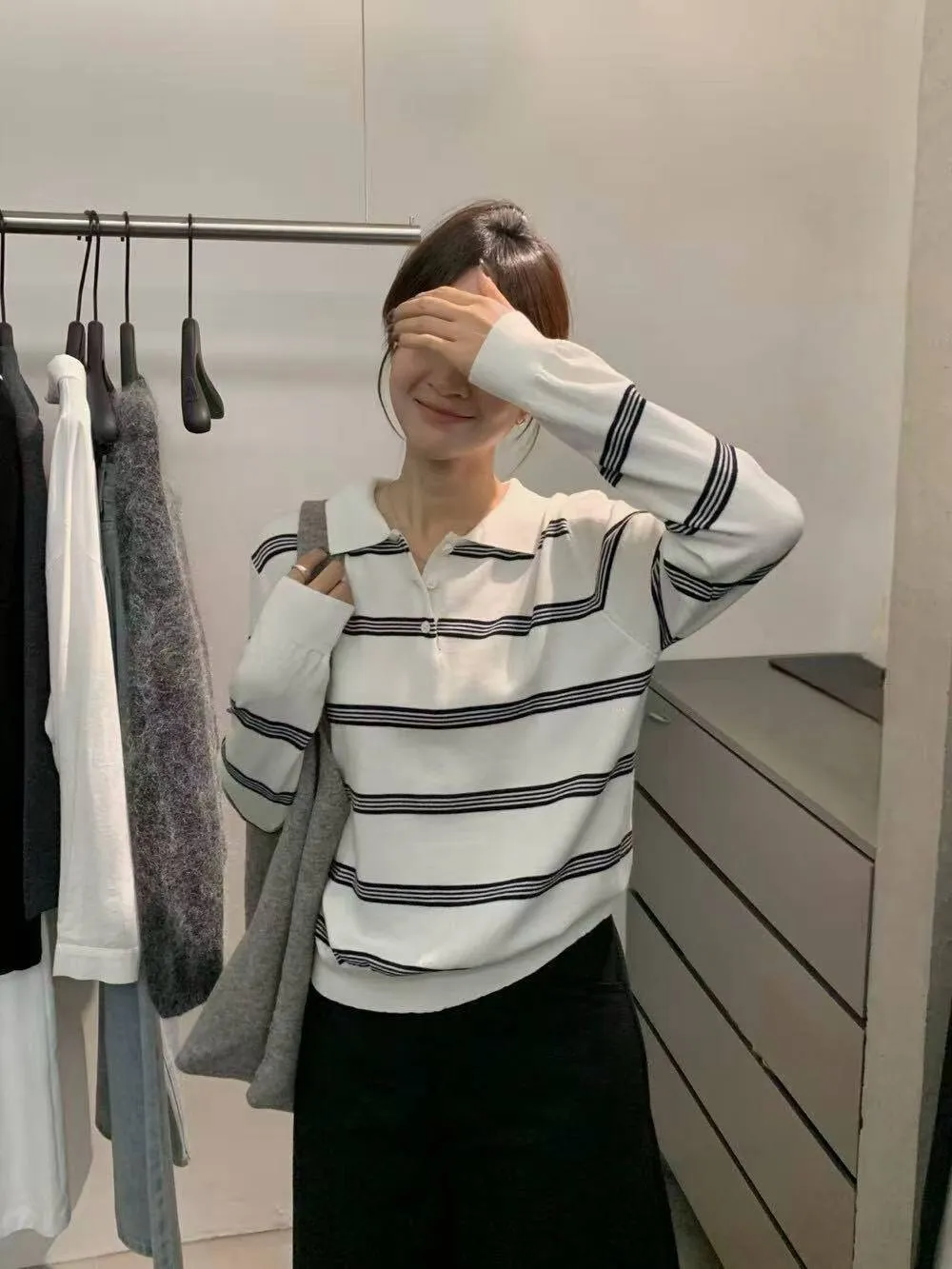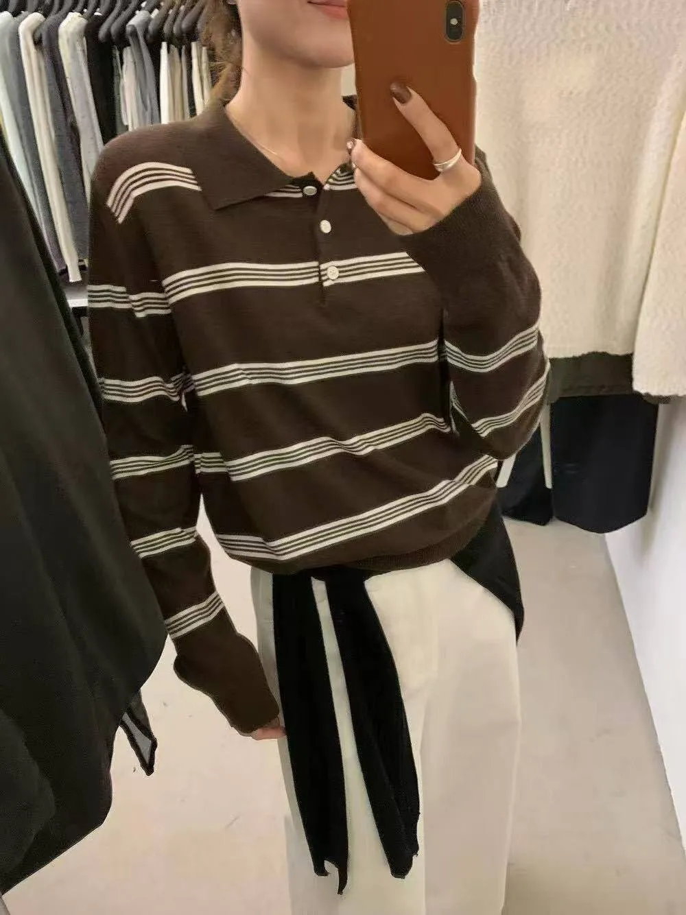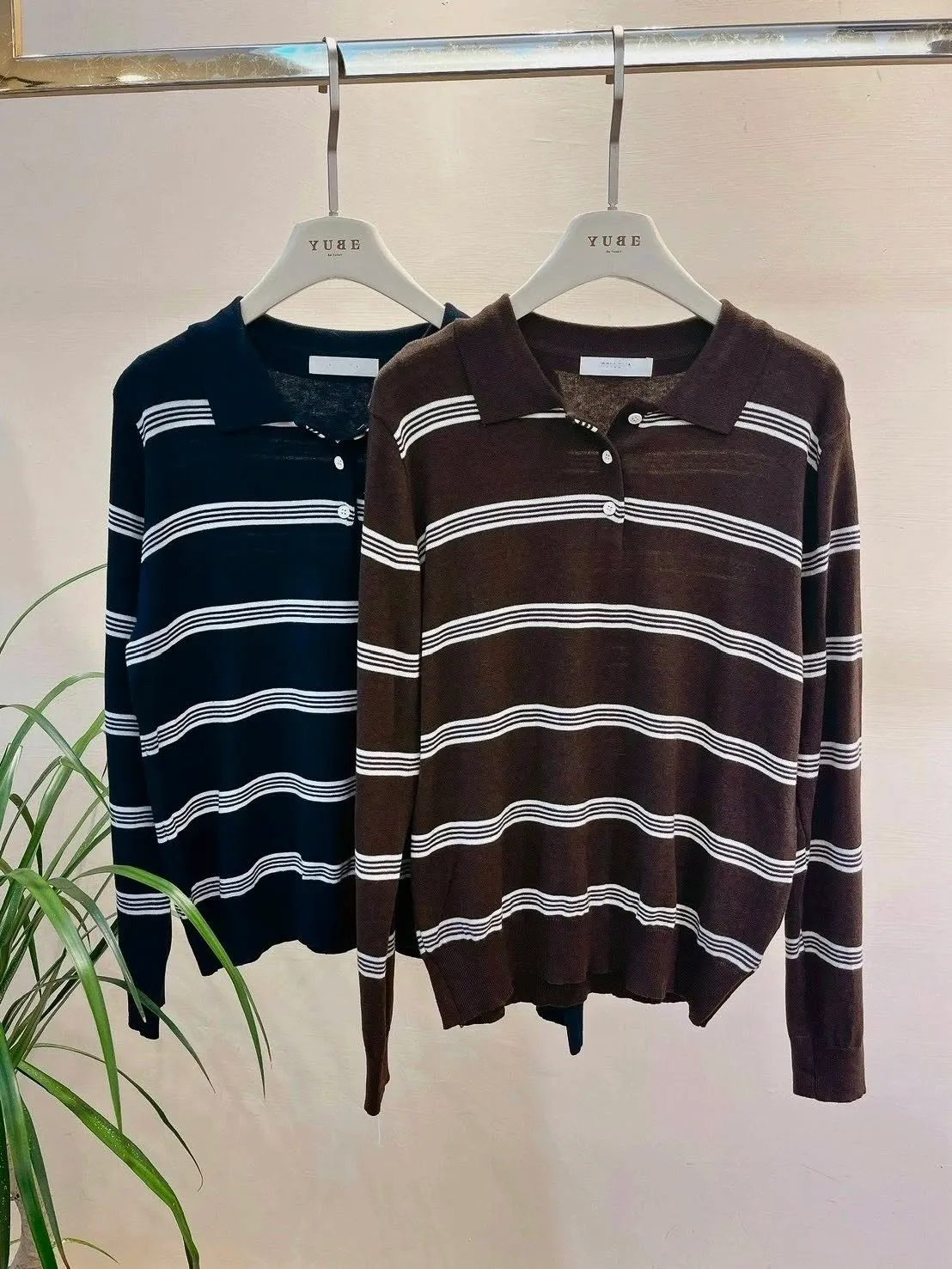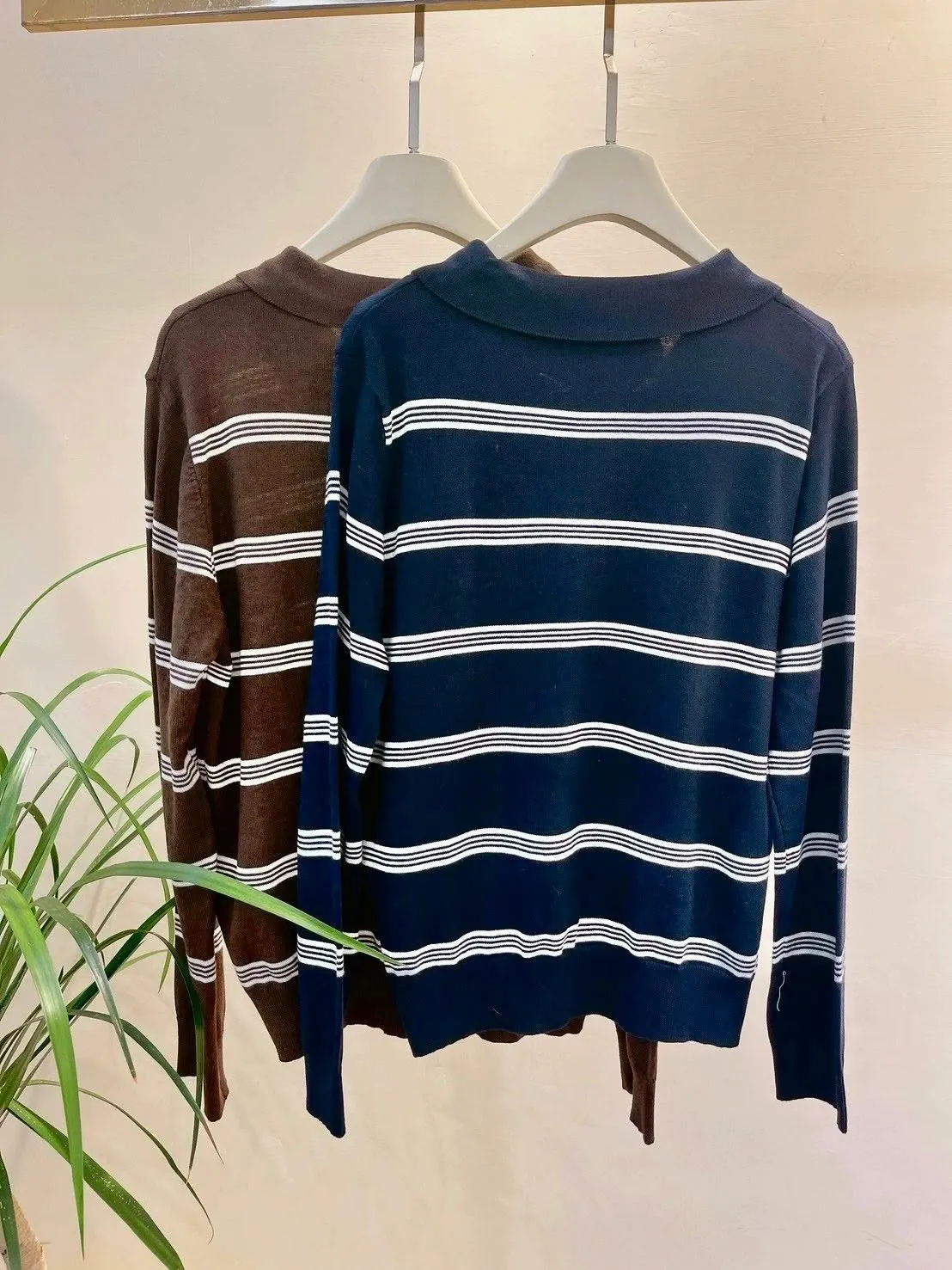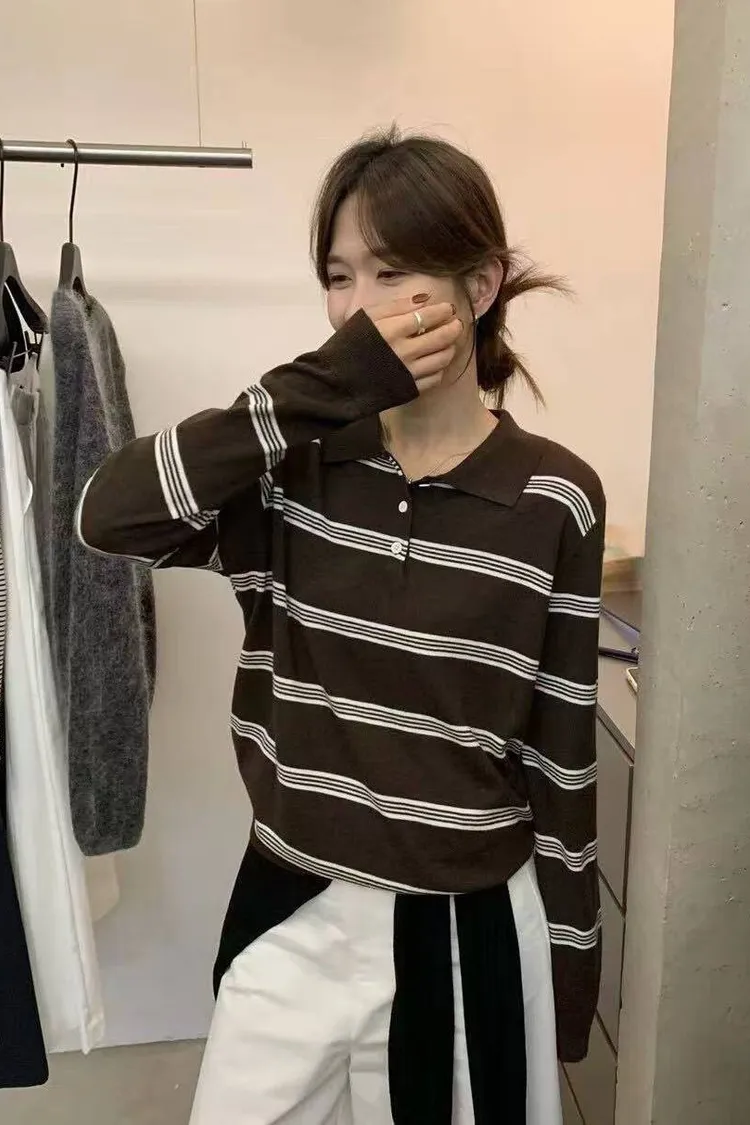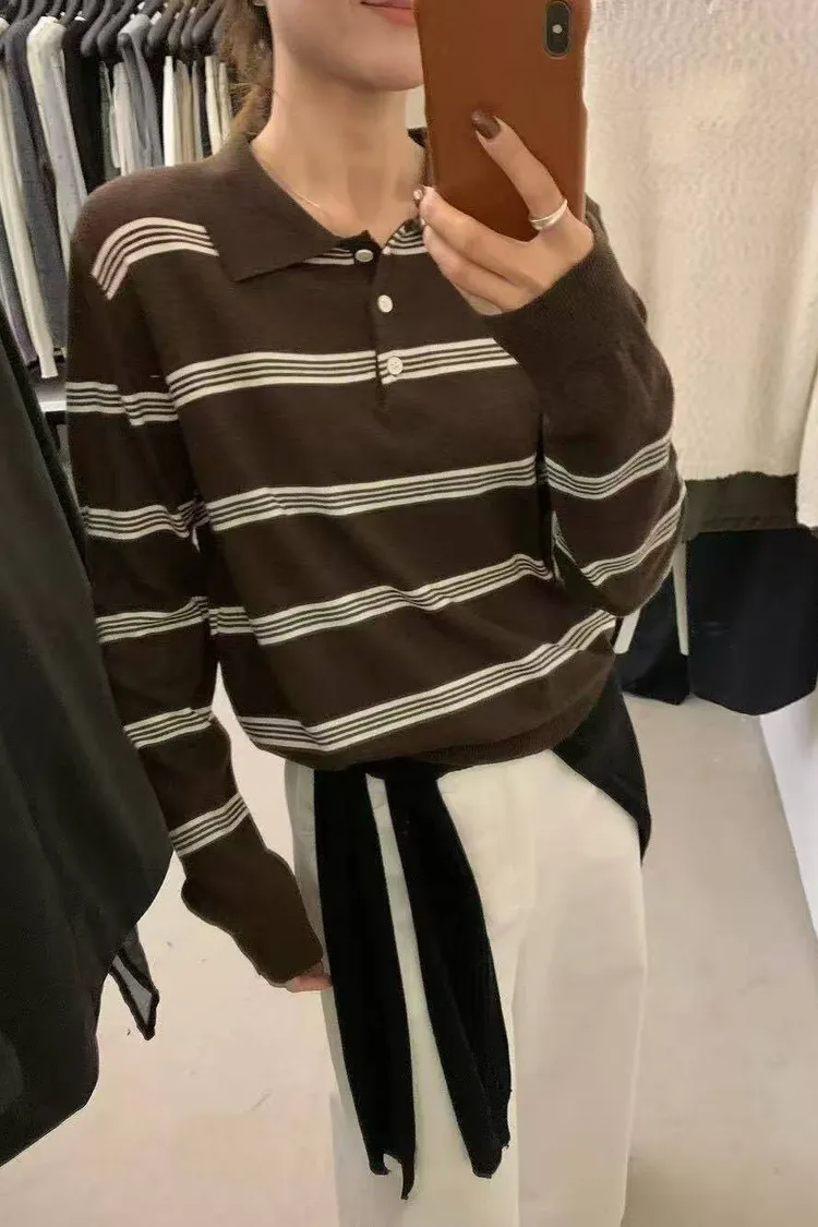 橫條針織POLO T