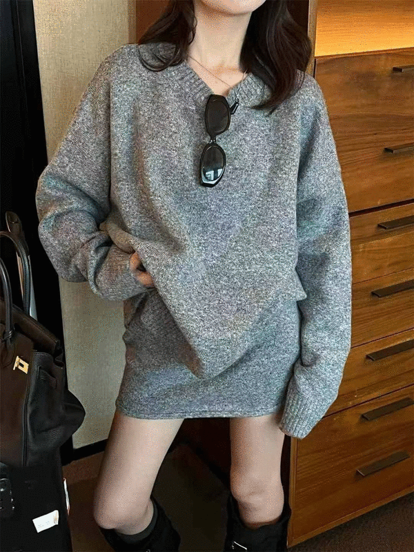 溫柔針織SET|素面毛衣+安全褲內裙