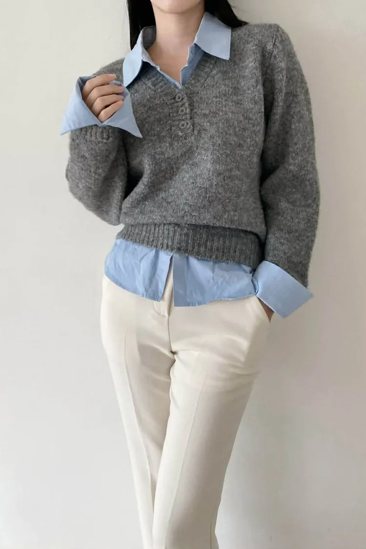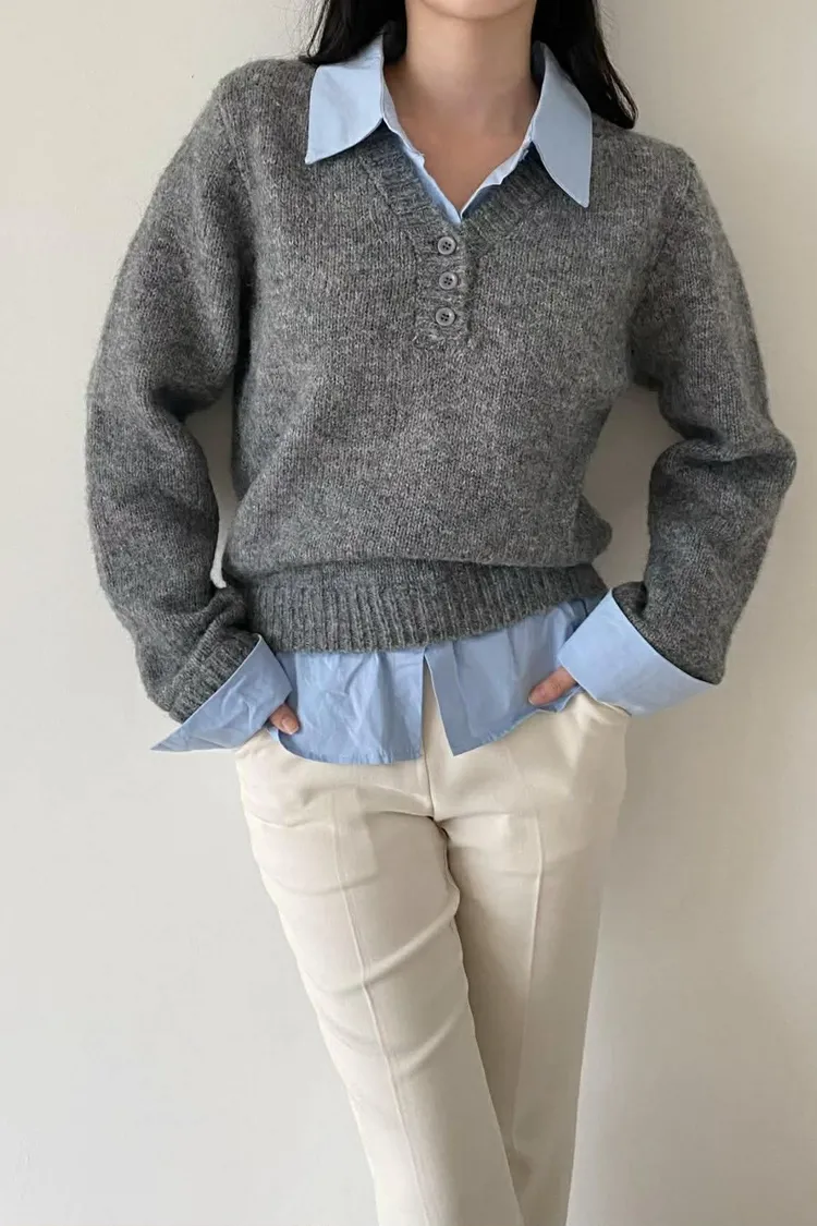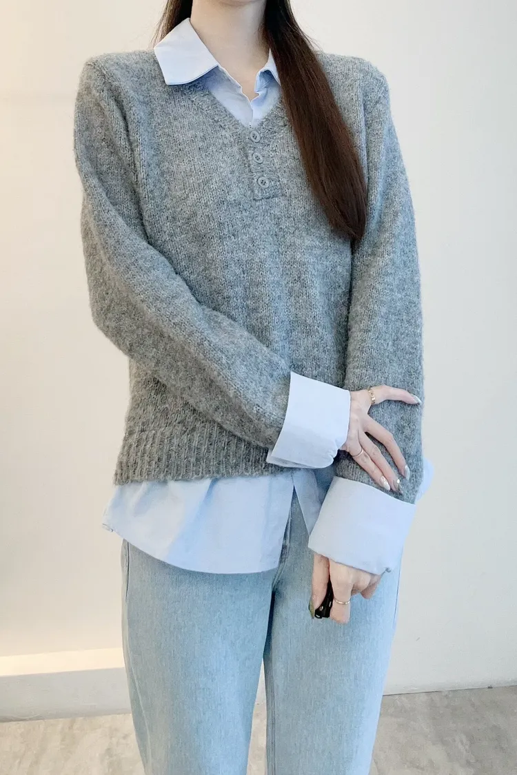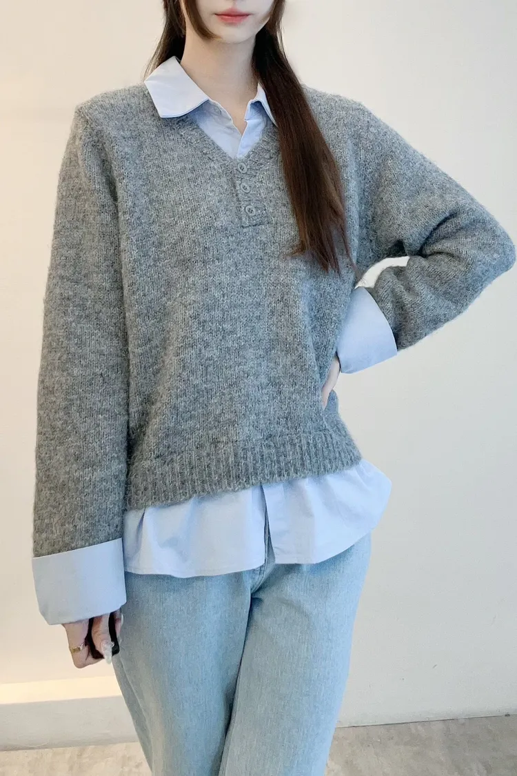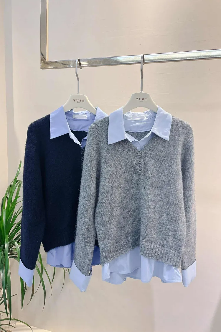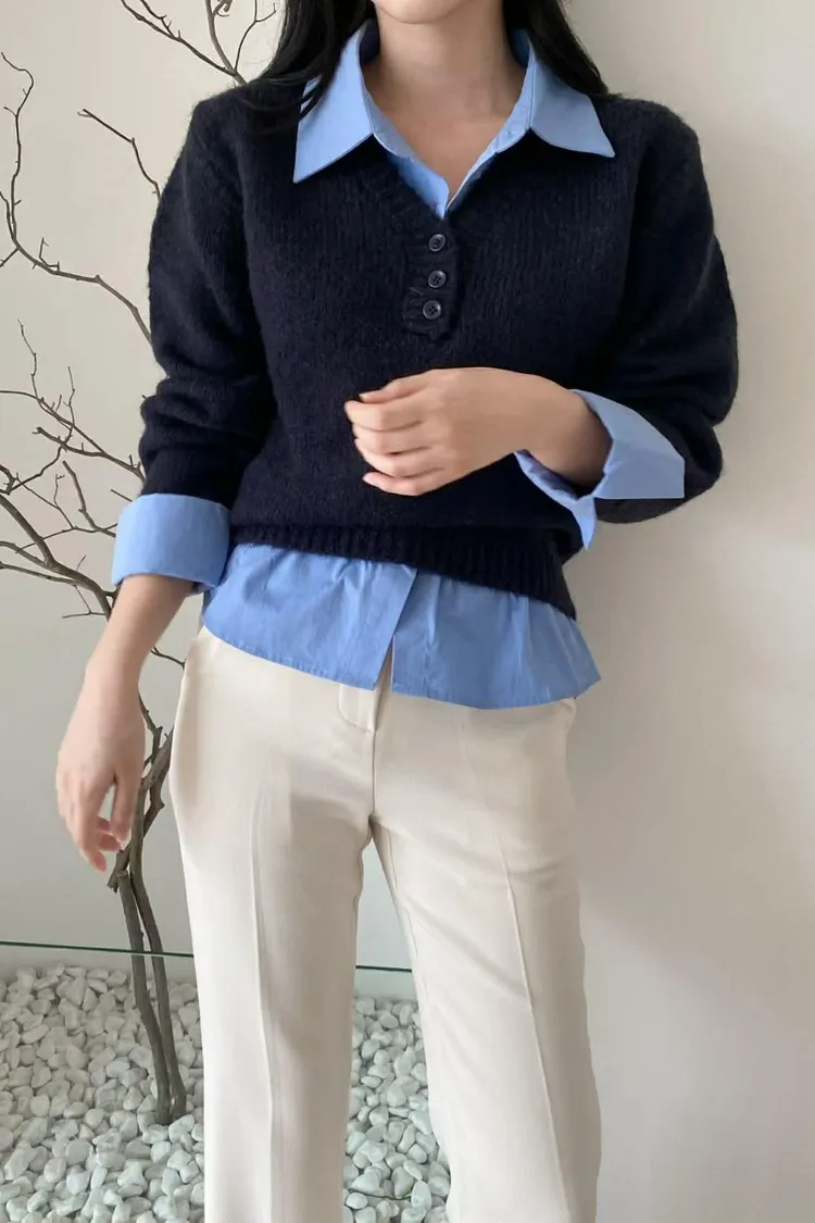 選用親膚柔軟的針織面料細緻觸感,貼身穿著也舒適自在假兩件設計層次分明,整體不厚重輕鬆呈現疊穿效果,造型感自然到位學院風輪廓搭配,展現清新知性氣質單穿即有重點,亦適合日常通勤與休閒穿搭輕鬆完成俐落又耐看的日常造型材質:聚脂纖維/針織顏色:灰/藍