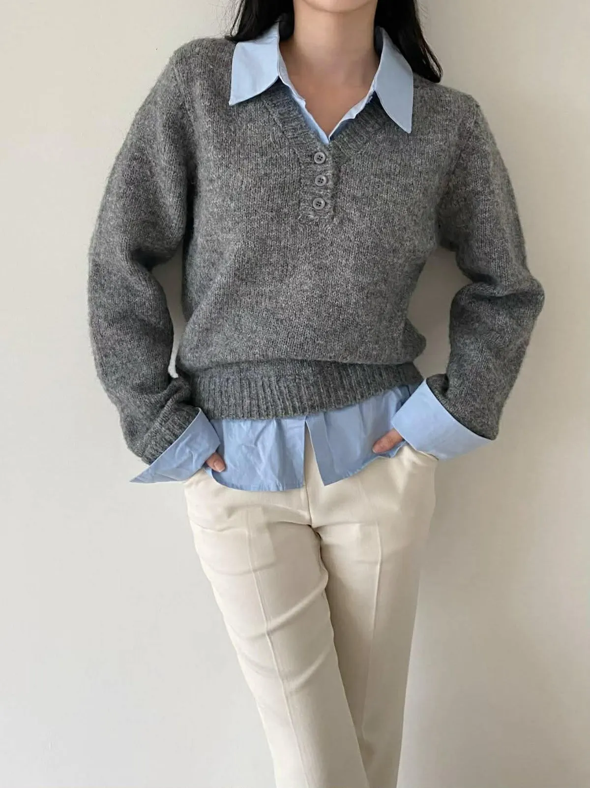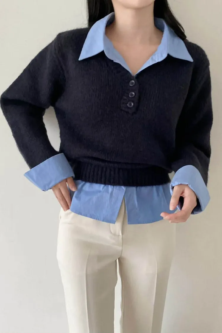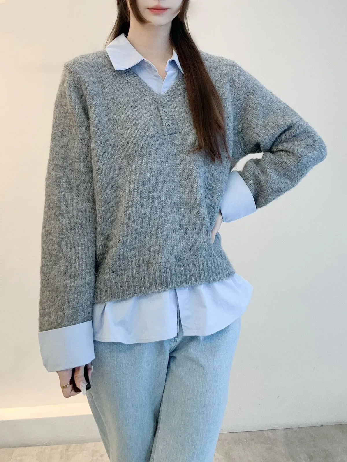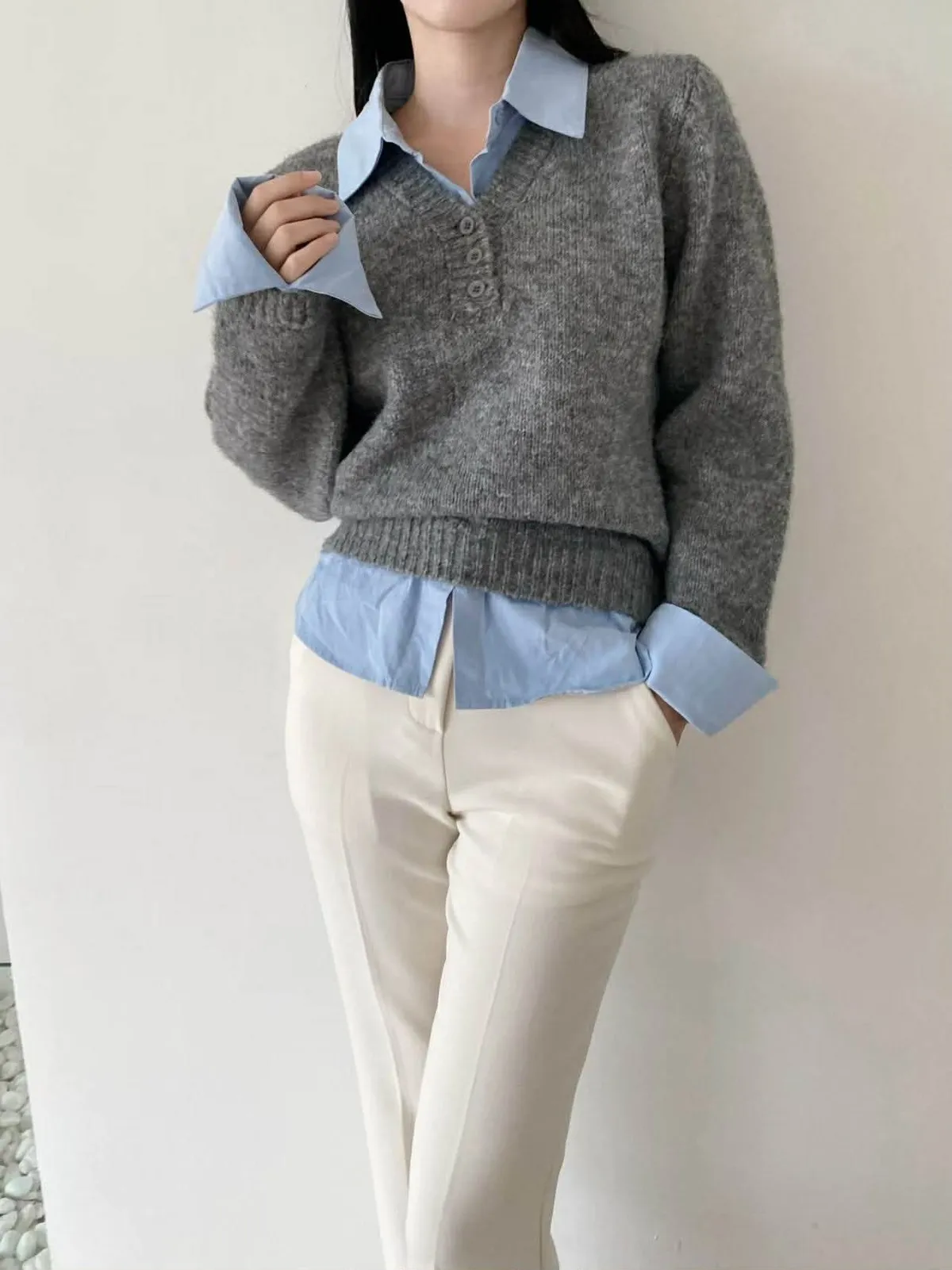 選用親膚柔軟的針織面料細緻觸感,貼身穿著也舒適自在假兩件設計層次分明,整體不厚重輕鬆呈現疊穿效果,造型感自然到位學院風輪廓搭配,展現清新知性氣質單穿即有重點,亦適合日常通勤與休閒穿搭輕鬆完成俐落又耐看的日常造型材質:聚脂纖維/針織顏色:灰/藍