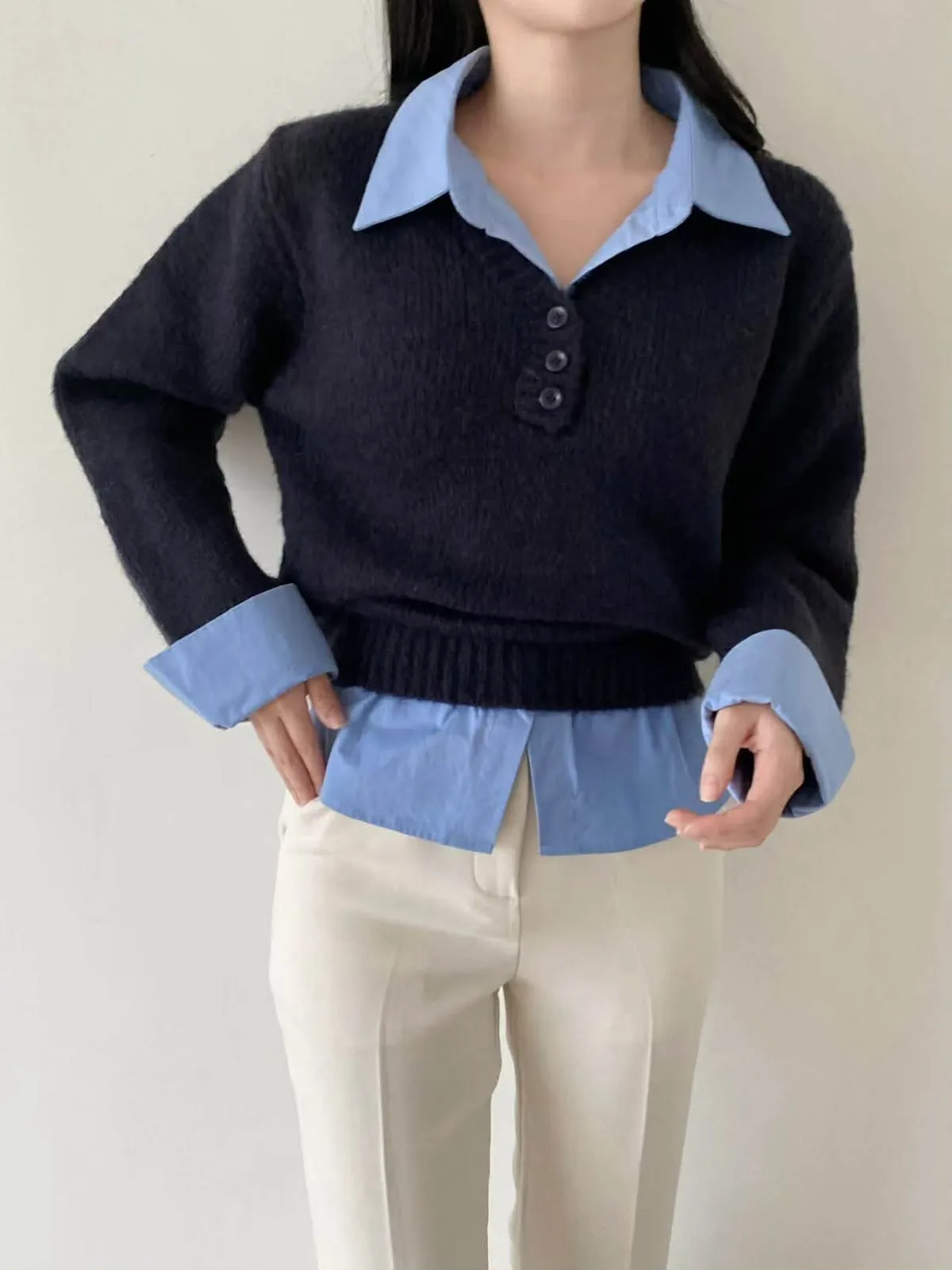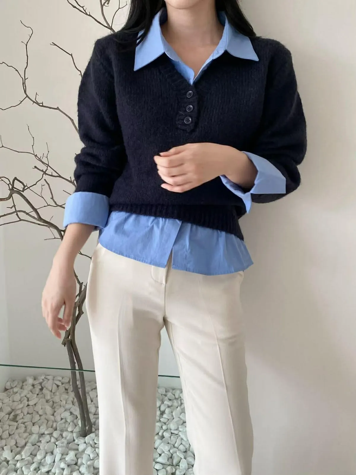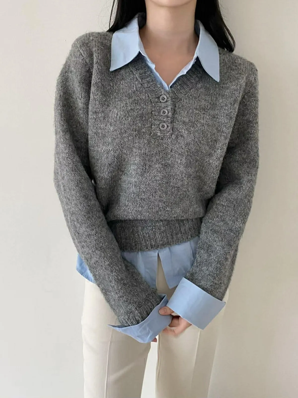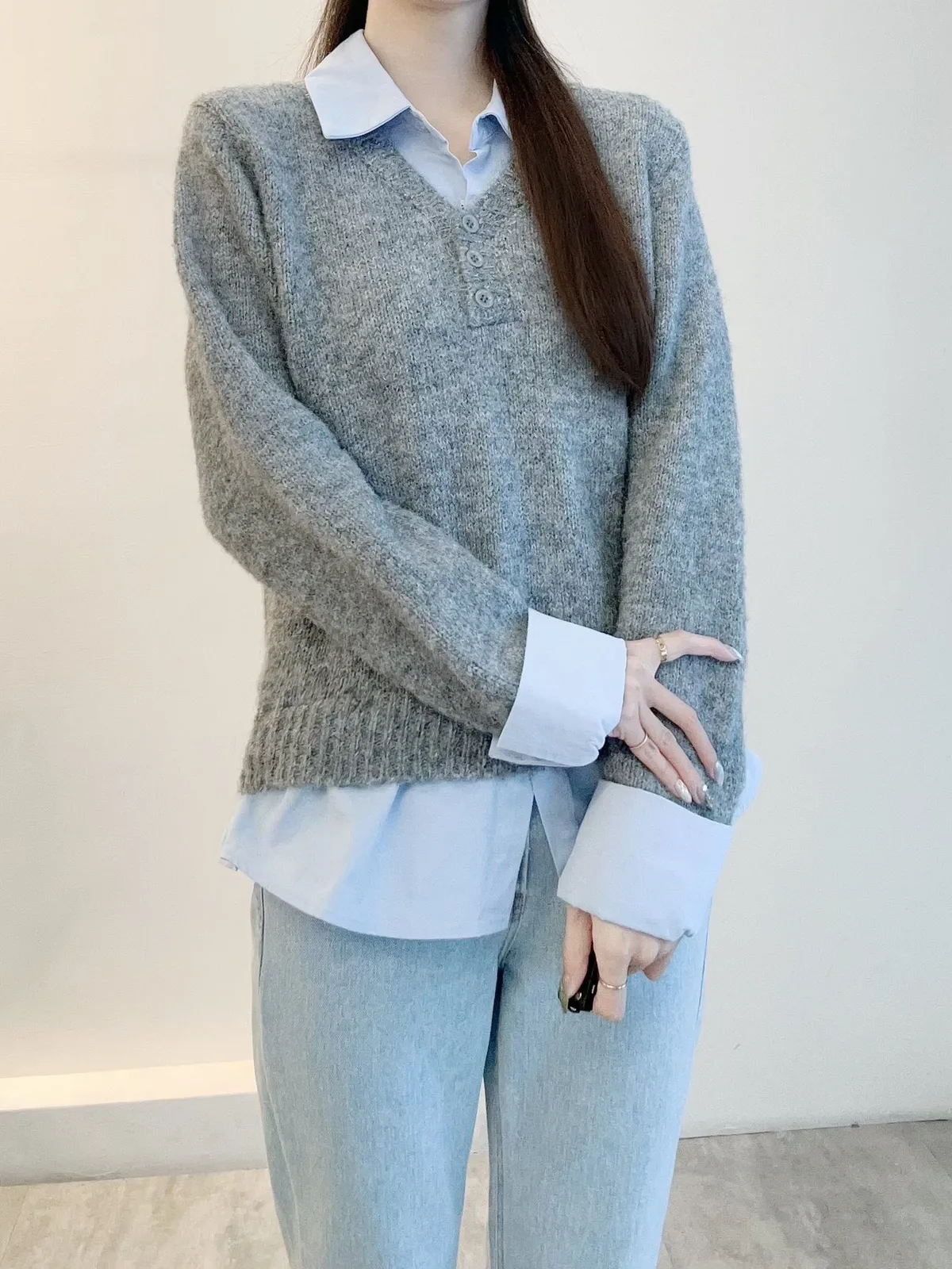 選用親膚柔軟的針織面料細緻觸感,貼身穿著也舒適自在假兩件設計層次分明,整體不厚重輕鬆呈現疊穿效果,造型感自然到位學院風輪廓搭配,展現清新知性氣質單穿即有重點,亦適合日常通勤與休閒穿搭輕鬆完成俐落又耐看的日常造型材質:聚脂纖維/針織顏色:灰/藍
