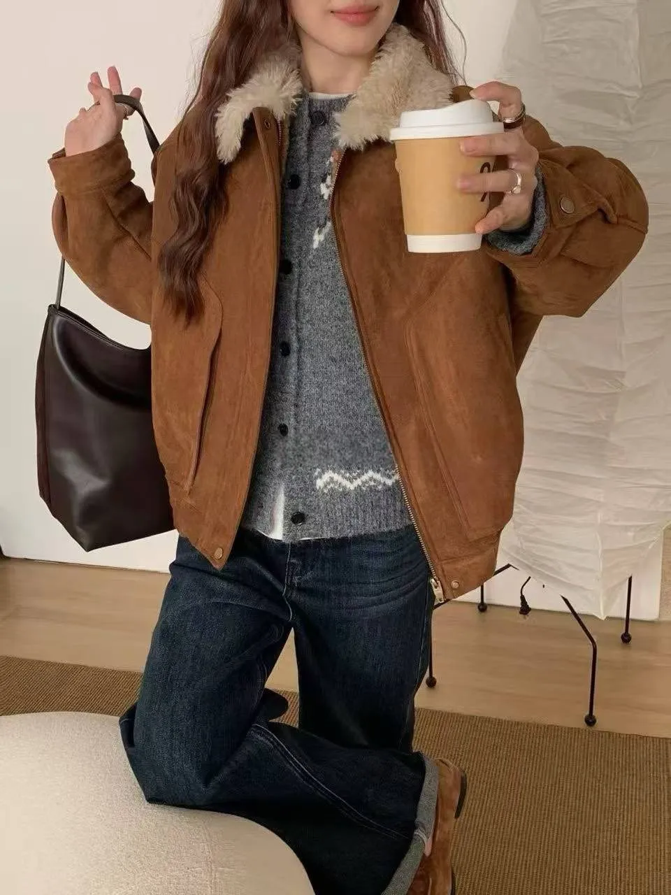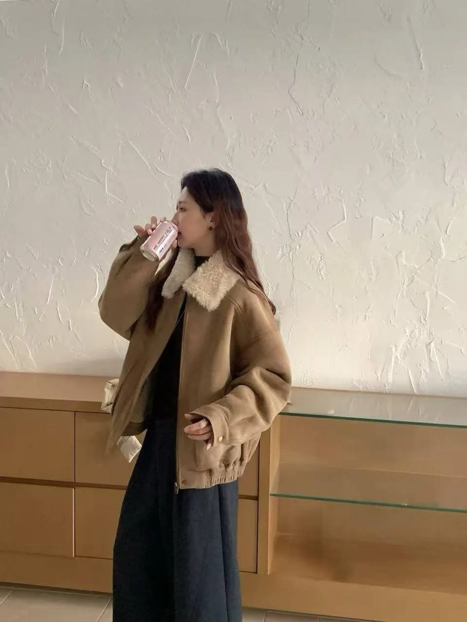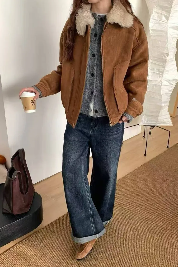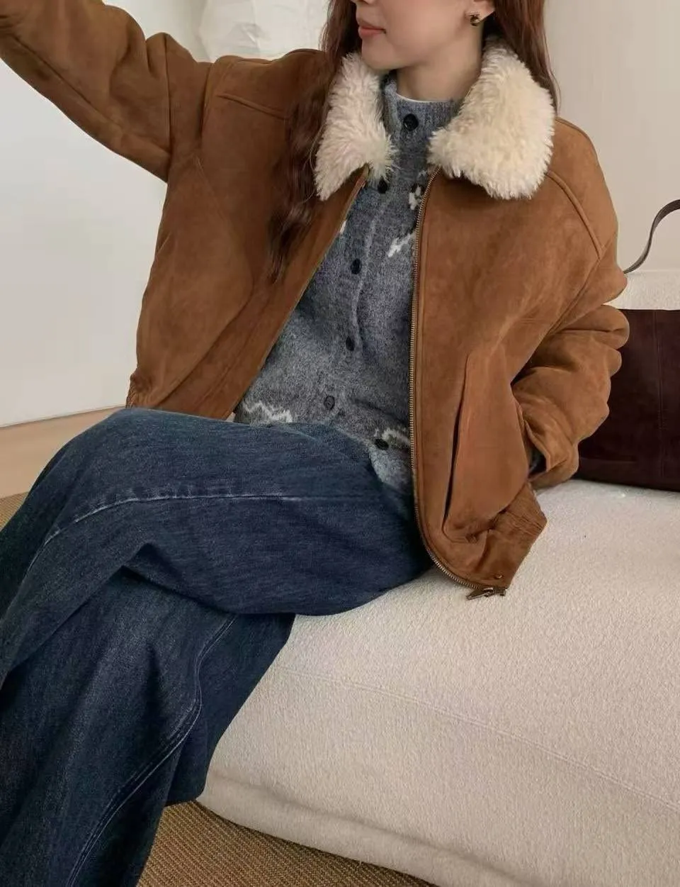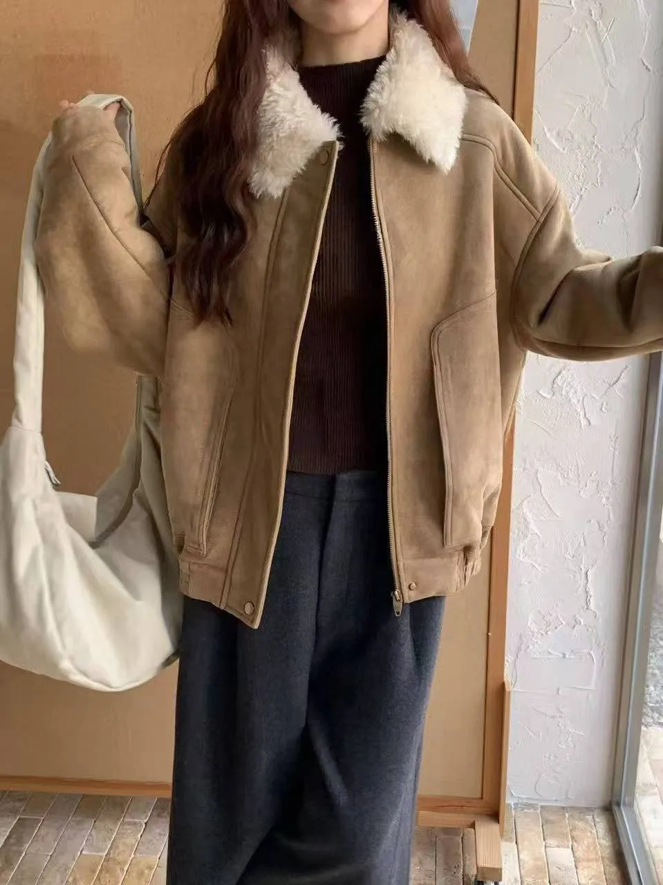 上身超保暖的麂皮外套