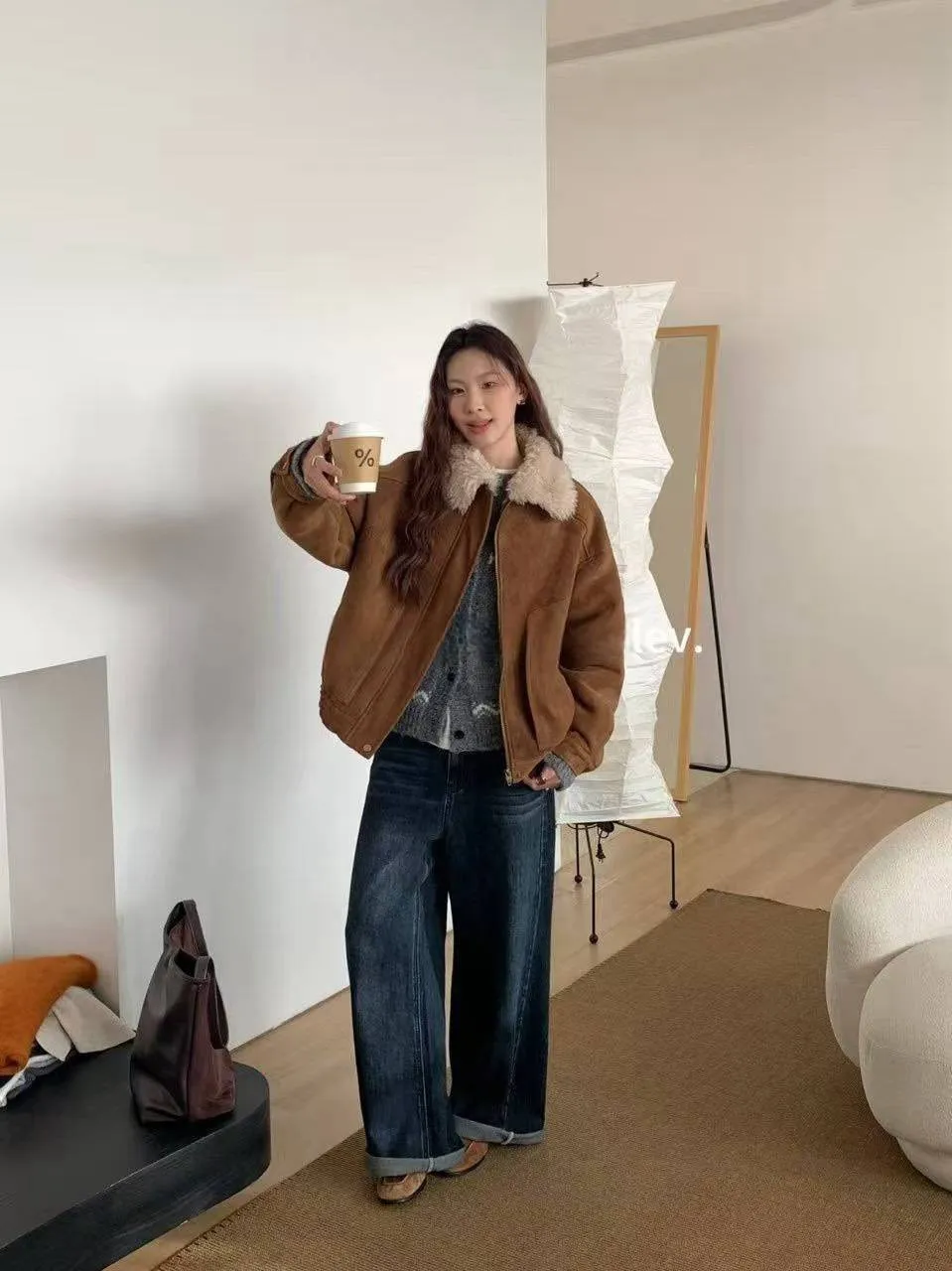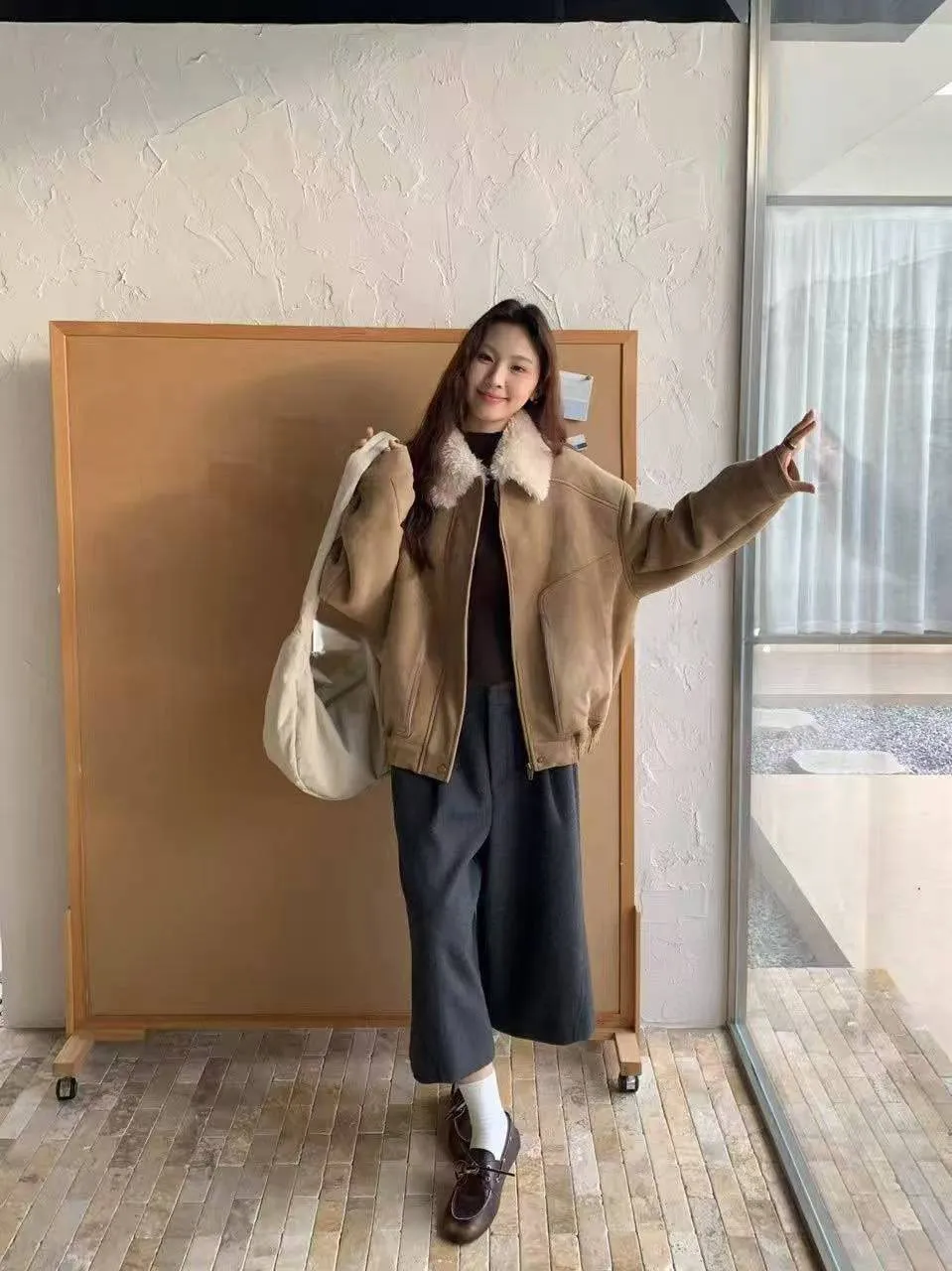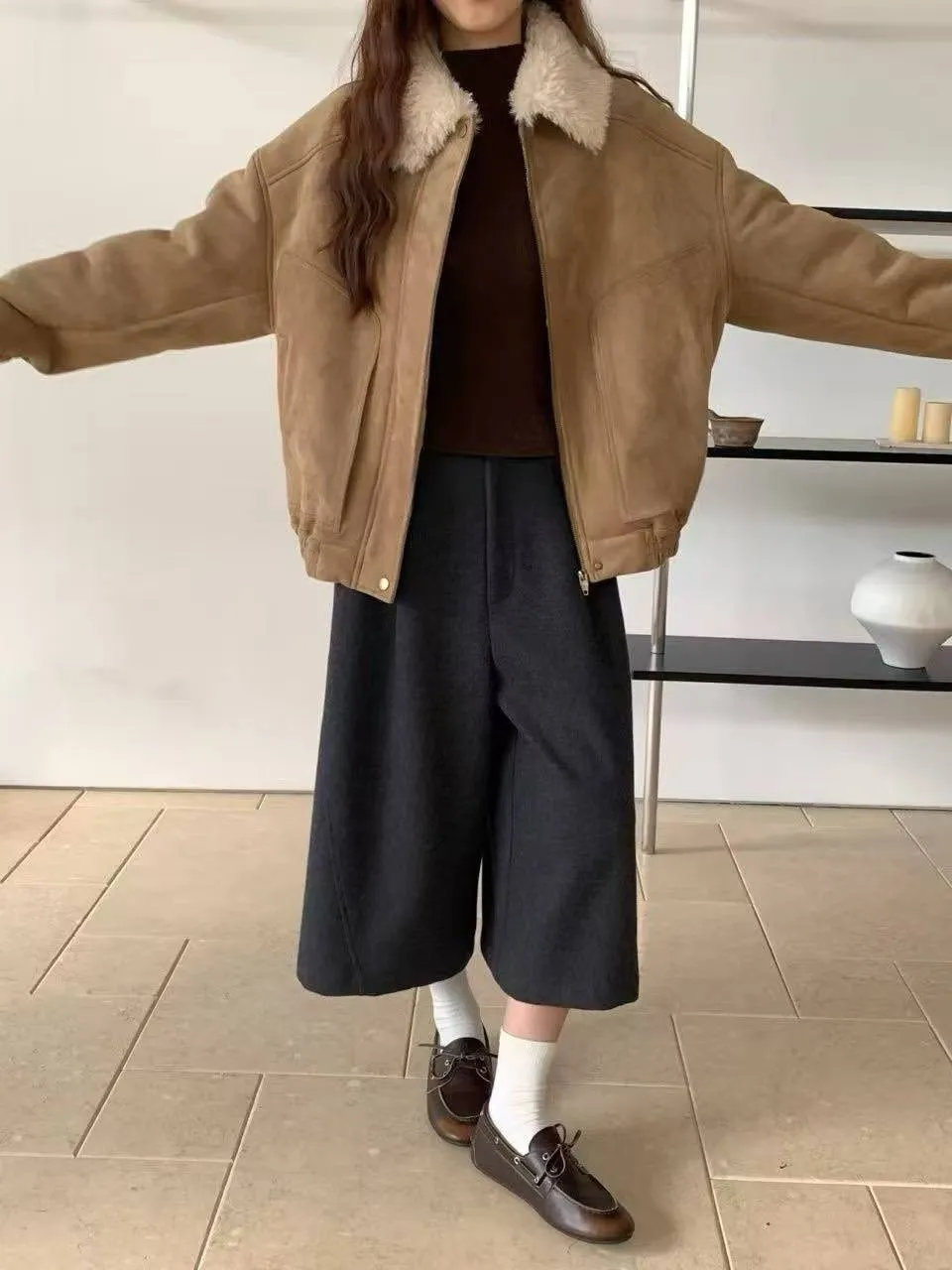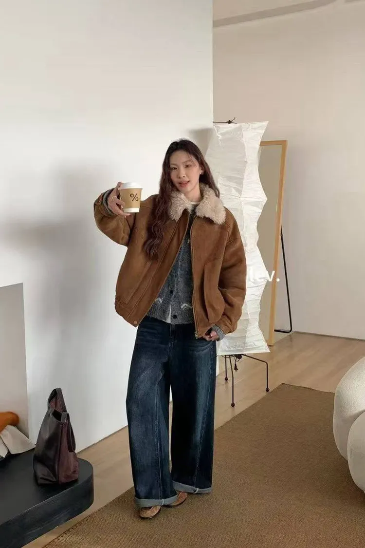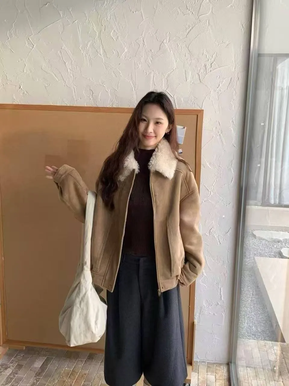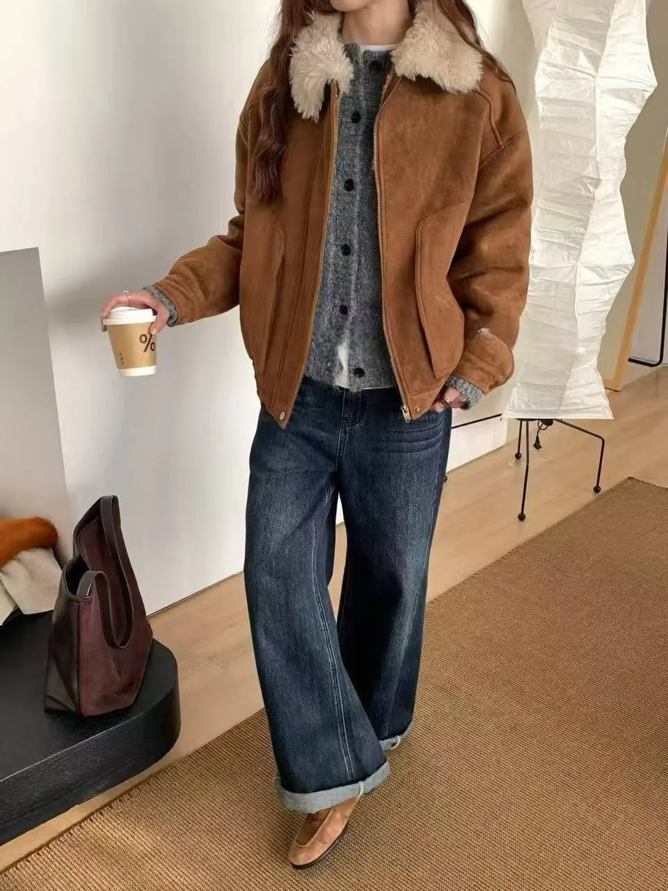 上身超保暖的麂皮外套