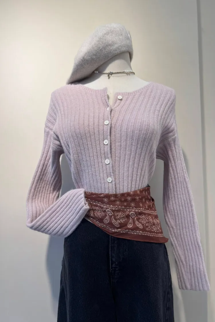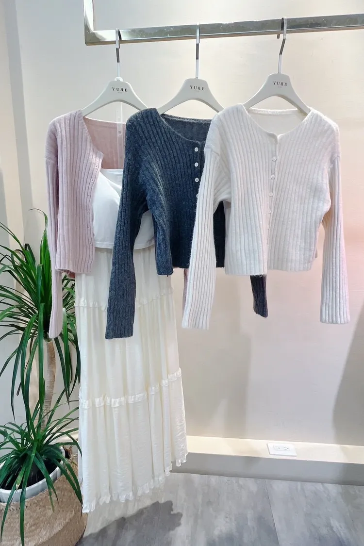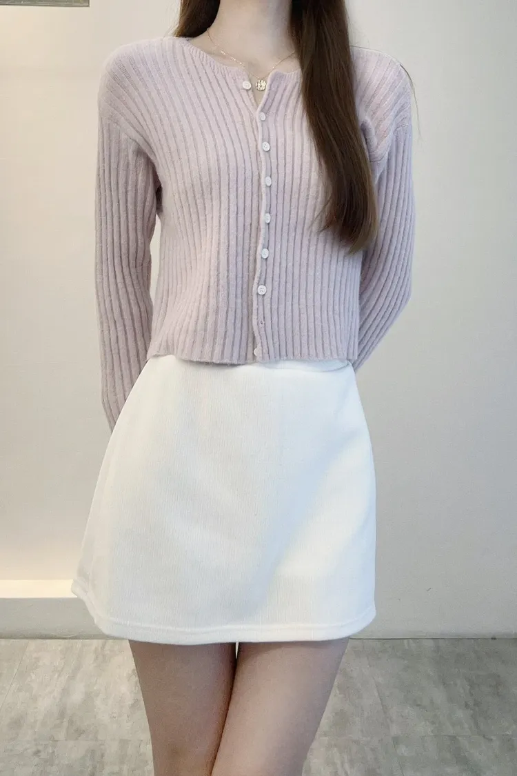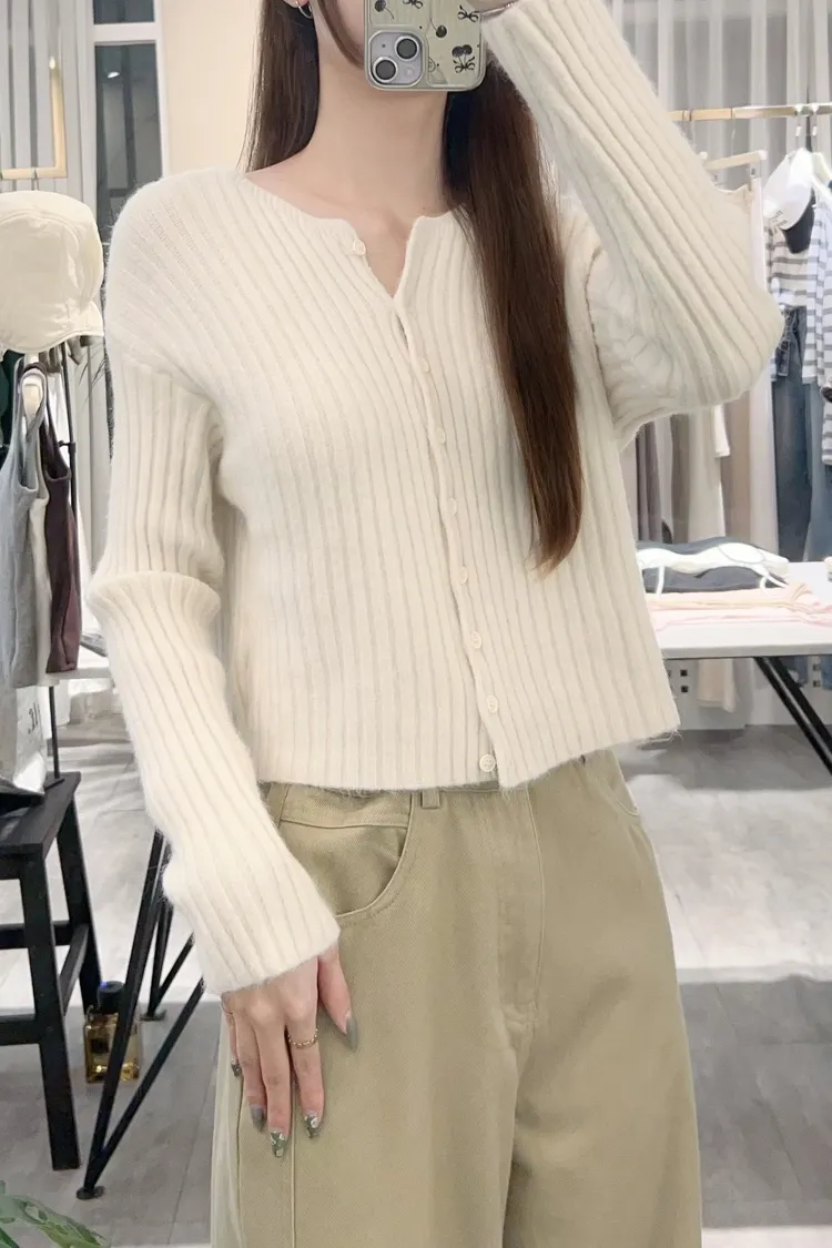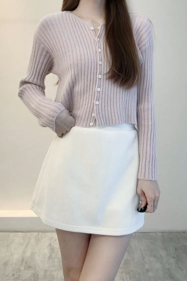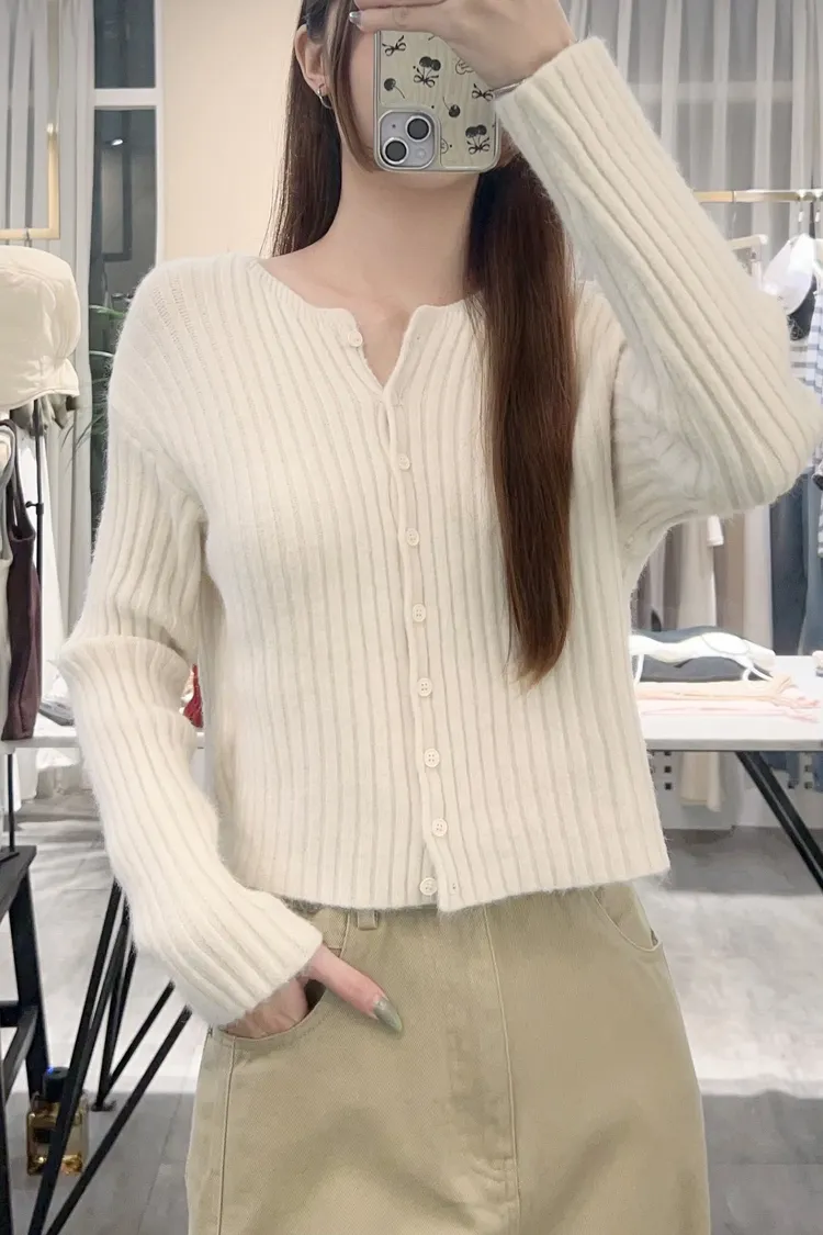 坑條排釦短版針織