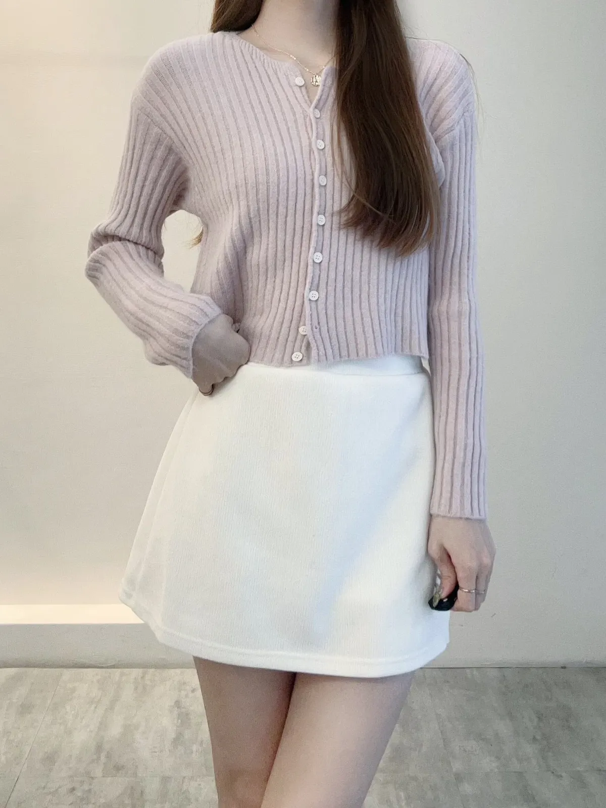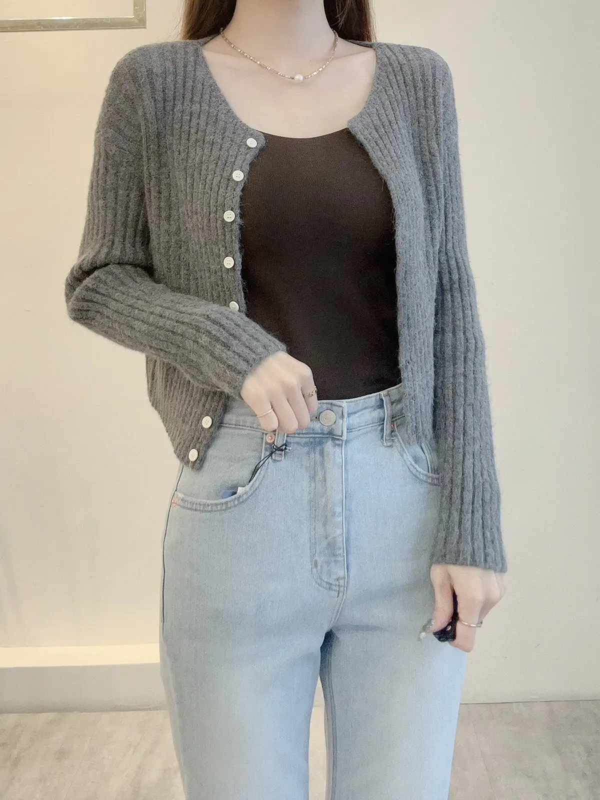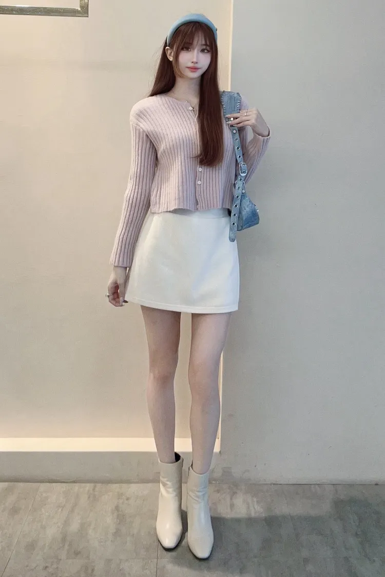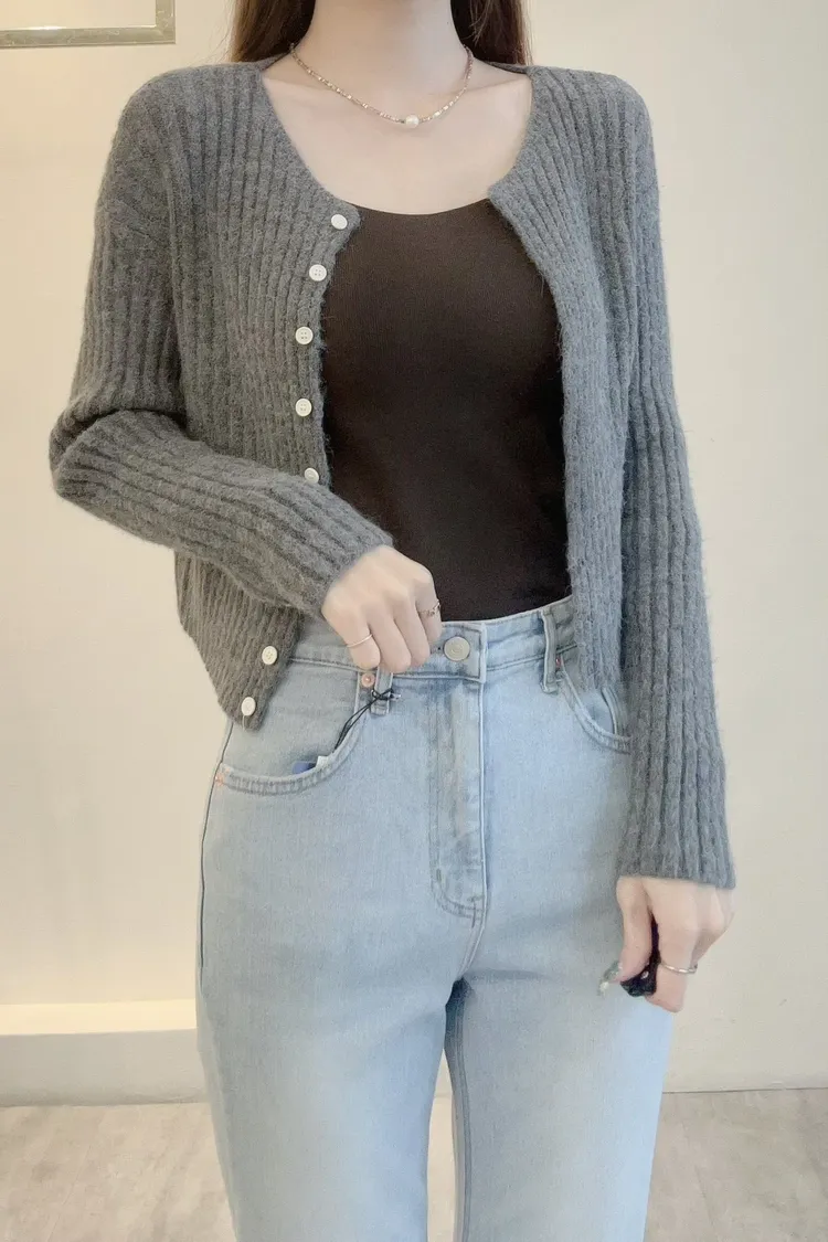坑條排釦短版針織