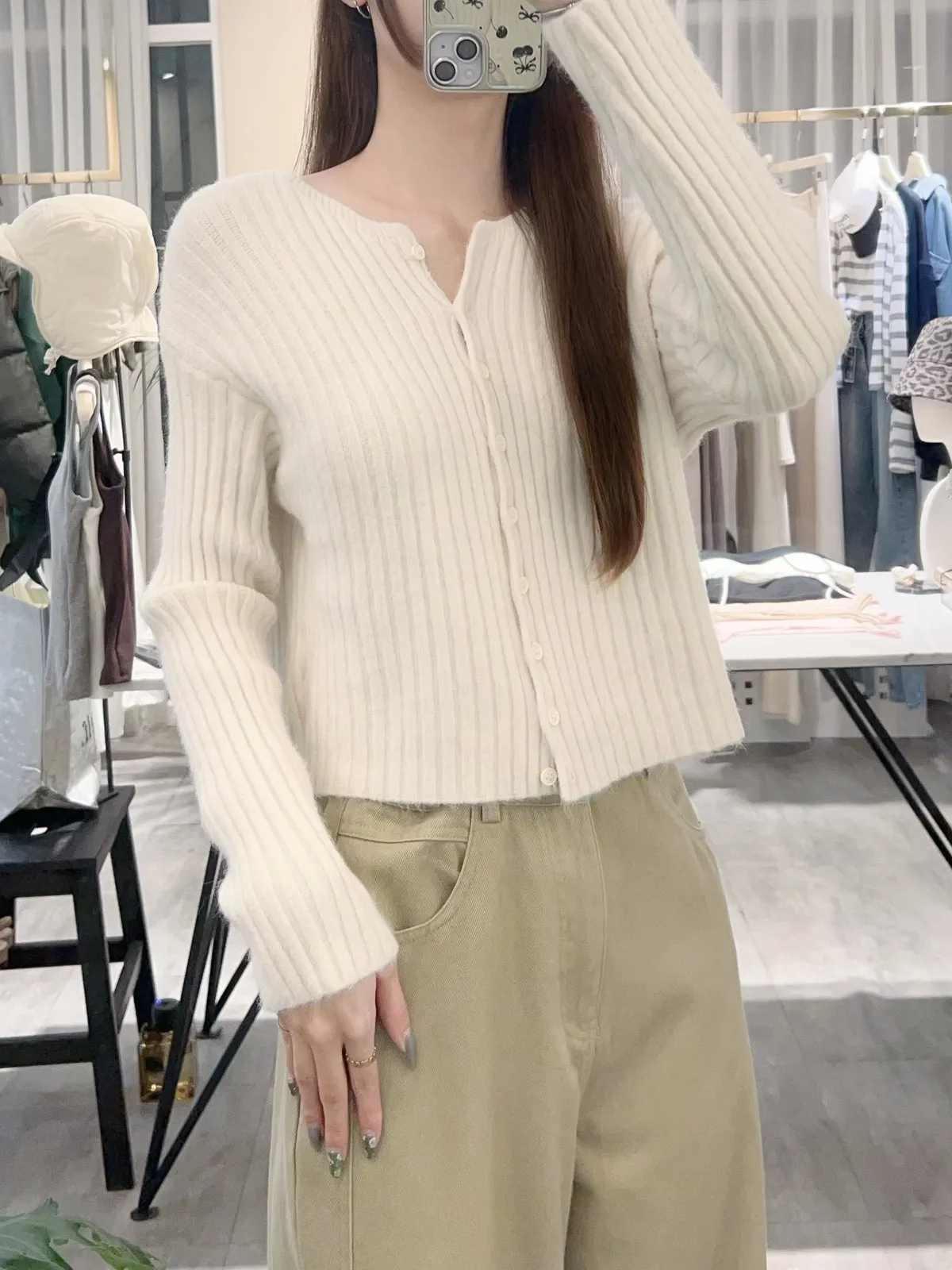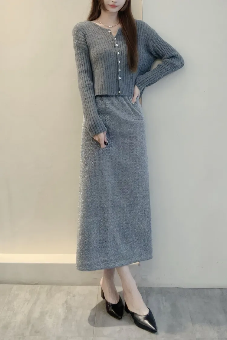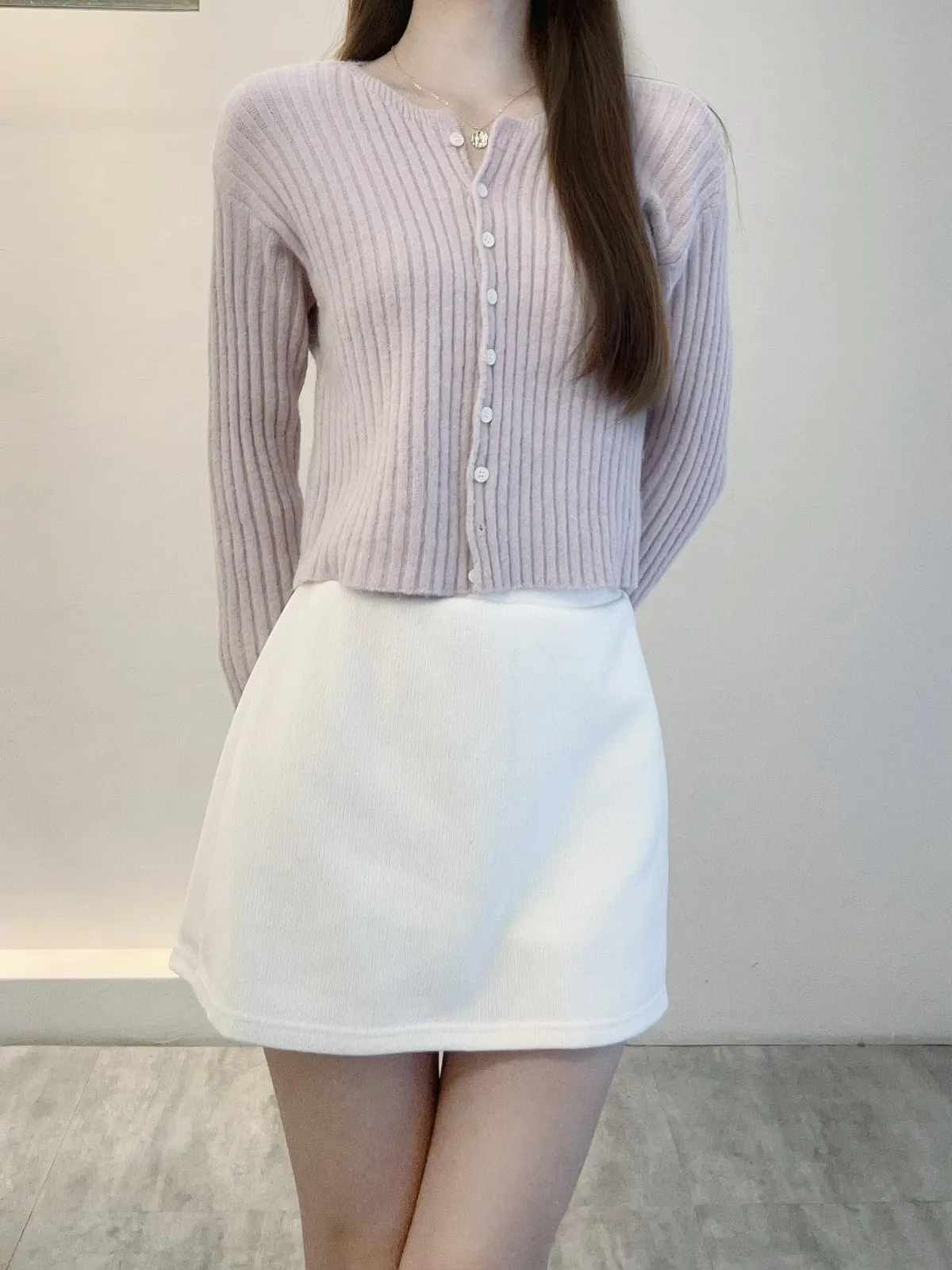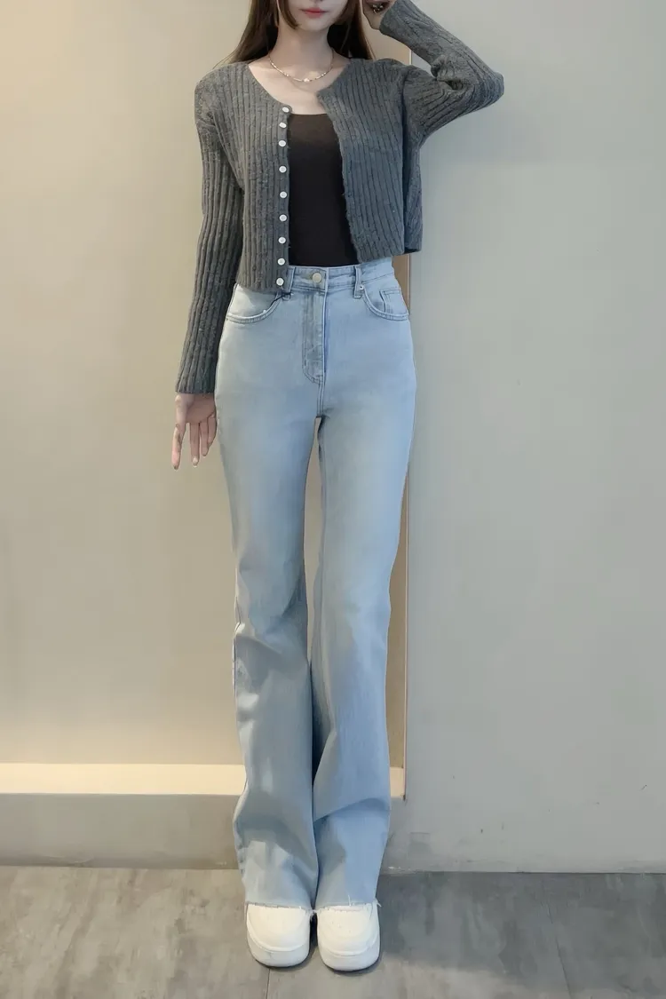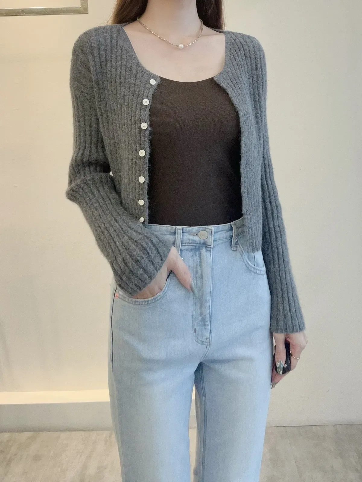 坑條排釦短版針織