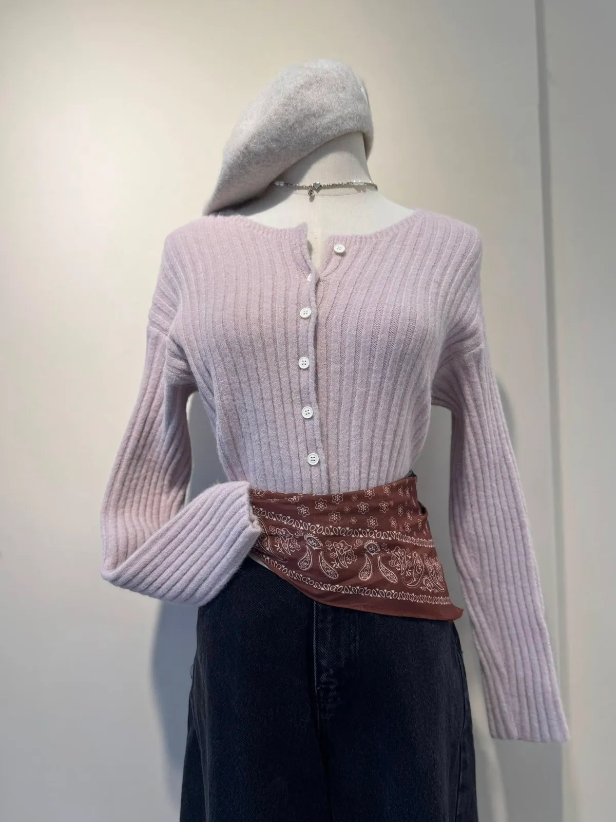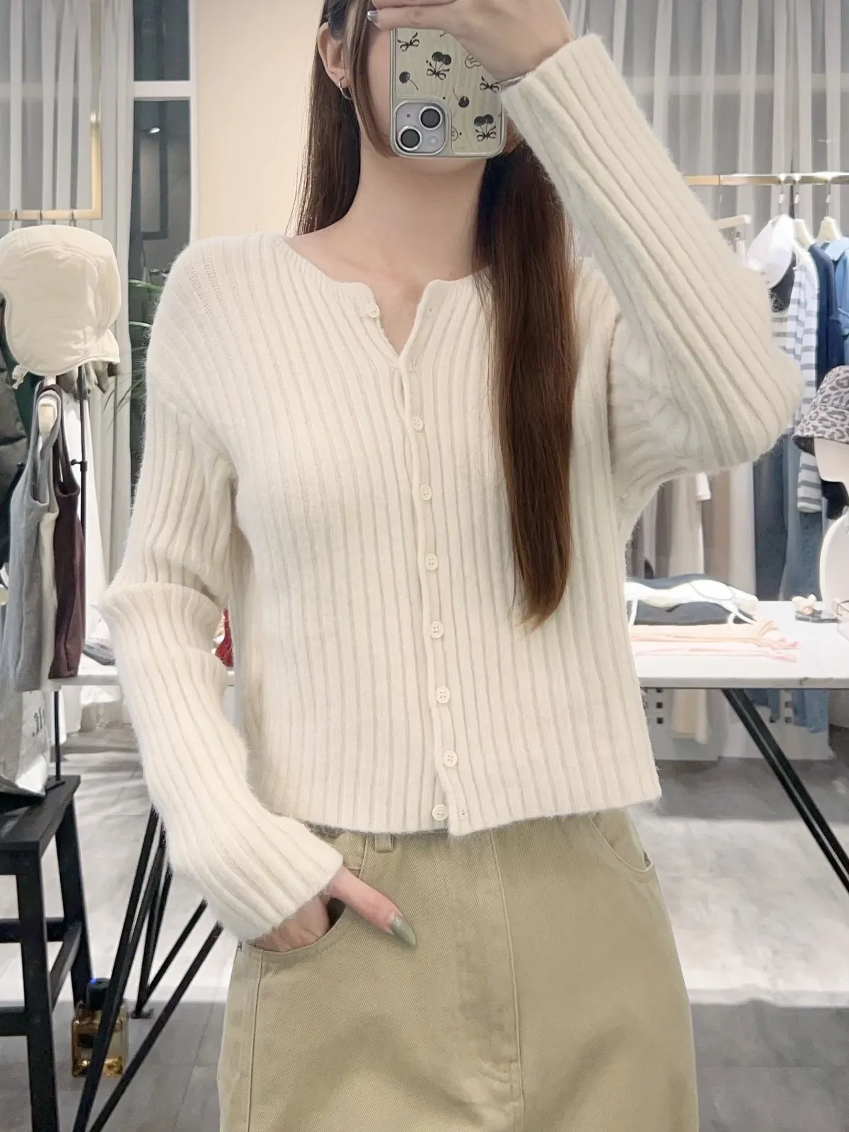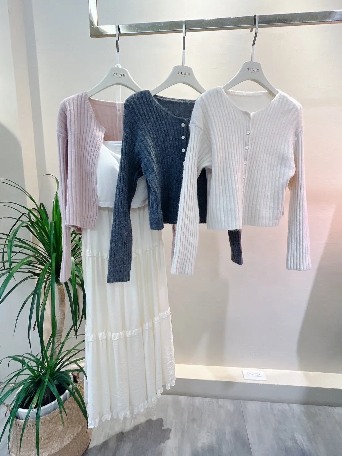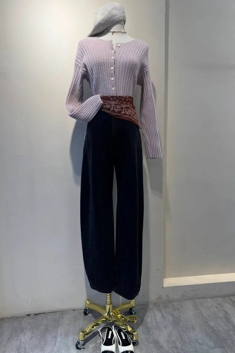坑條排釦短版針織