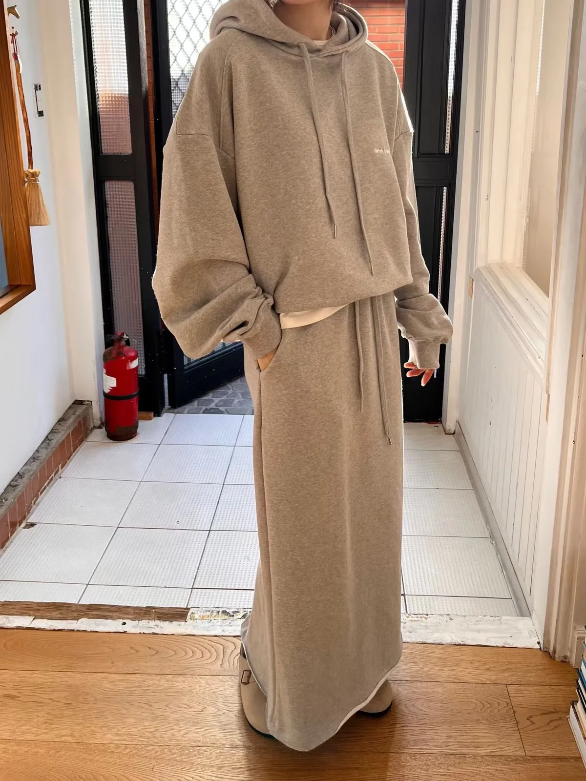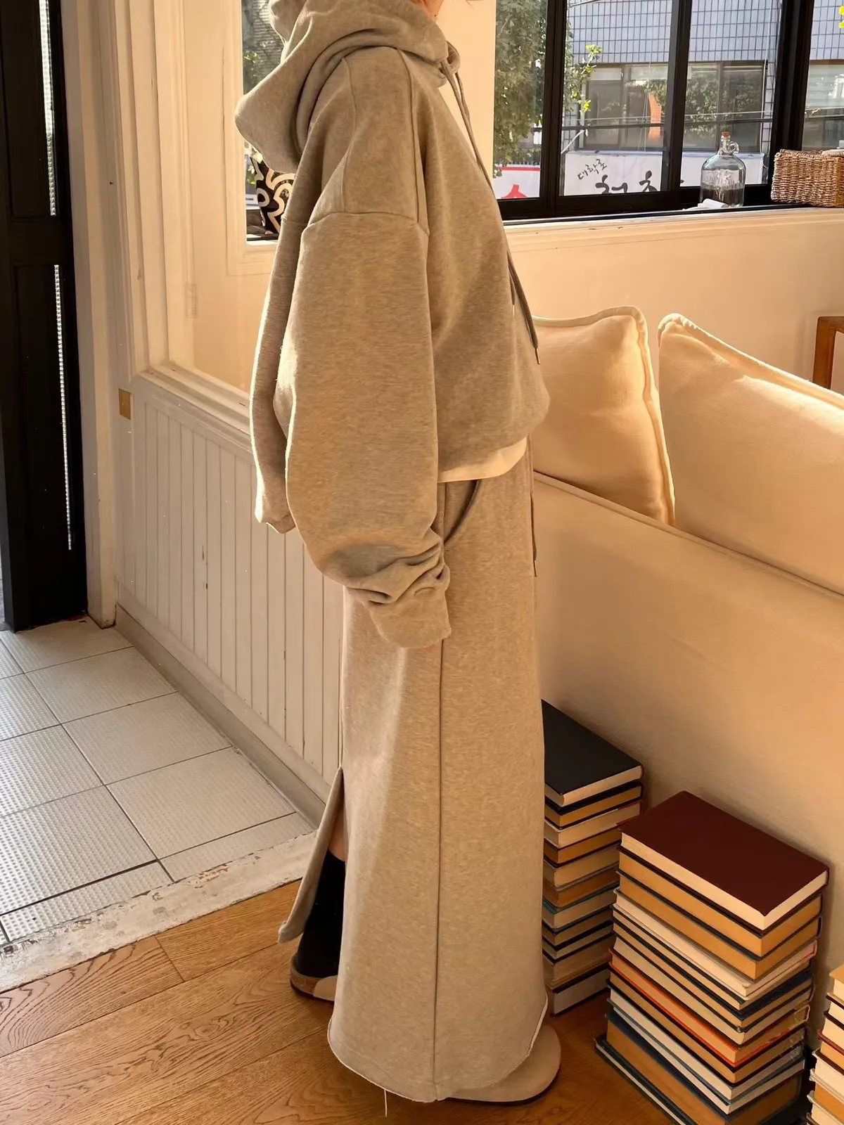 可搭配「刷毛後衩口袋棉裙」
