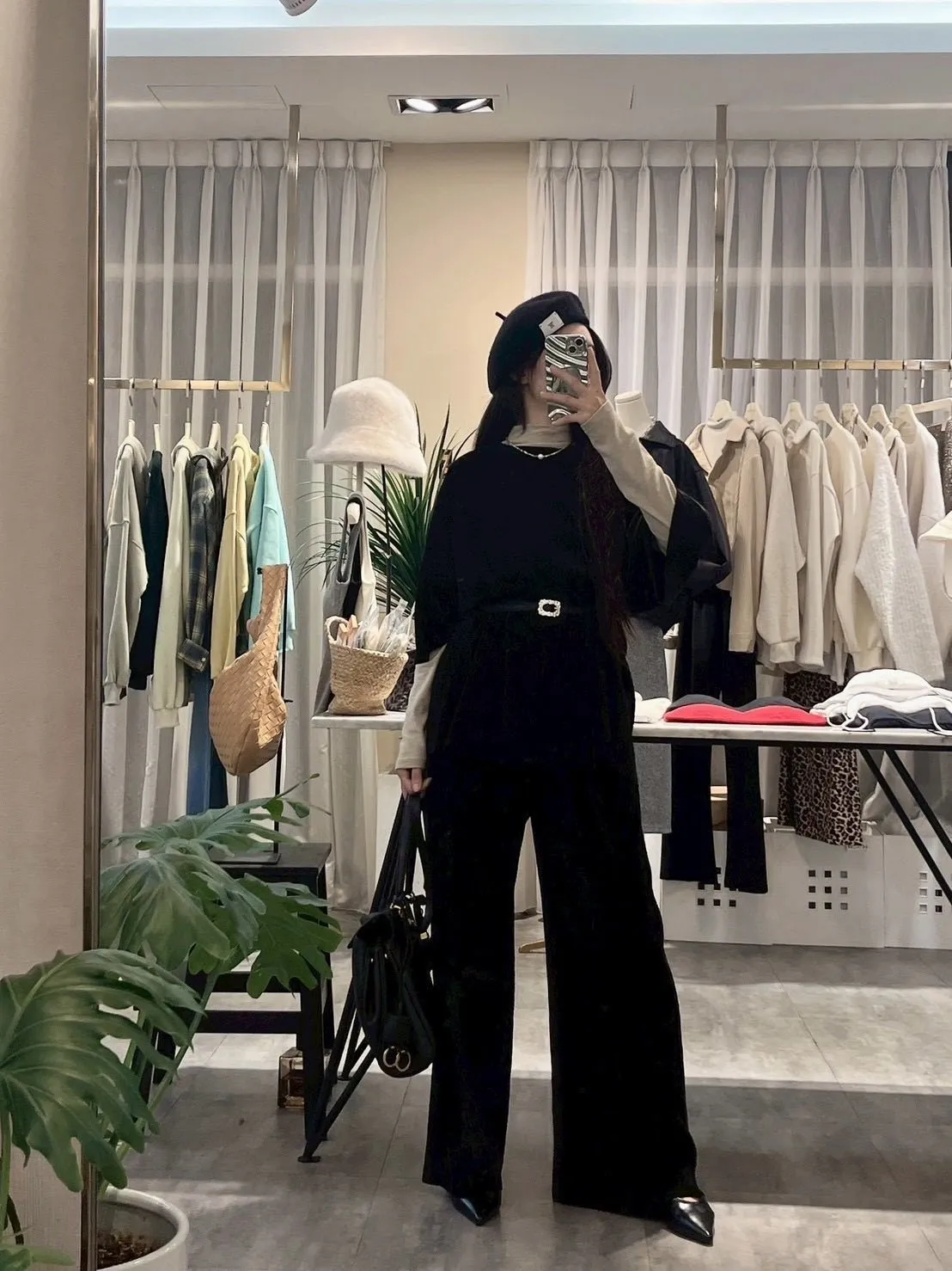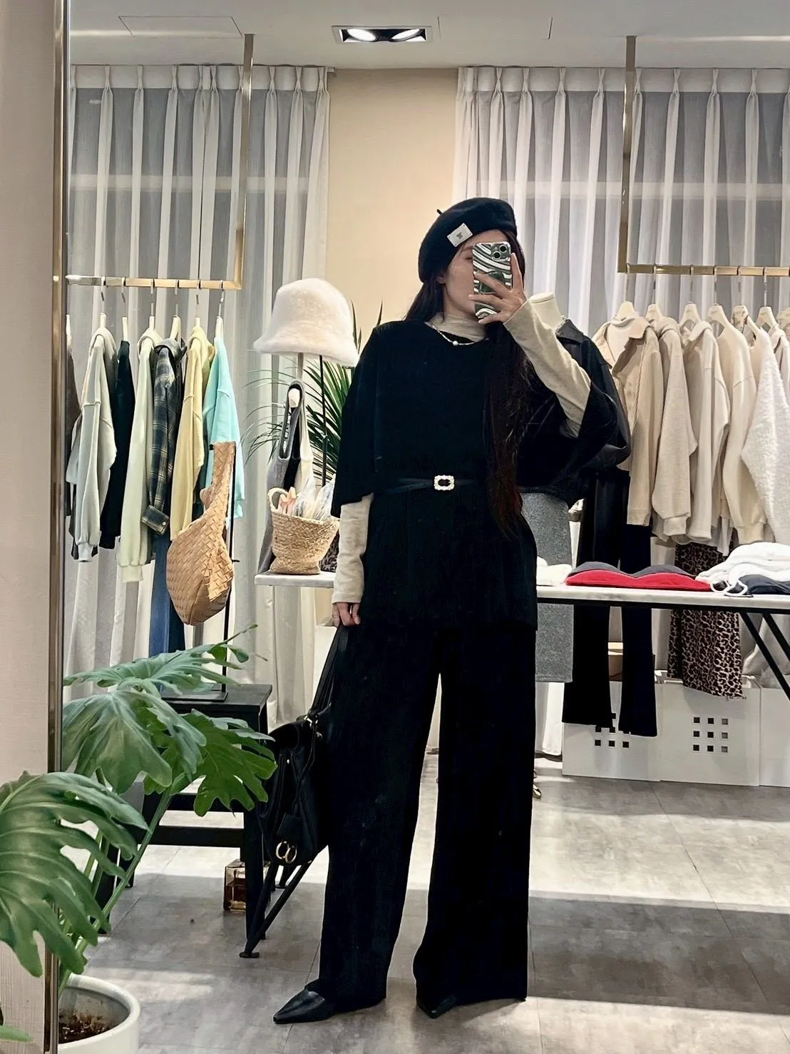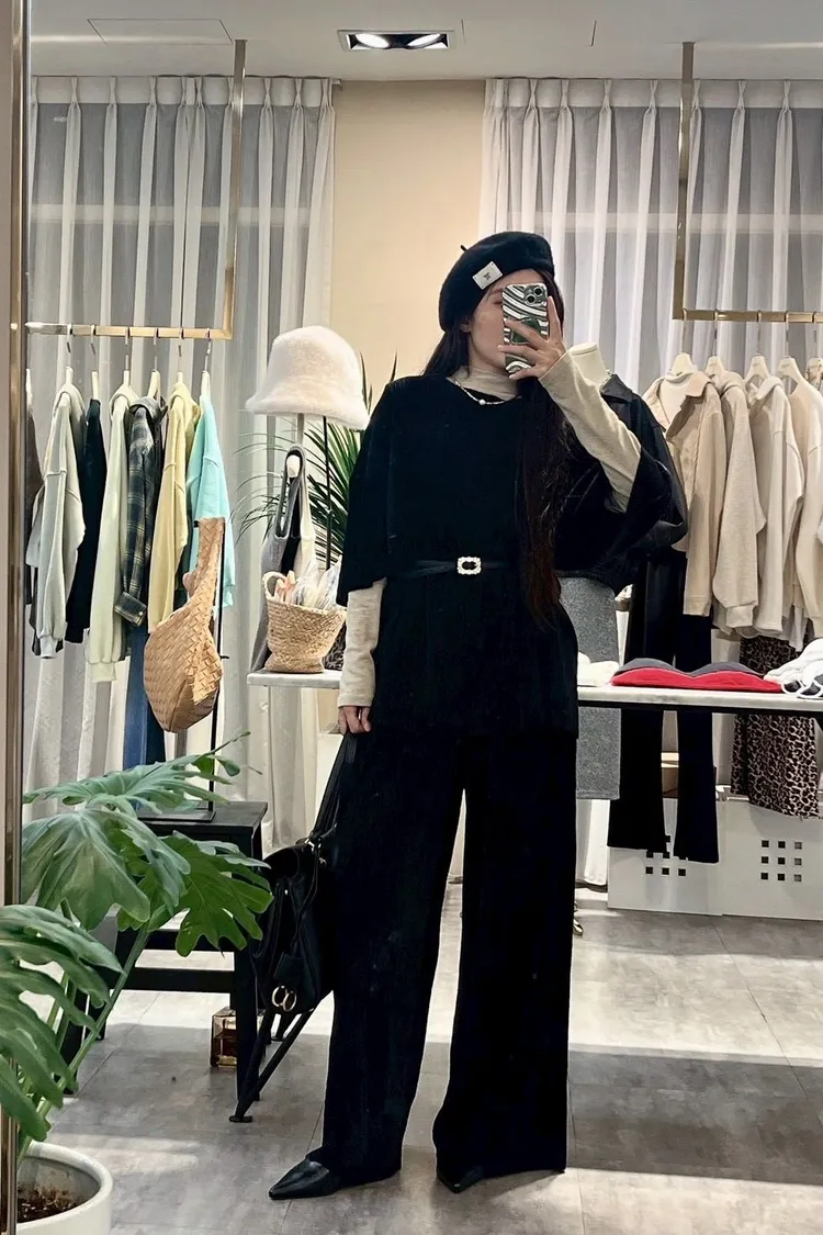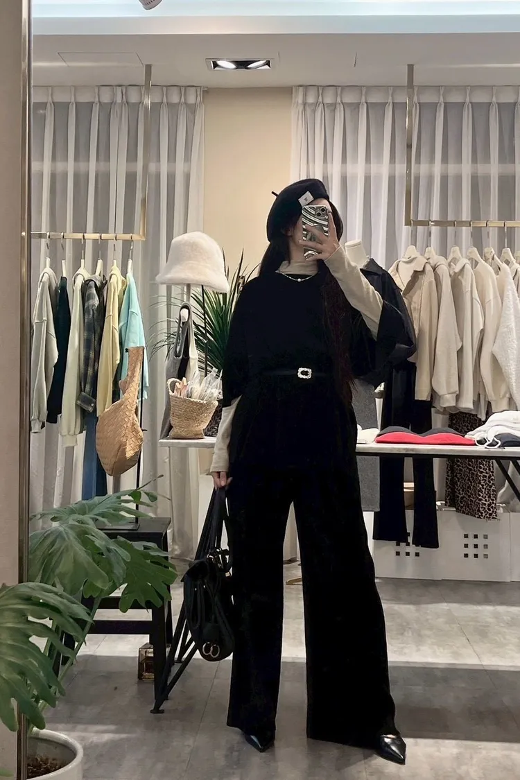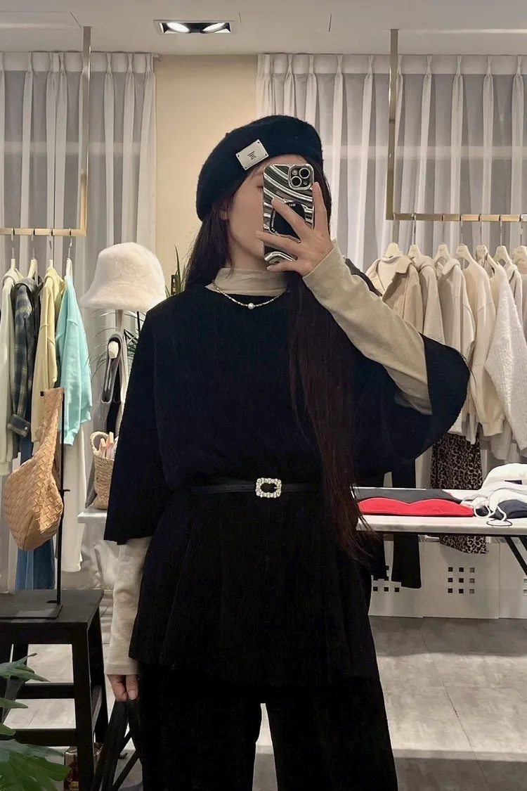 上衣寬鬆,布料有彈性,休閒薄款,不分季節四季可穿!