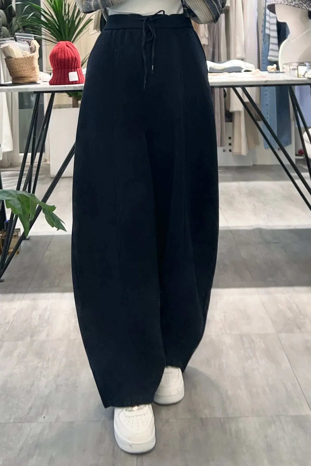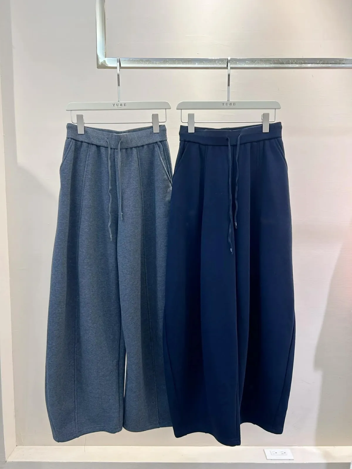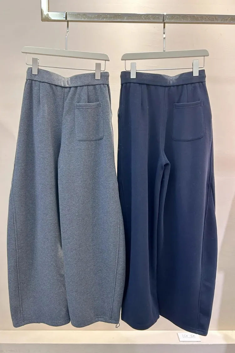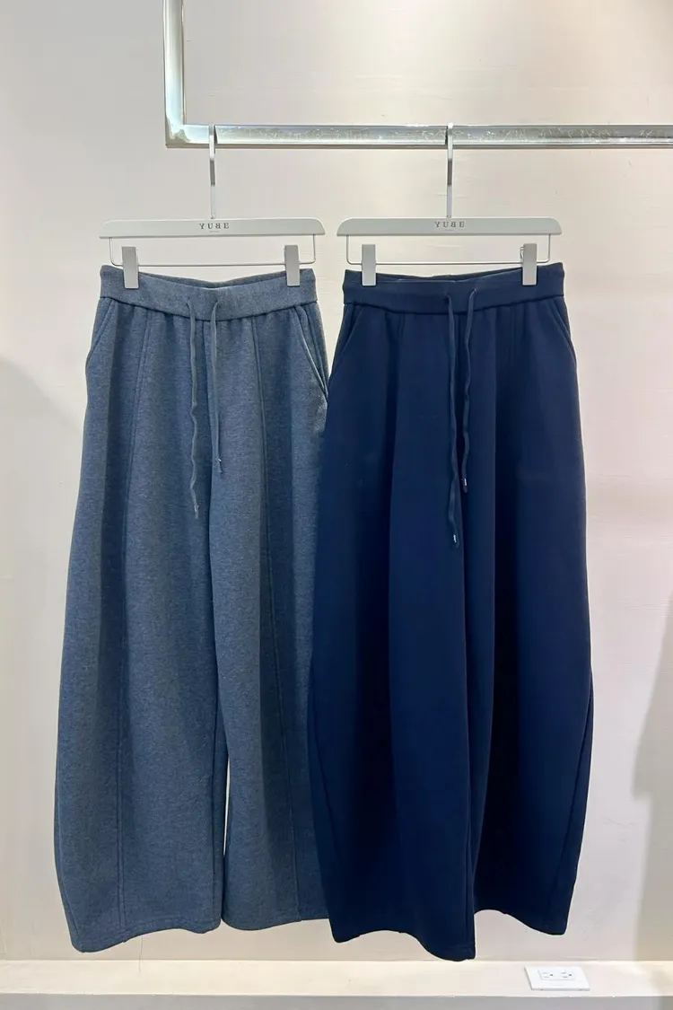 內刷毛下抽繩彎刀寬褲