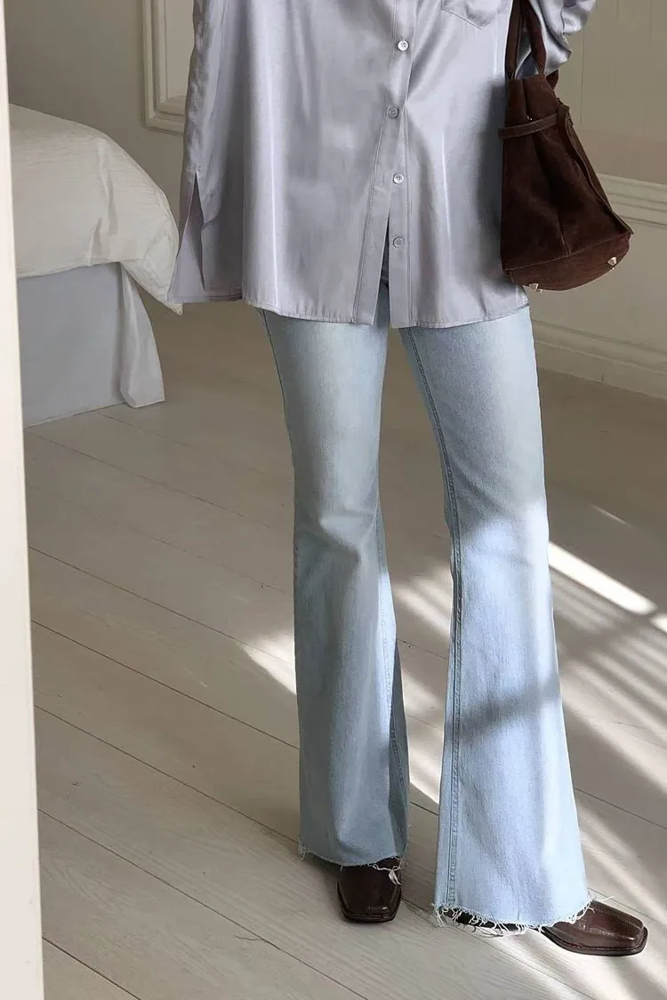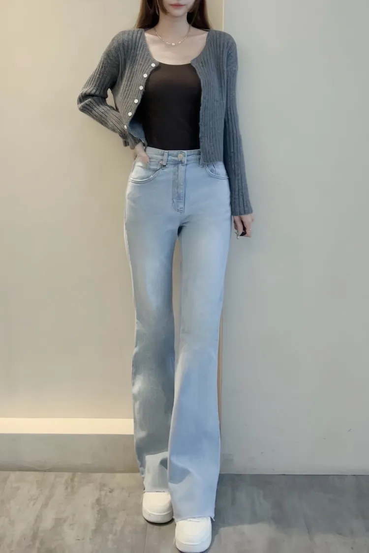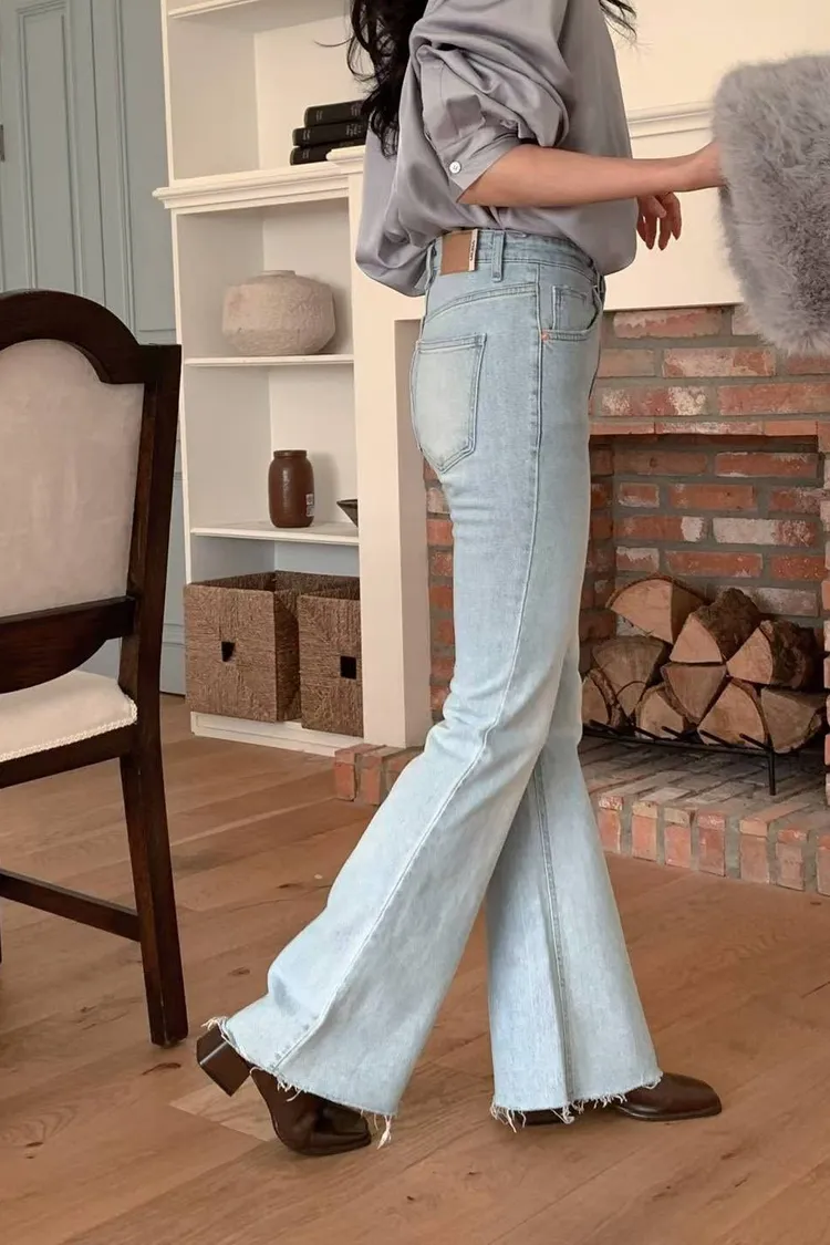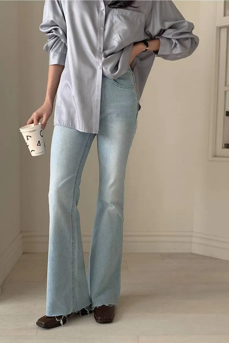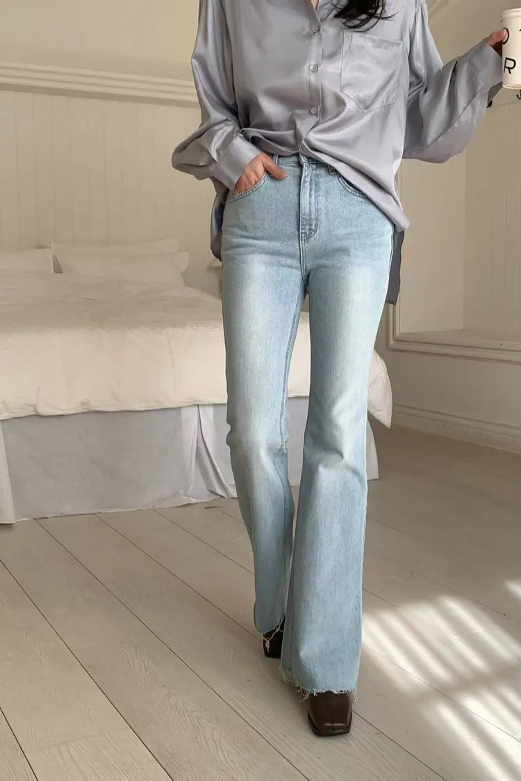 超美超仙的淺刷色喇叭褲