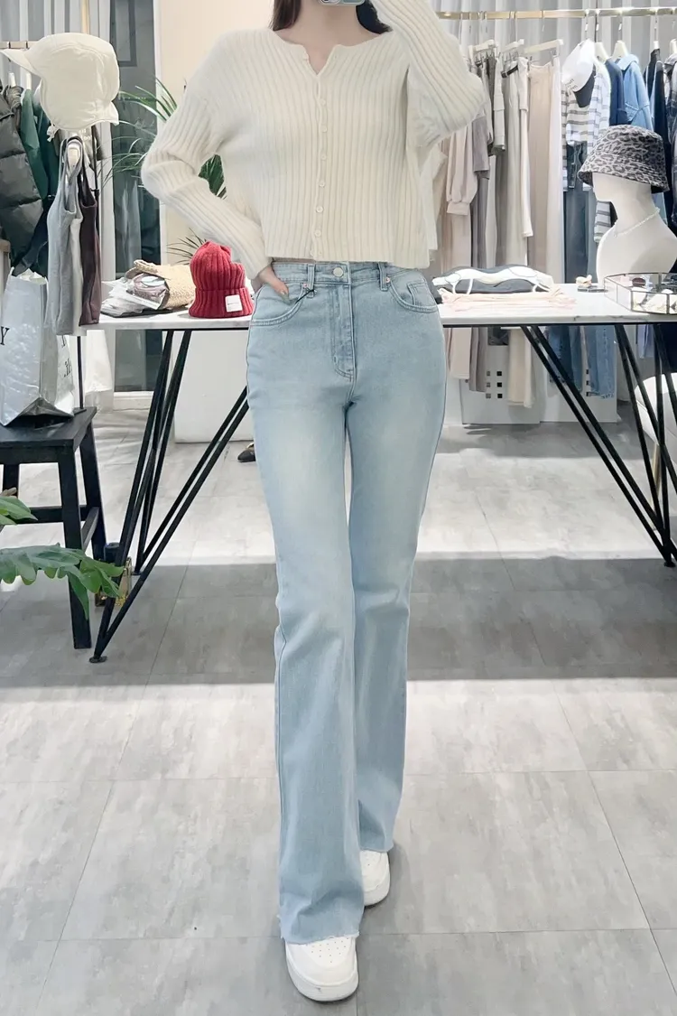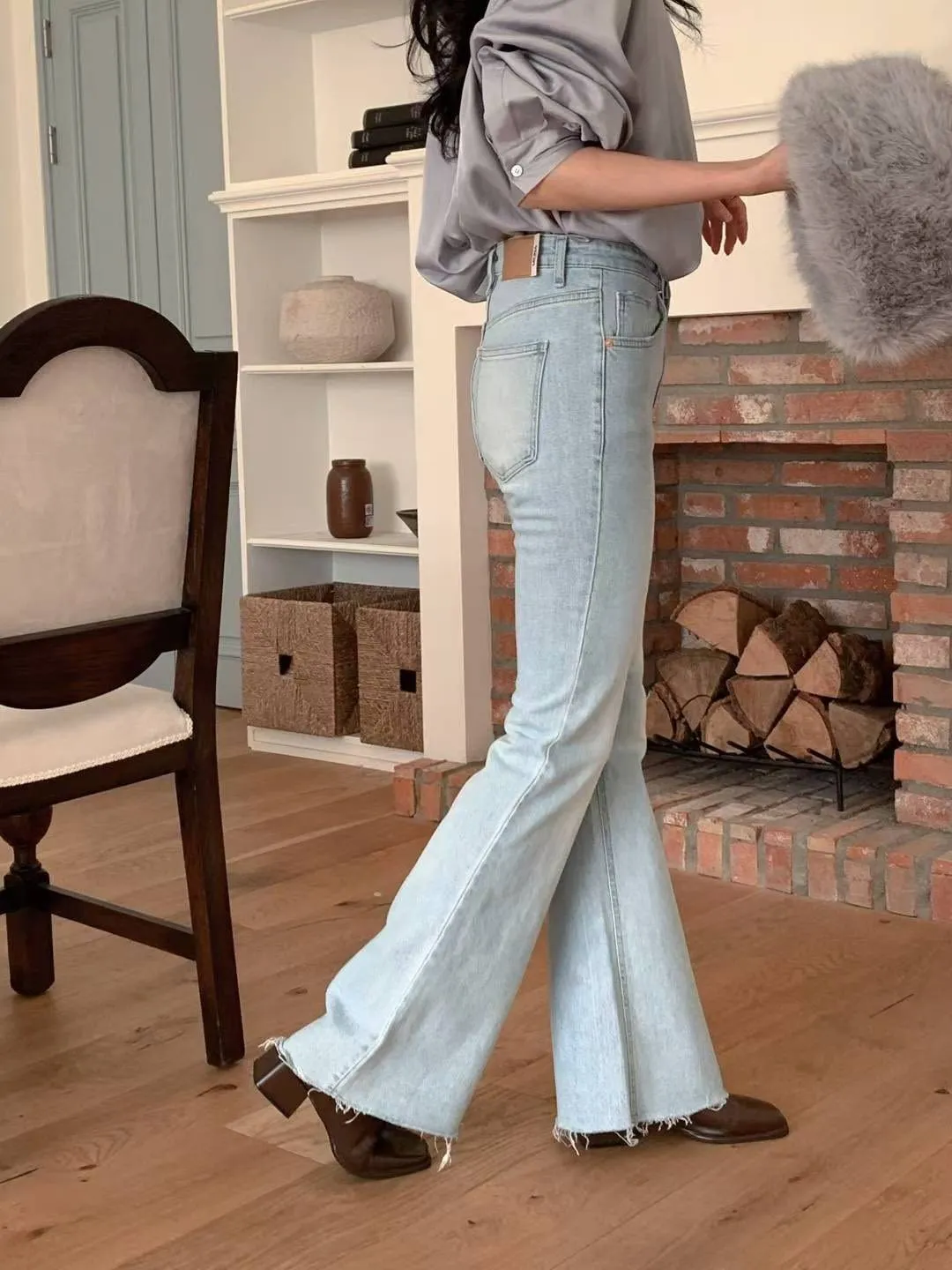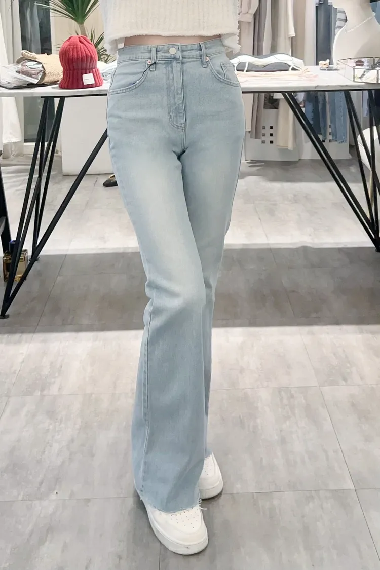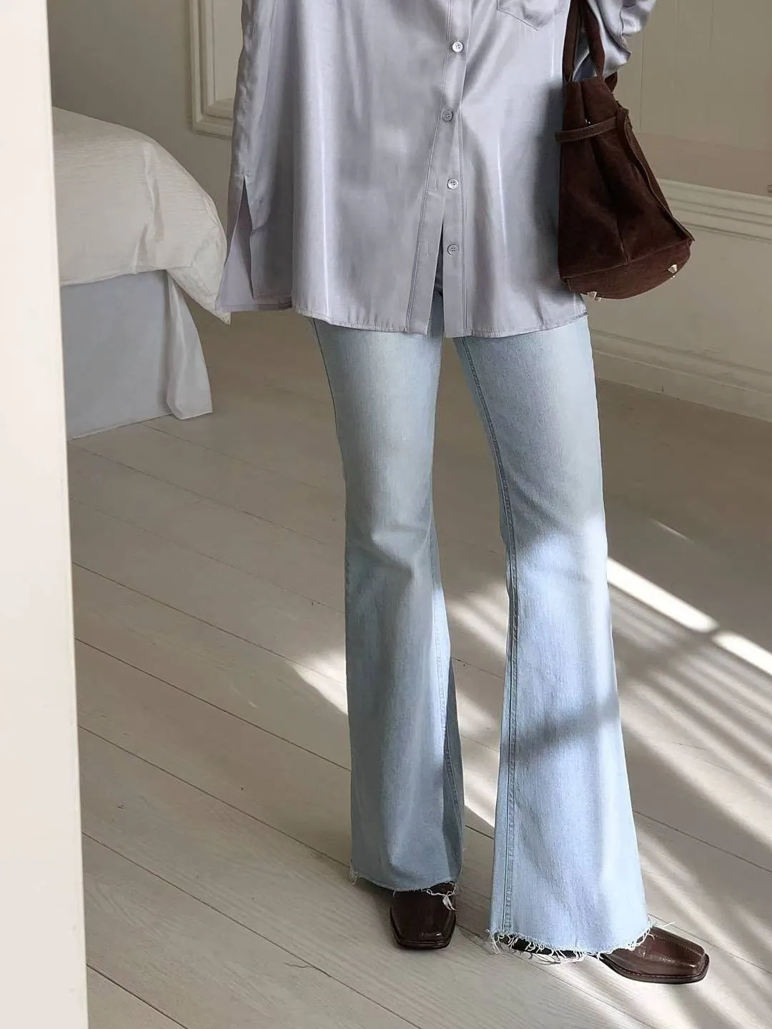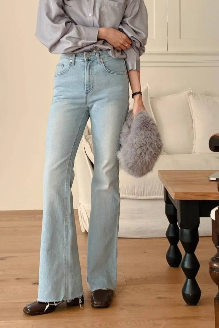 超美超仙的淺刷色喇叭褲