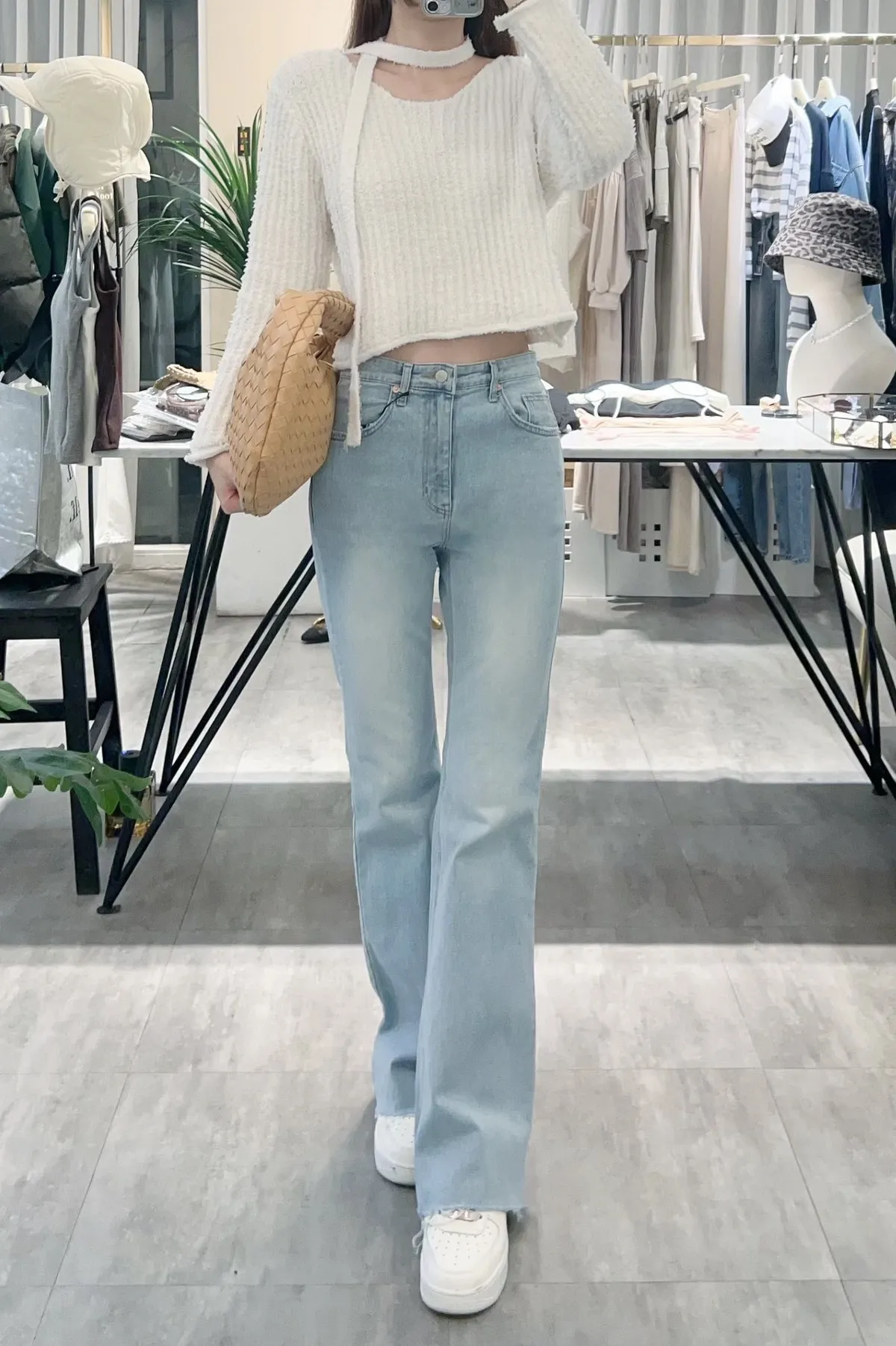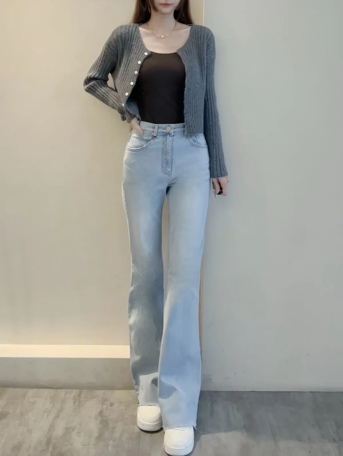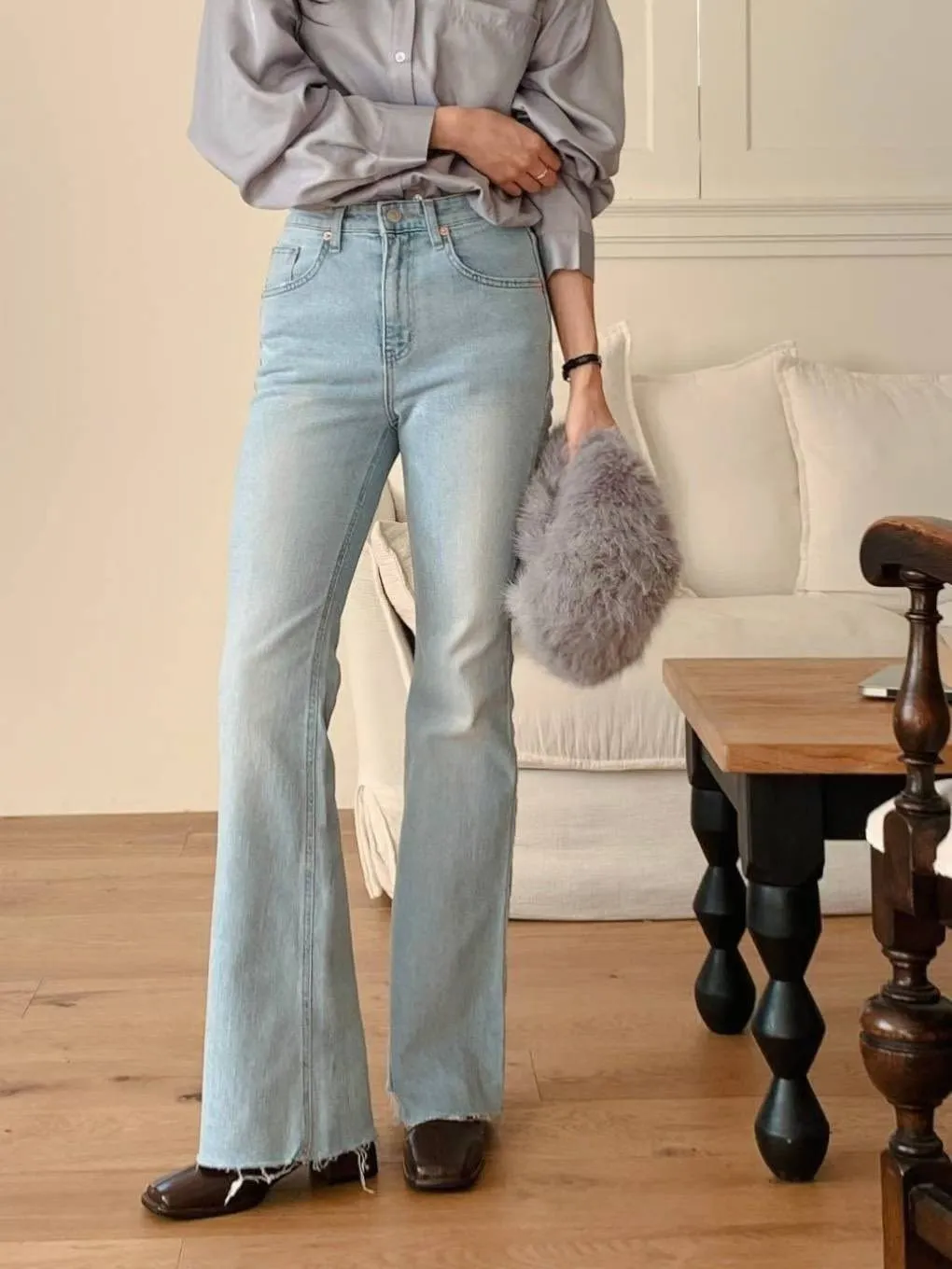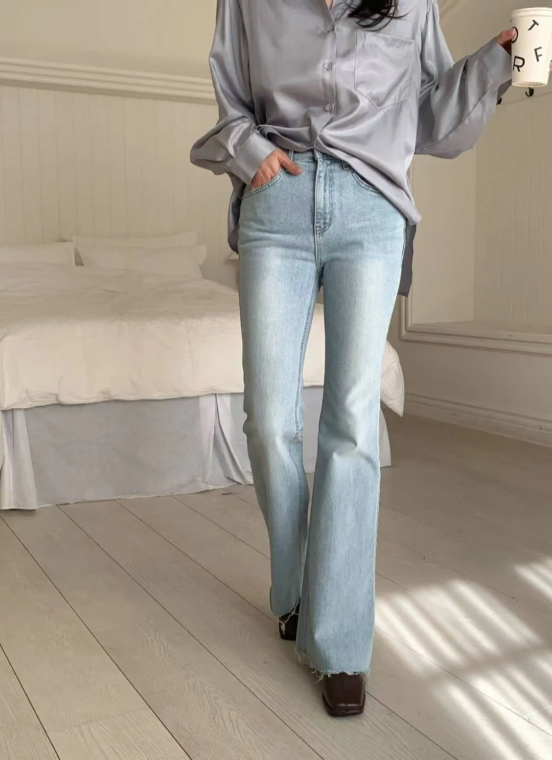 超美超仙的淺刷色喇叭褲