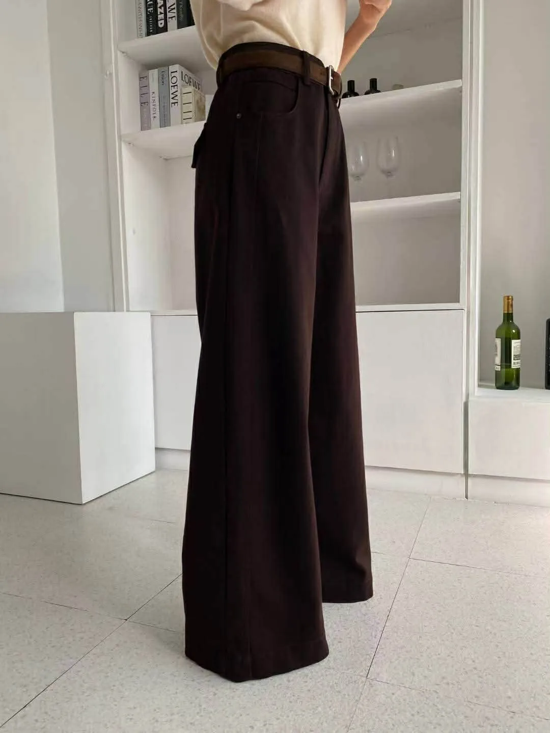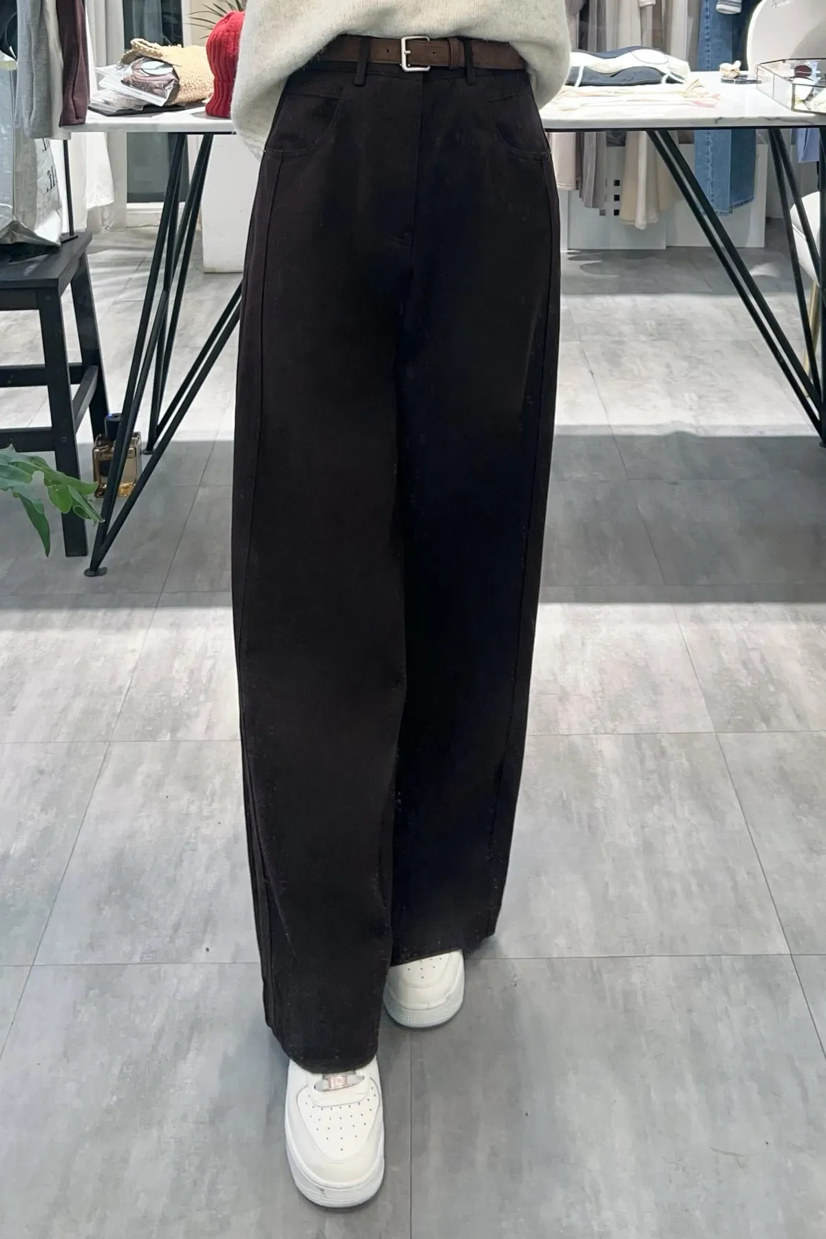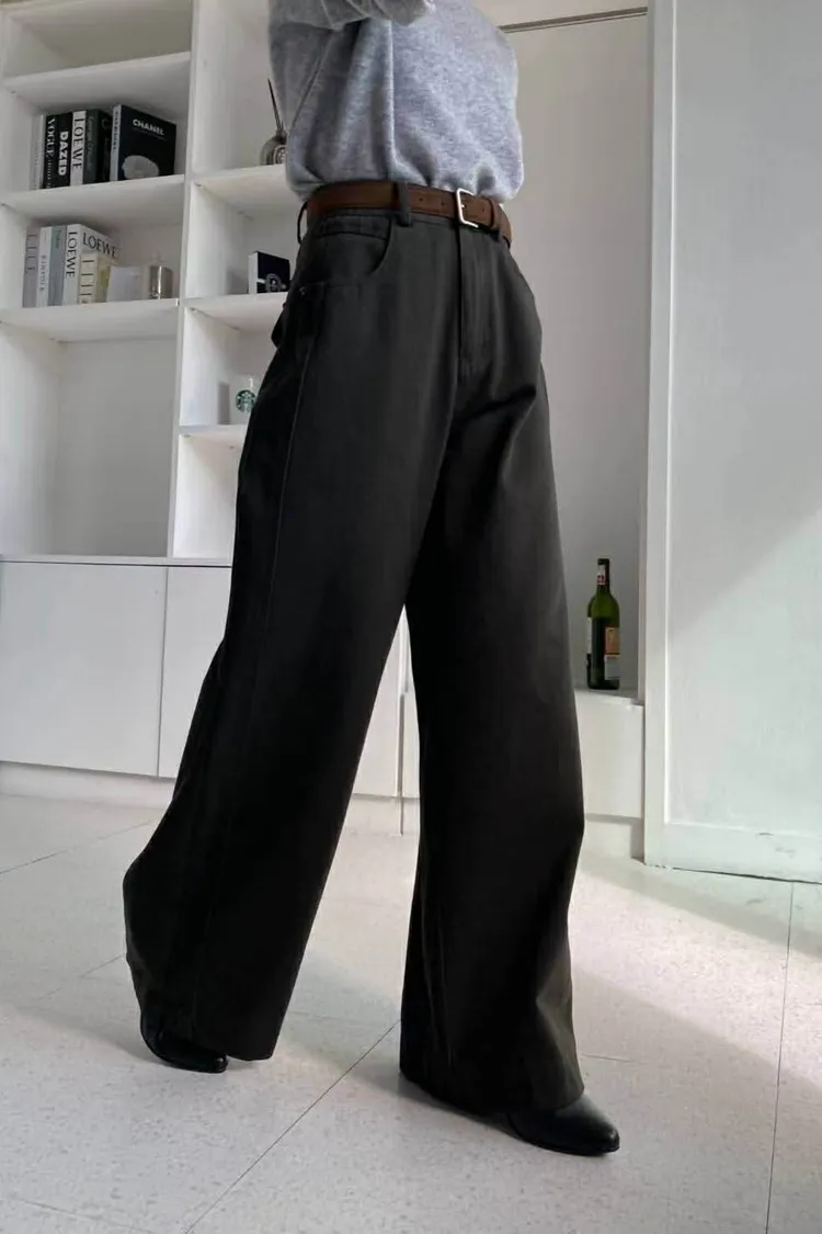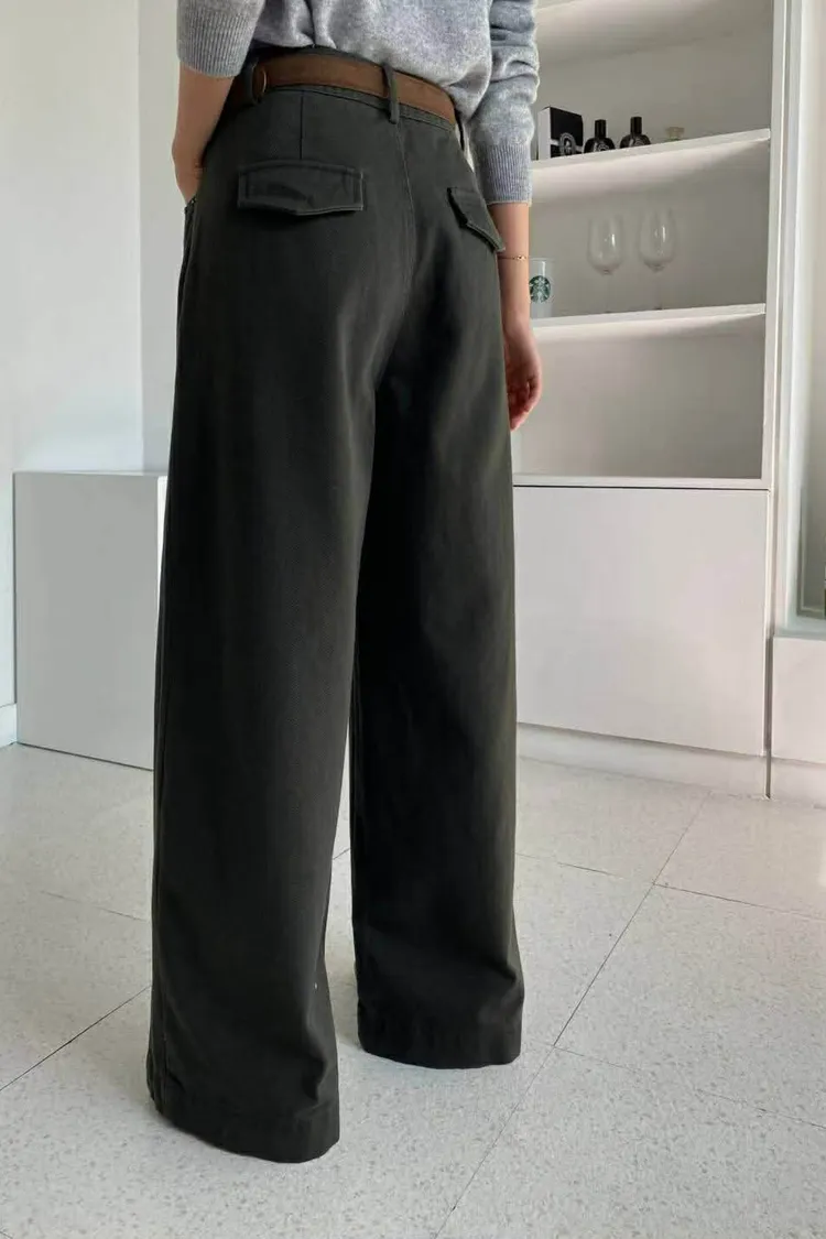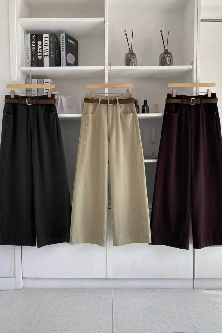 附皮帶側車線寬褲