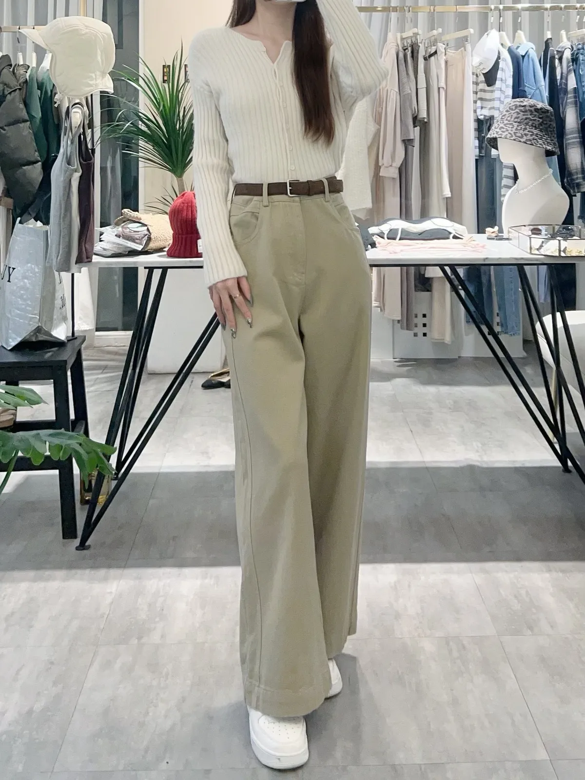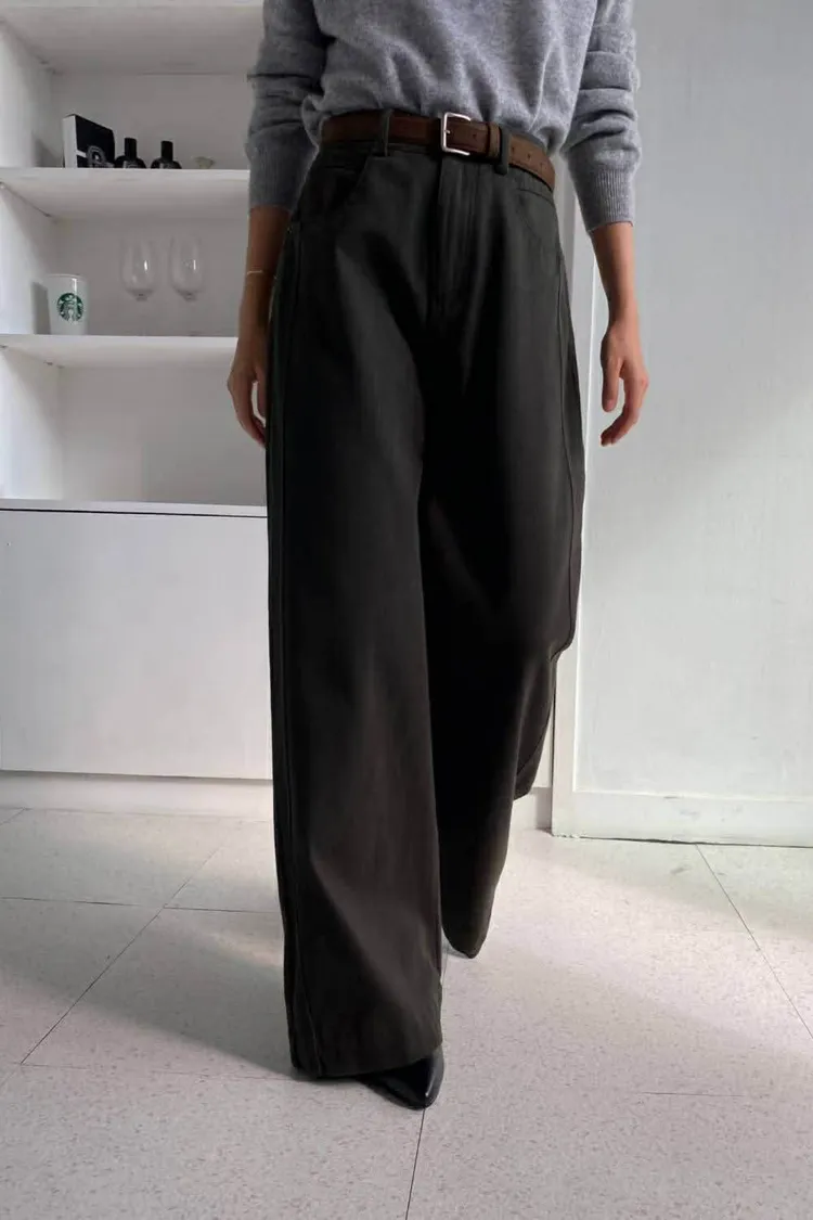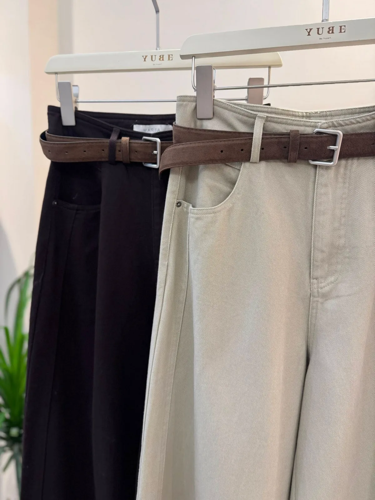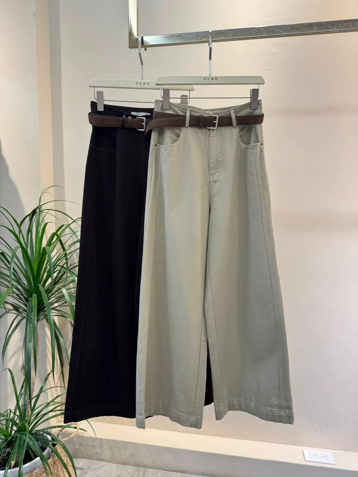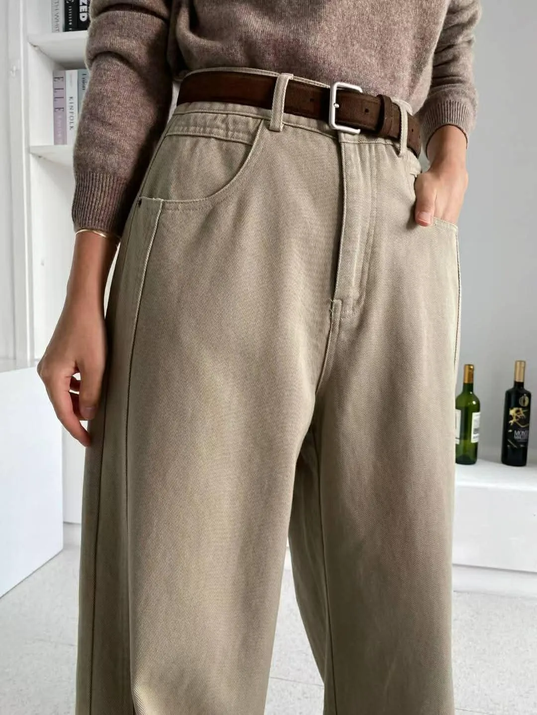 附皮帶側車線寬褲