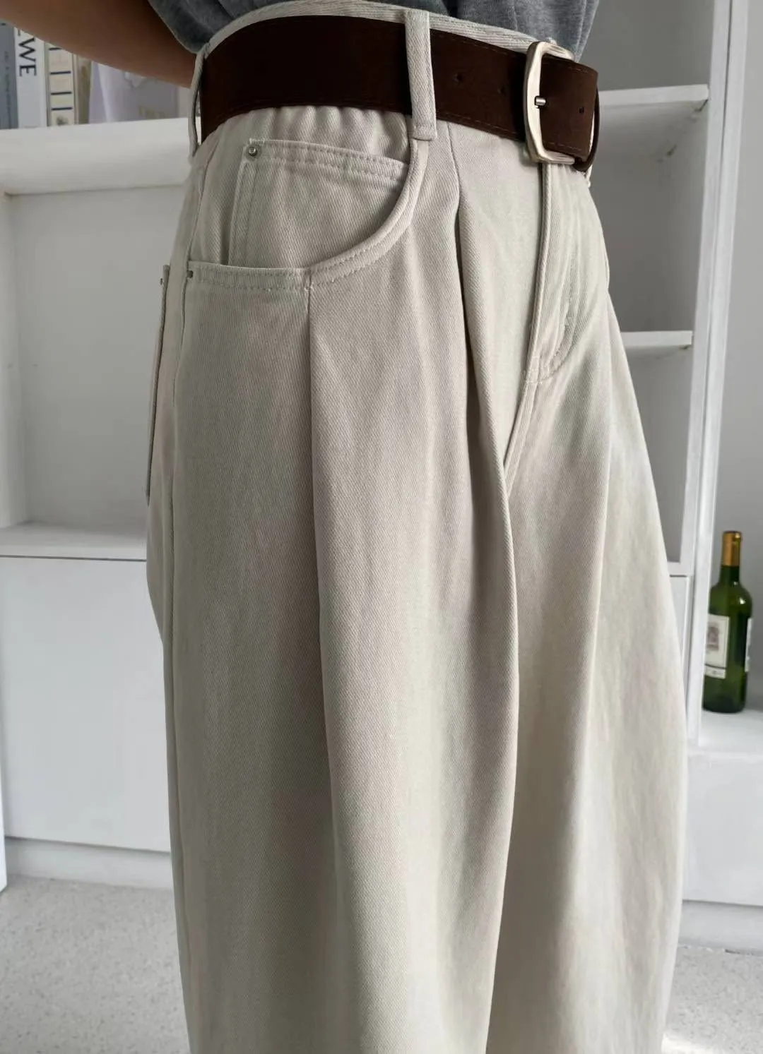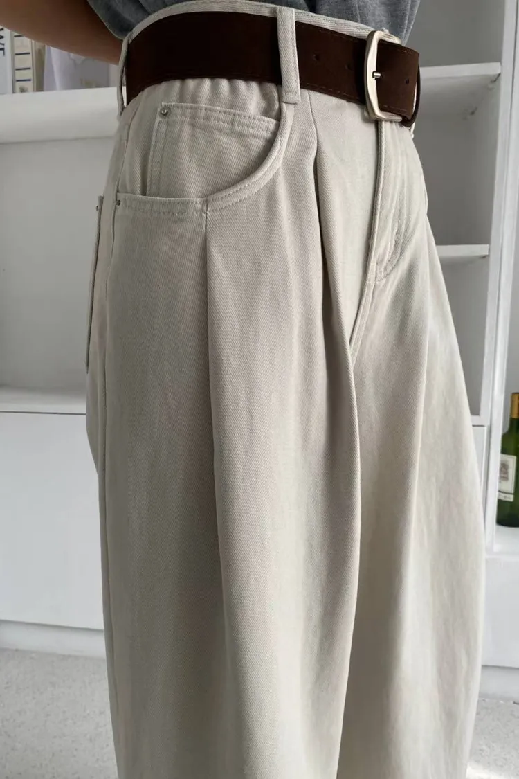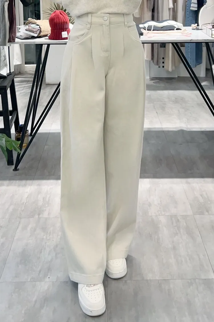 內裡有細短磨毛,冷冷的天也可以舒服穿的牛仔褲!壓摺設計修飾小腹~寬版造型非常顯瘦~顏色多樣! 米杏/灰很有質感,搭配大地色系超好看!藍色百搭超實穿又時髦!材質:聚脂纖維/牛仔丹寧顏色:米杏/灰/藍尺寸:S/M