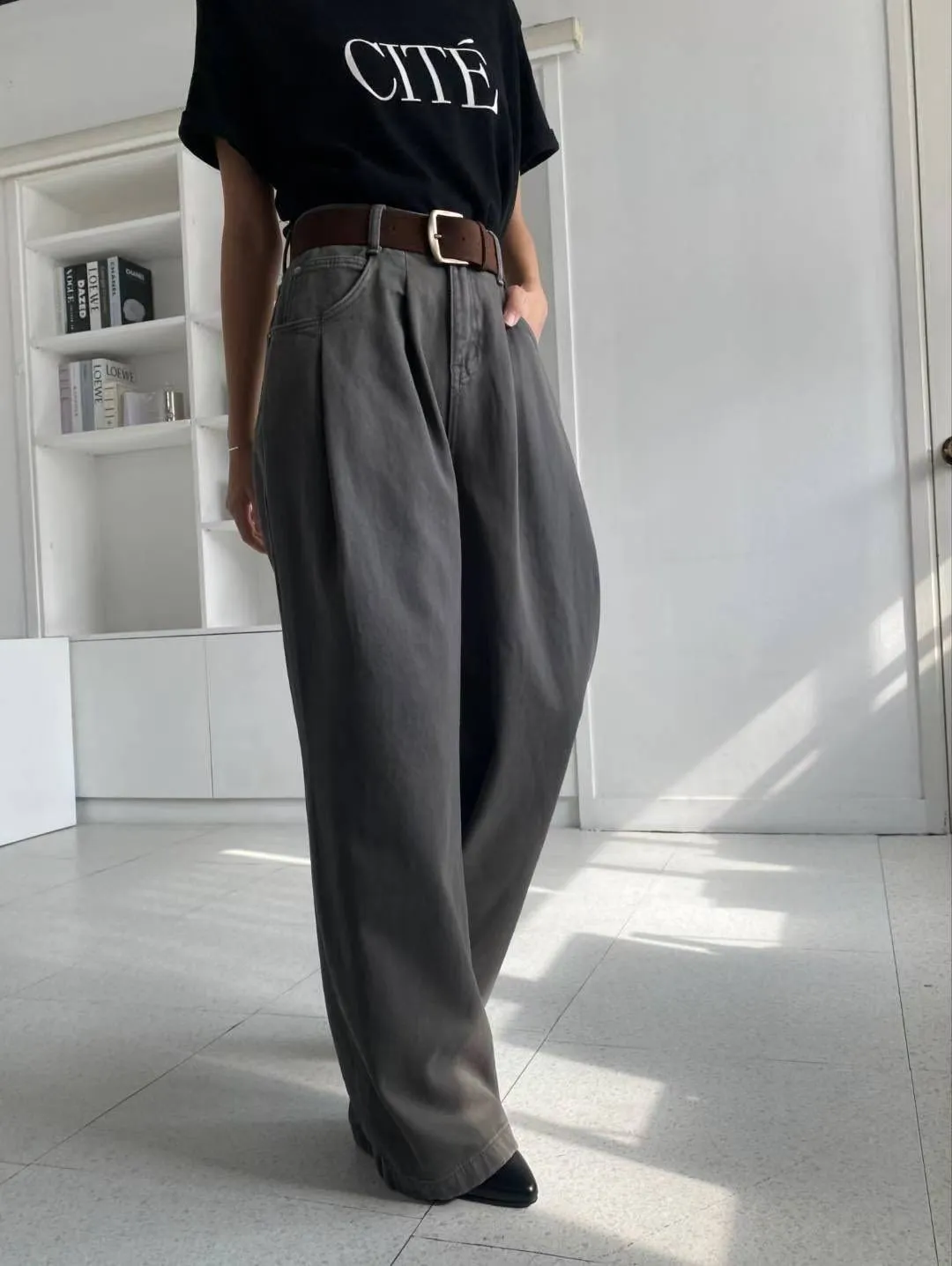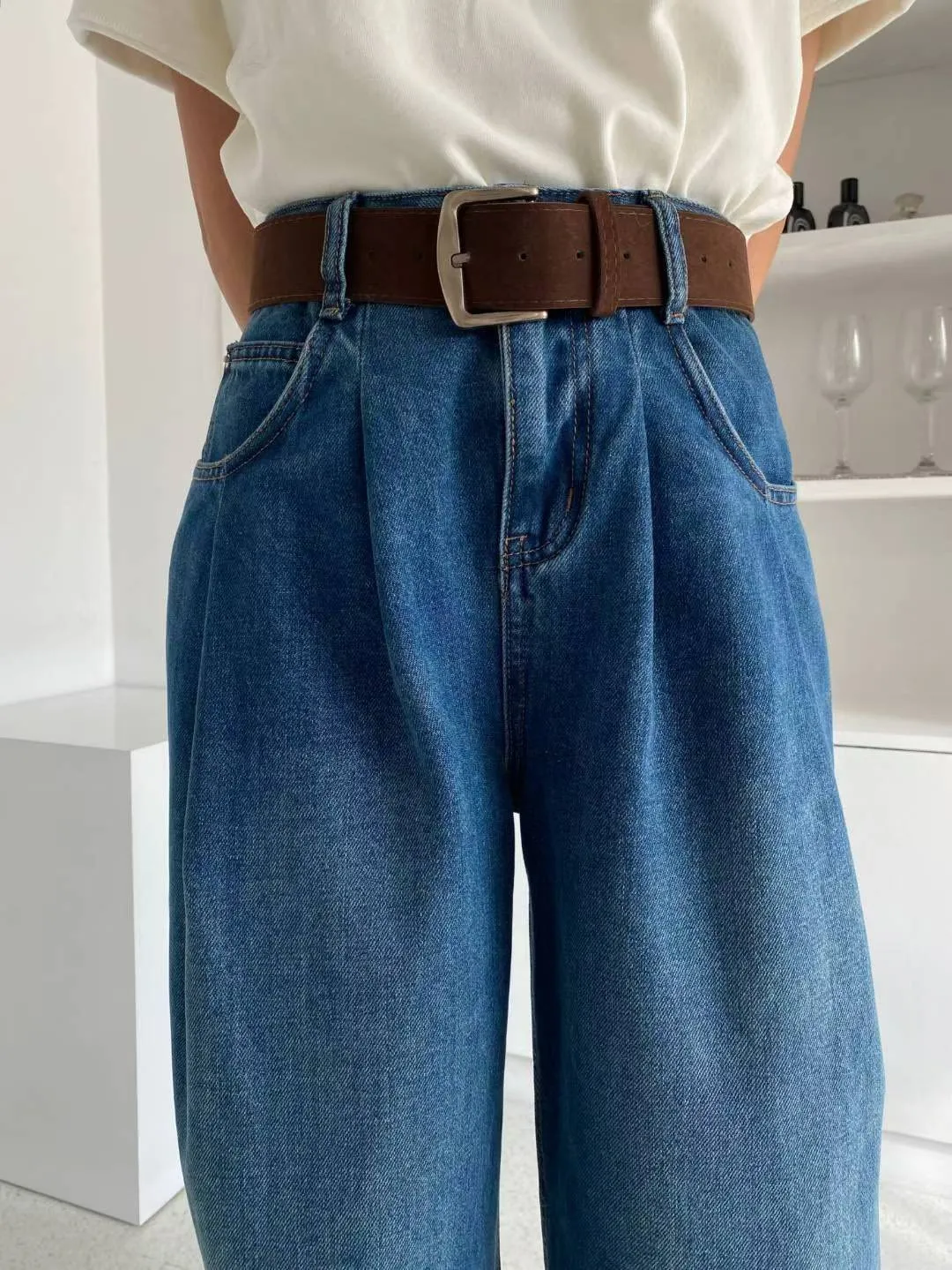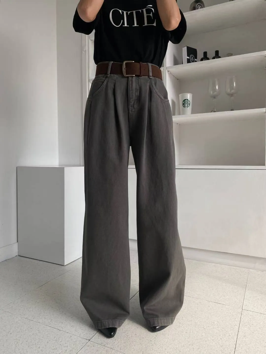 內裡有細短磨毛,冷冷的天也可以舒服穿的牛仔褲!壓摺設計修飾小腹~寬版造型非常顯瘦~顏色多樣! 米杏/灰很有質感,搭配大地色系超好看!藍色百搭超實穿又時髦!材質:聚脂纖維/牛仔丹寧顏色:米杏/灰/藍尺寸:S/M