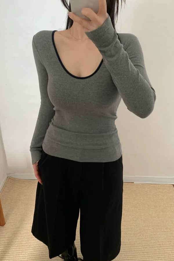 坑條內磨毛長袖BRA TOP T