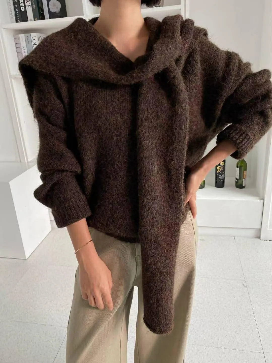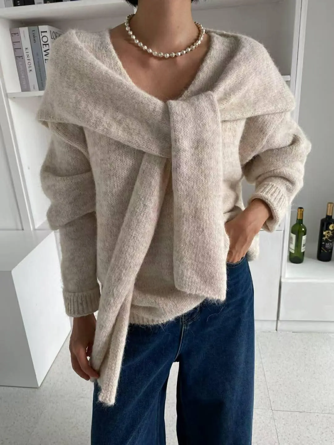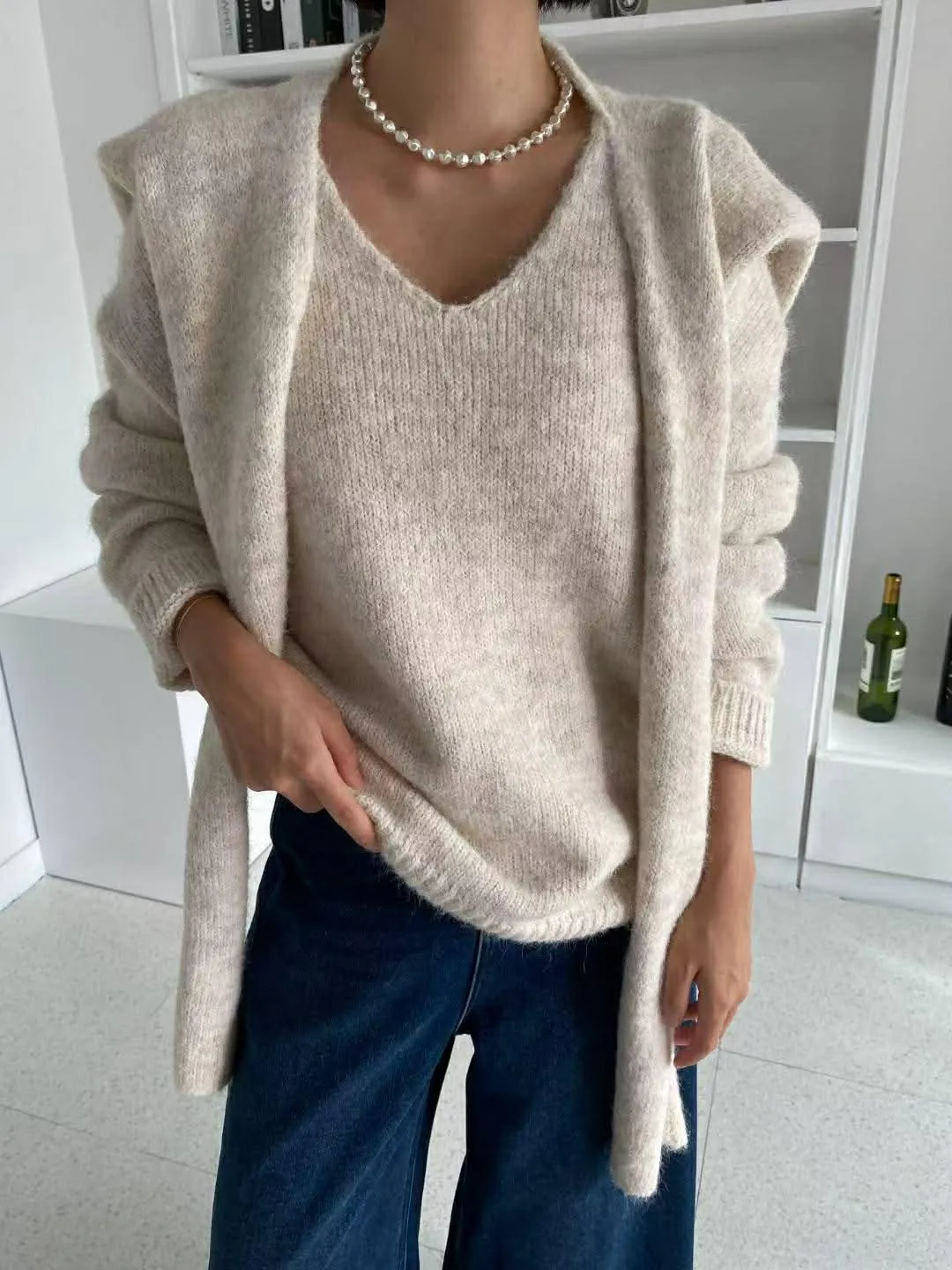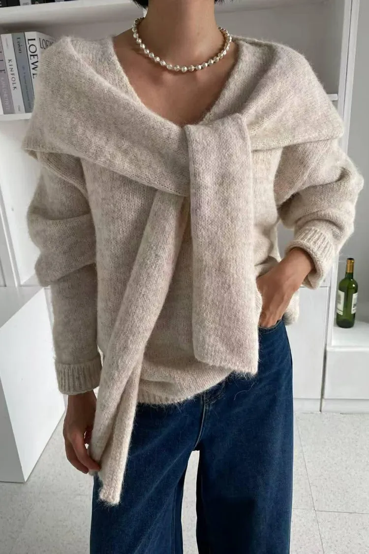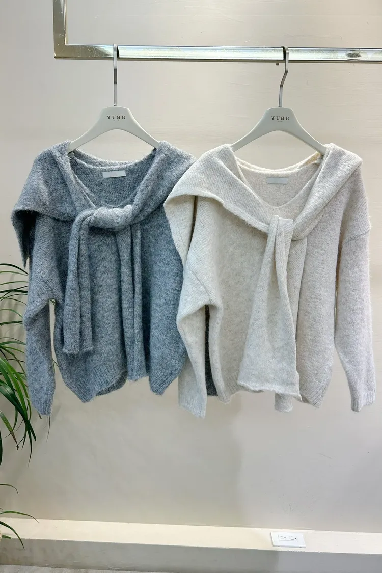 柔軟的附披肩針織衣