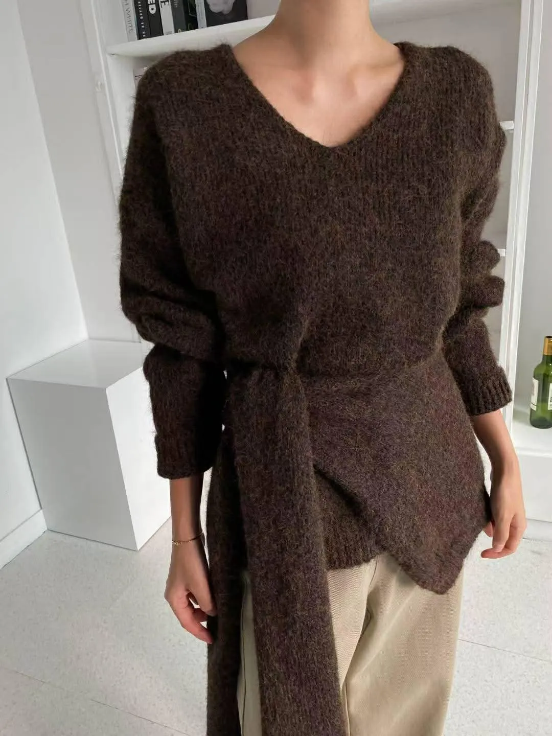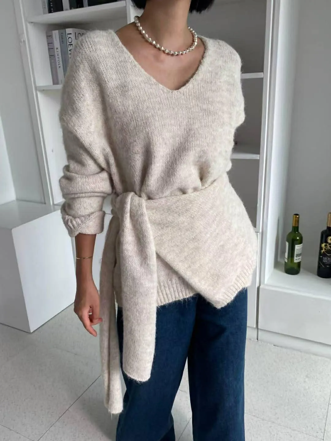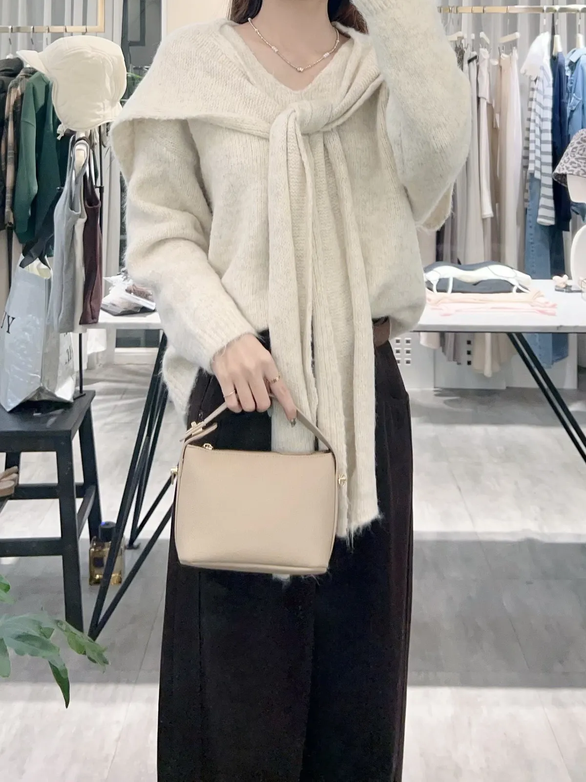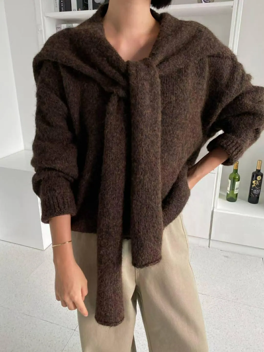 柔軟的附披肩針織衣