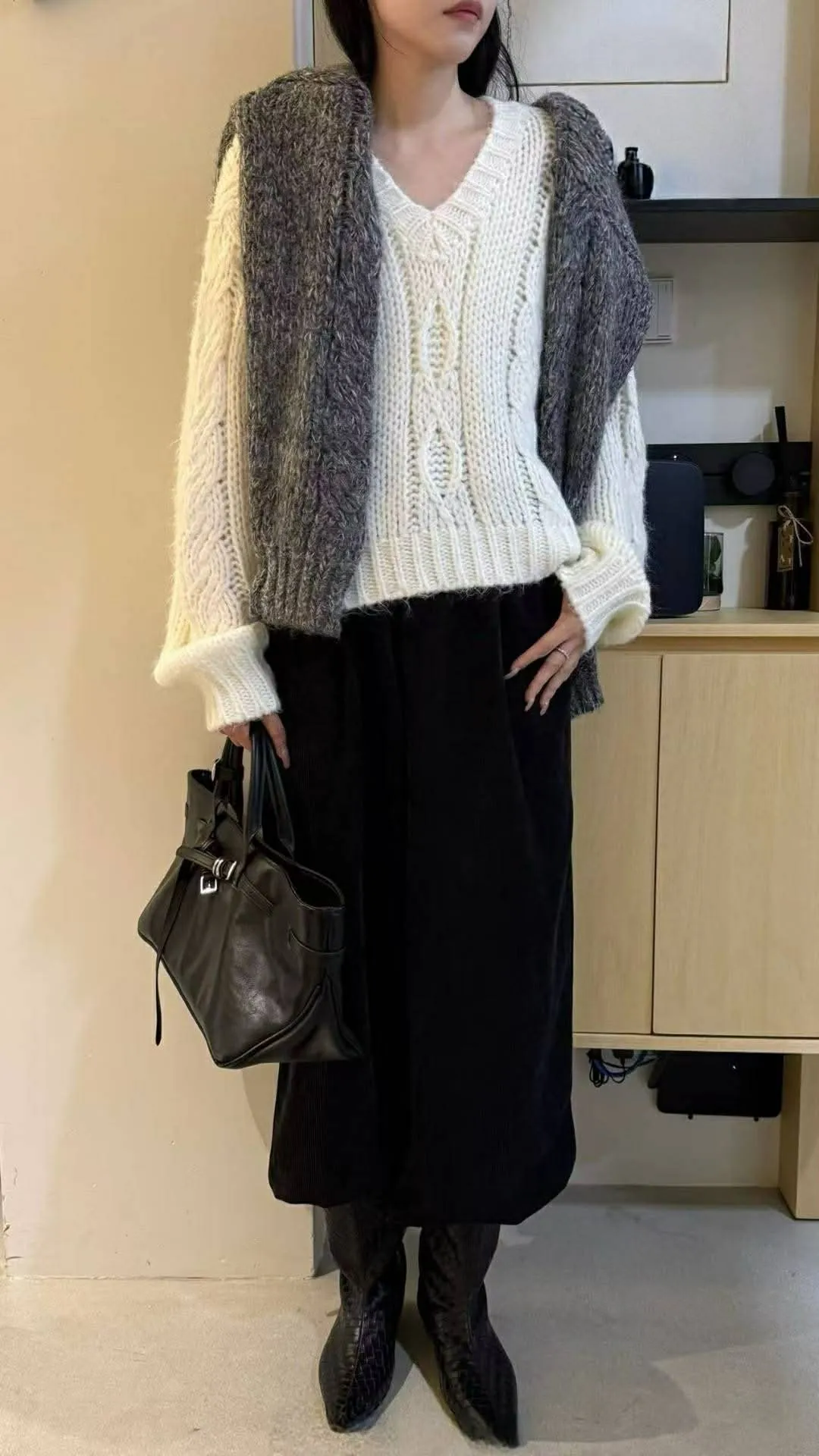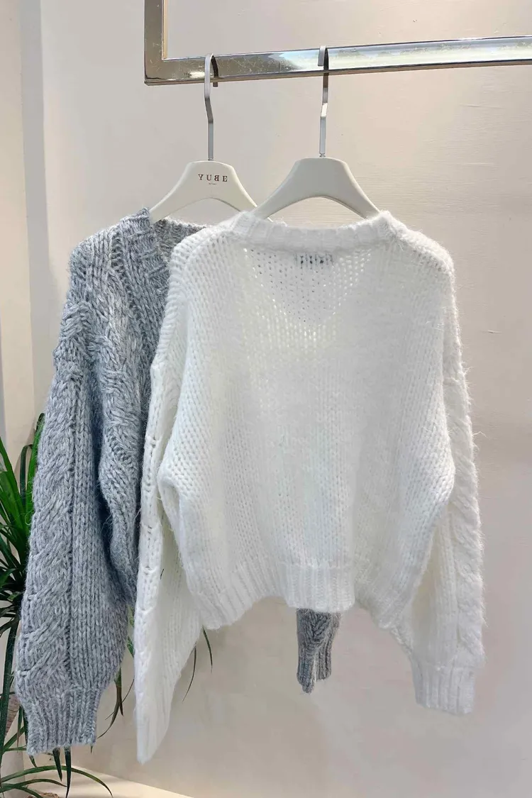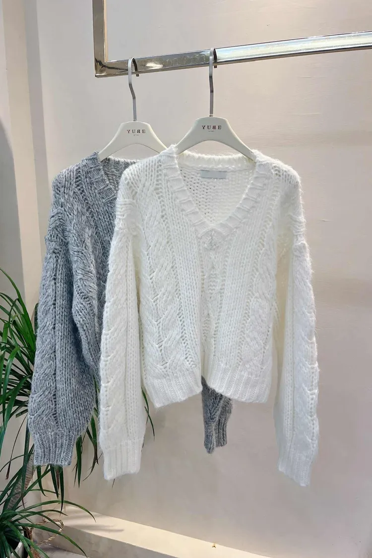 選用親膚柔軟的毛衣面料細膩不刺膚,穿著舒適有溫度經典菱格紋織紋,提升整體質感層次大 V 領設計修飾臉型與頸部線條可自然拉成斜肩穿法,展現隨性女人味單穿即有造型感,內搭襯衫亦合適輕鬆打造優雅又不失慵懶的日常穿搭材質:聚脂纖維顏色:白/灰