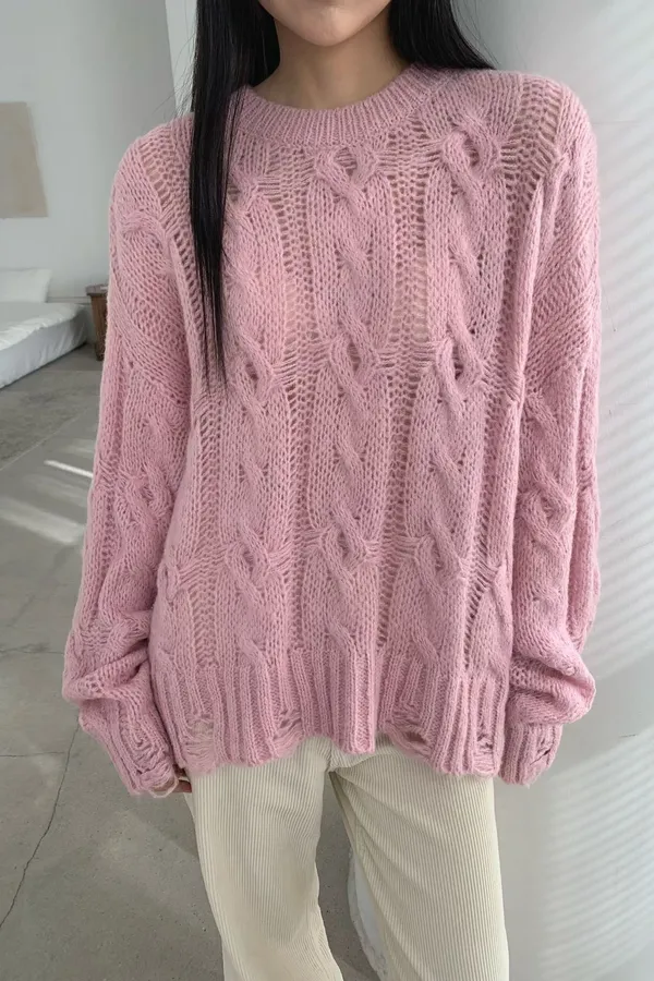 圓領菱格紋鬆弛感針織