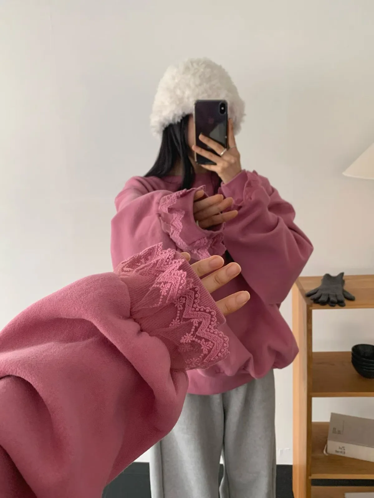 袖口拼接蕾絲網紗