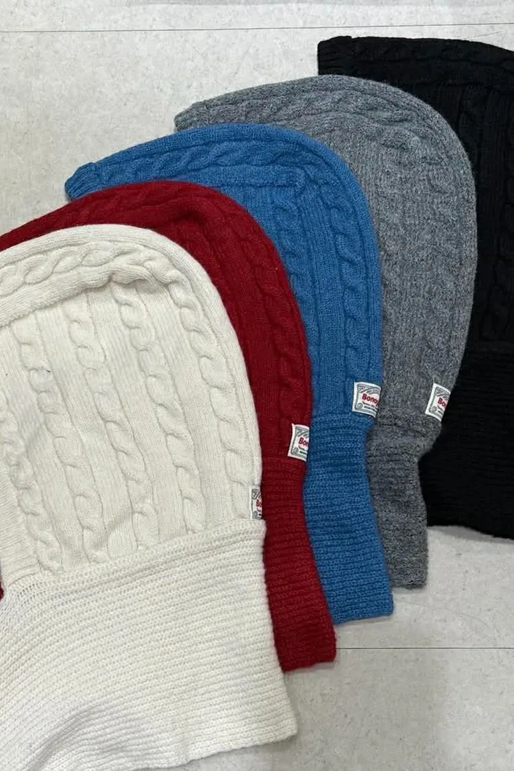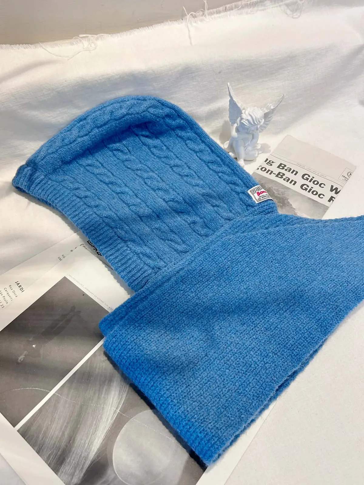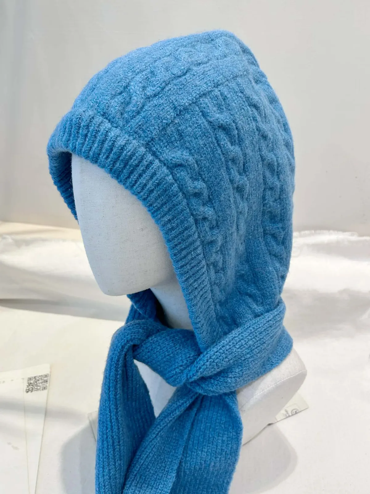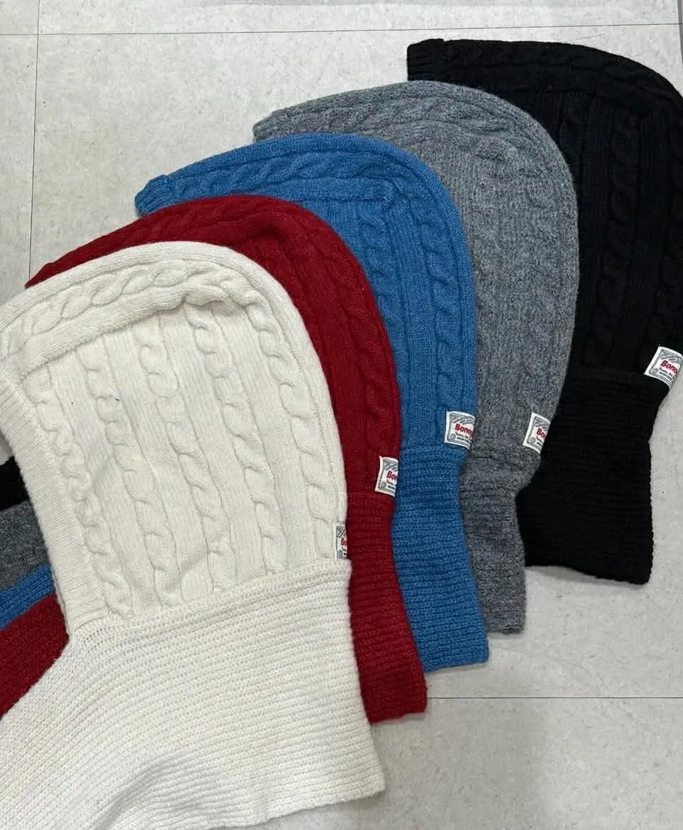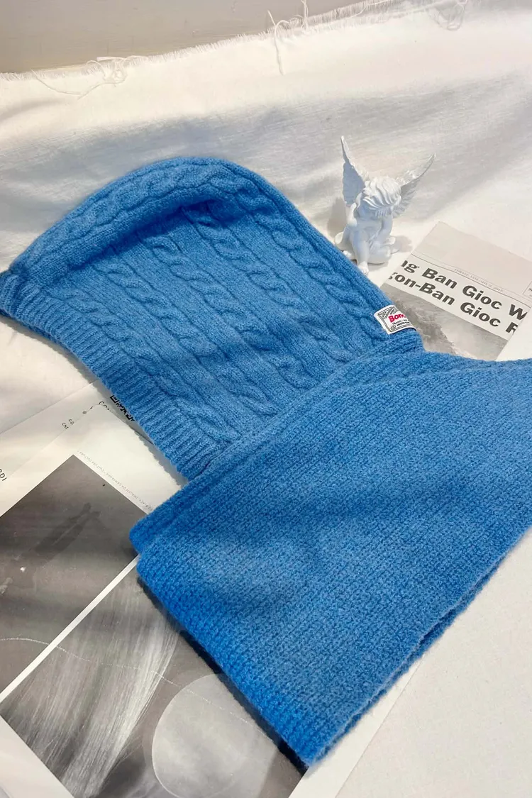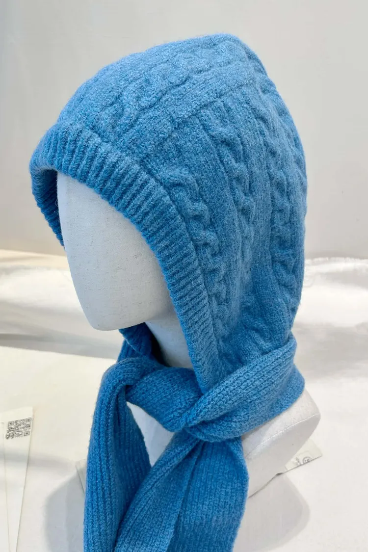 針織羅紋連帽圍巾