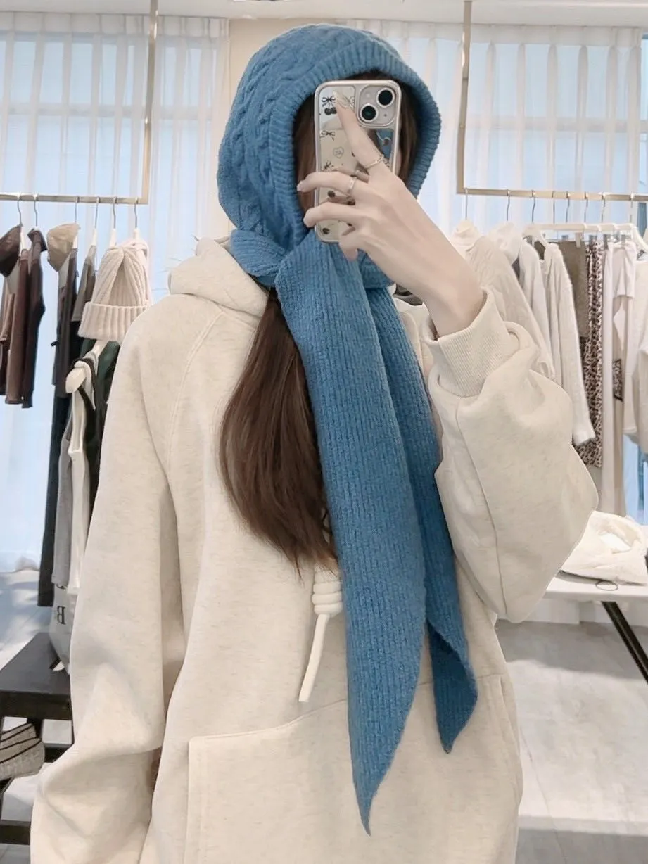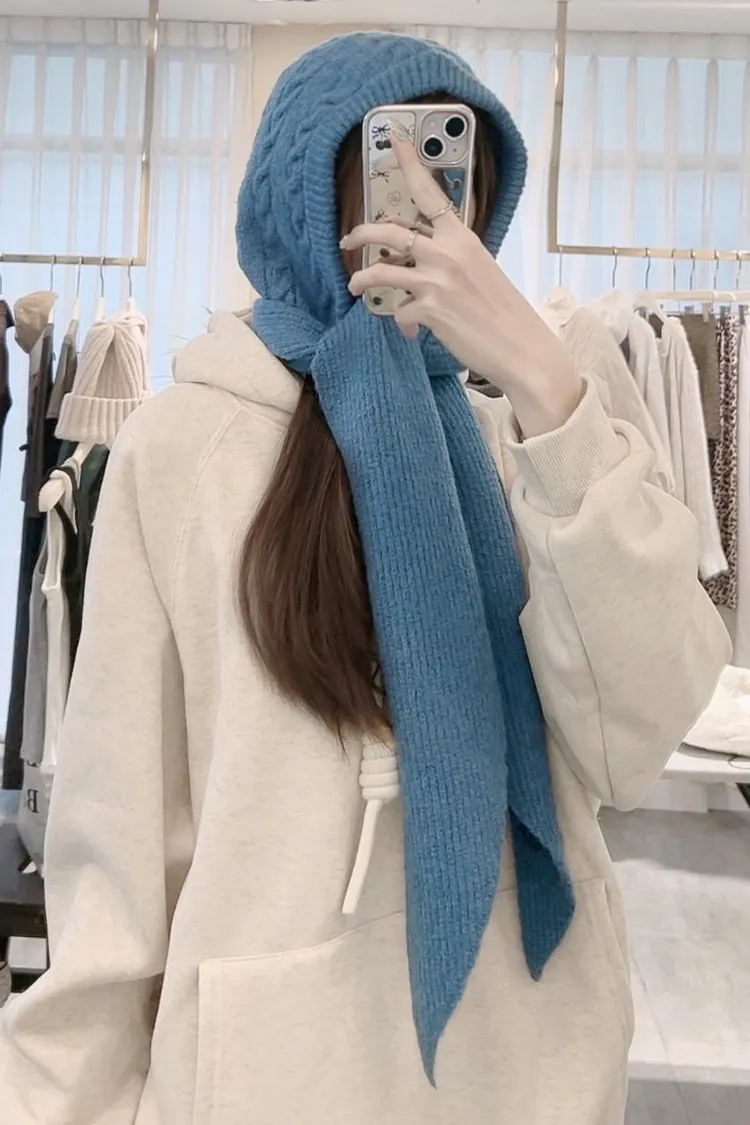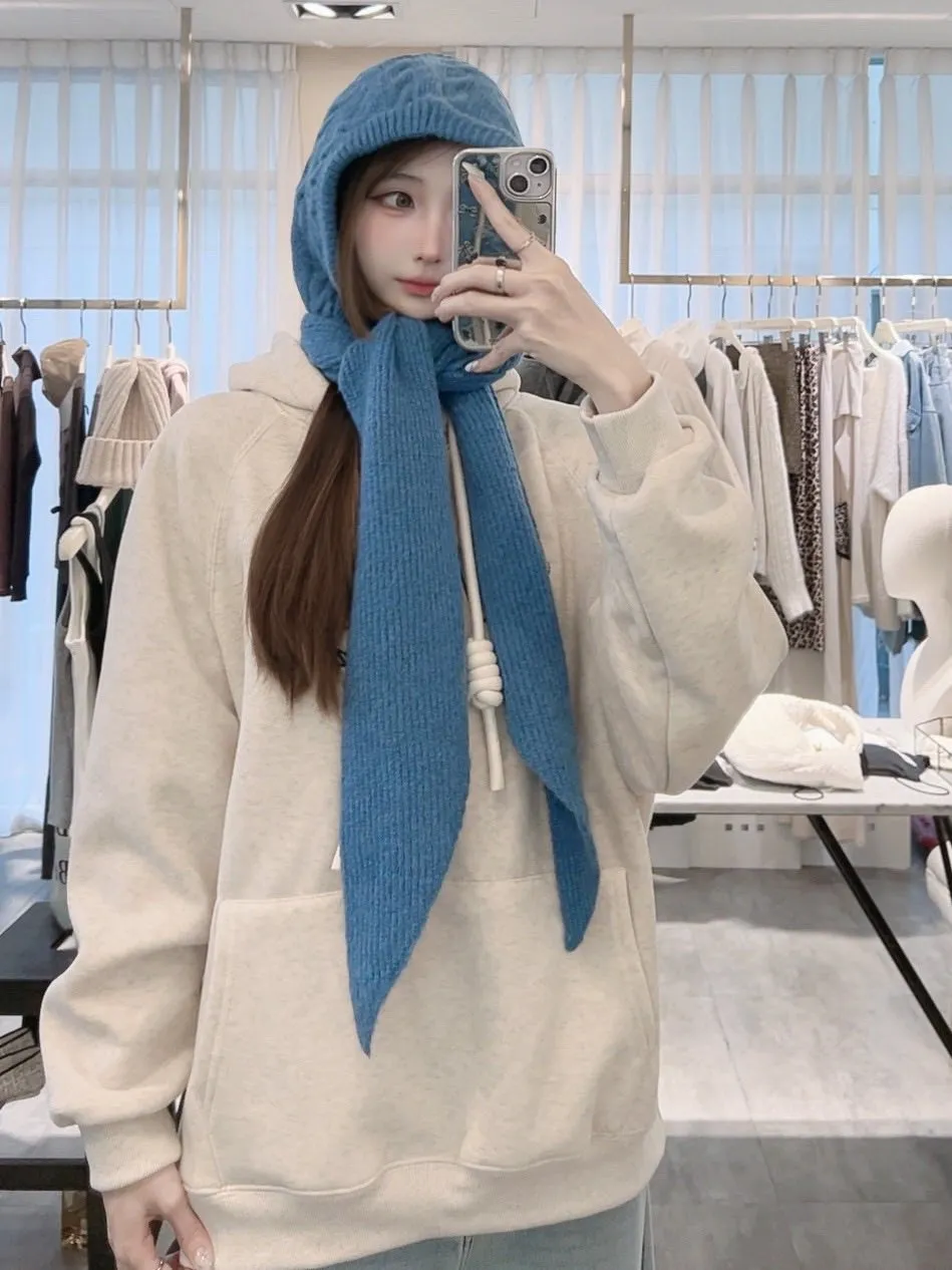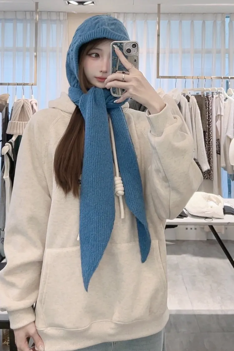 選用細緻柔軟的針織面料羅紋織法帶來自然彈性與立體感連帽結合圍巾的設計兼顧保暖度與造型層次貼合頸部與頭部線條配戴舒適不厚重單品即可完成整體造型為日常穿搭增添溫暖又有型的細節材質:聚脂纖維、針織顏色:藍/紅
