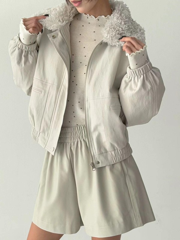 ✈韓國連線✈ 領口毛毛 內鴨絨皮革外套
