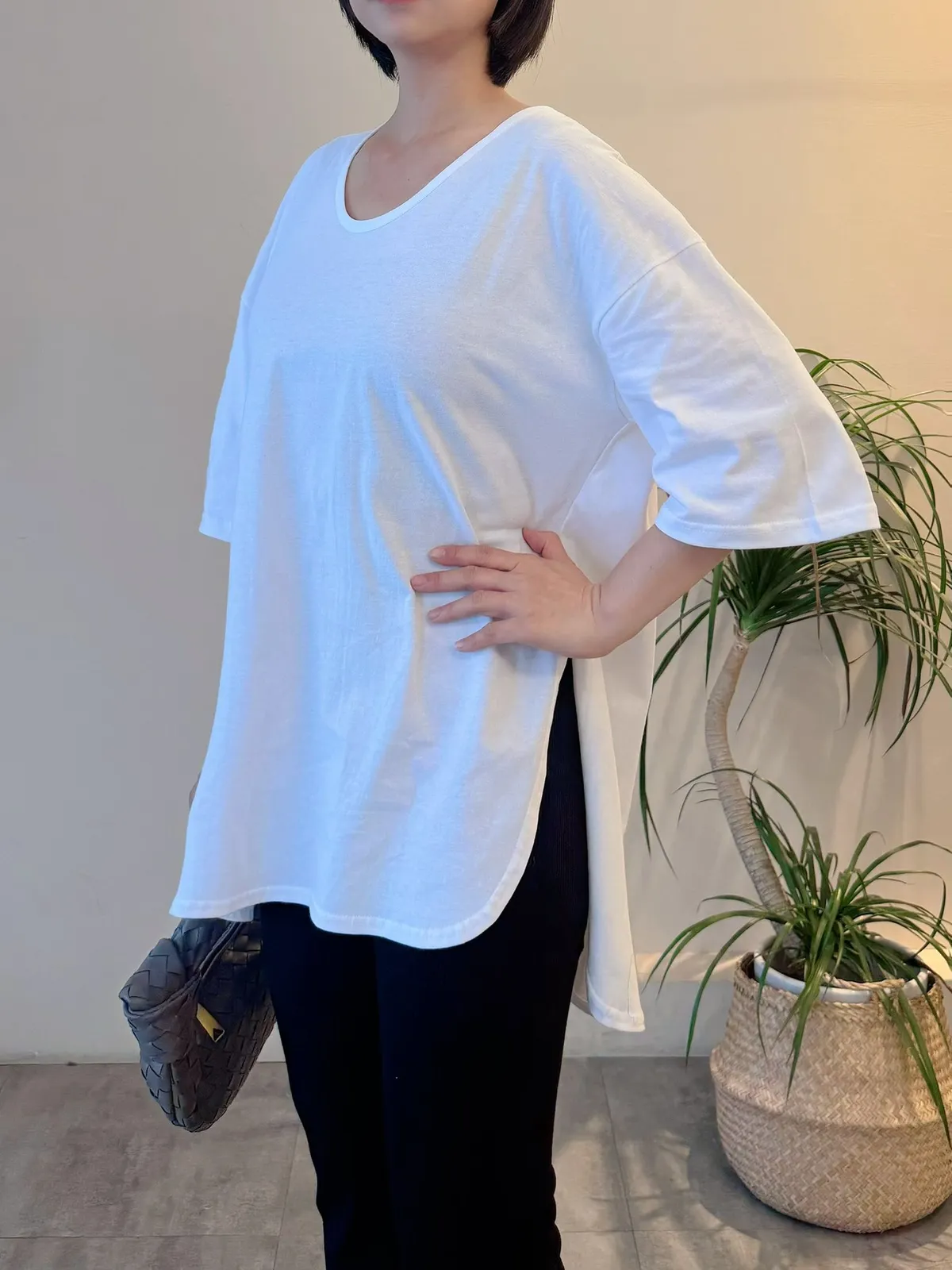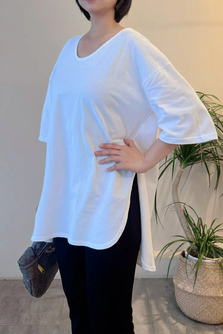 選用柔軟舒適的棉質面料觸感親膚,日常穿著自在不拘束下擺圓弧剪裁結合前短後長設計自然修飾身形比例,線條更顯俐落兩側開衩細節提升活動度為整體造型增添層次感大圓領設計修飾頸部線條單穿清爽有型亦可疊穿於大學T內輕鬆打造豐富又耐看的日常穿搭 材質:聚脂纖維顏色:黑/白/灰