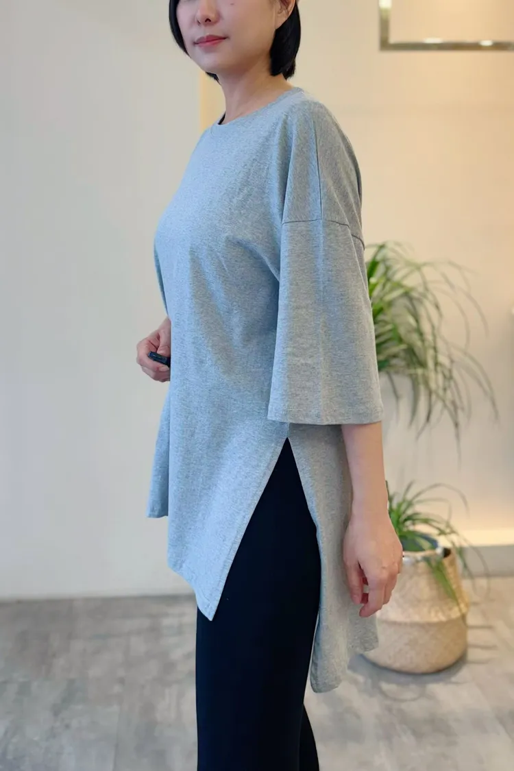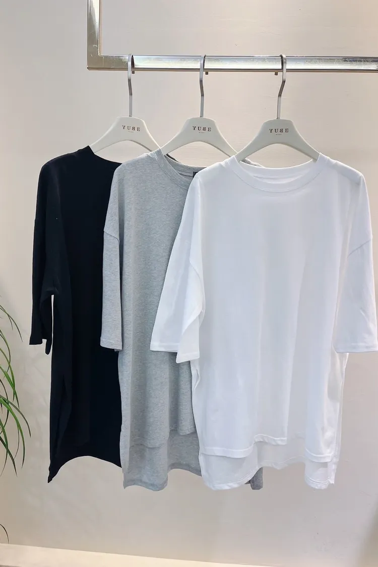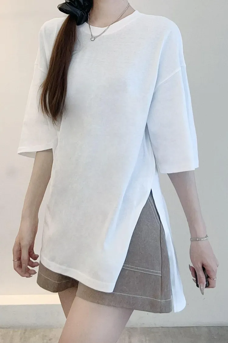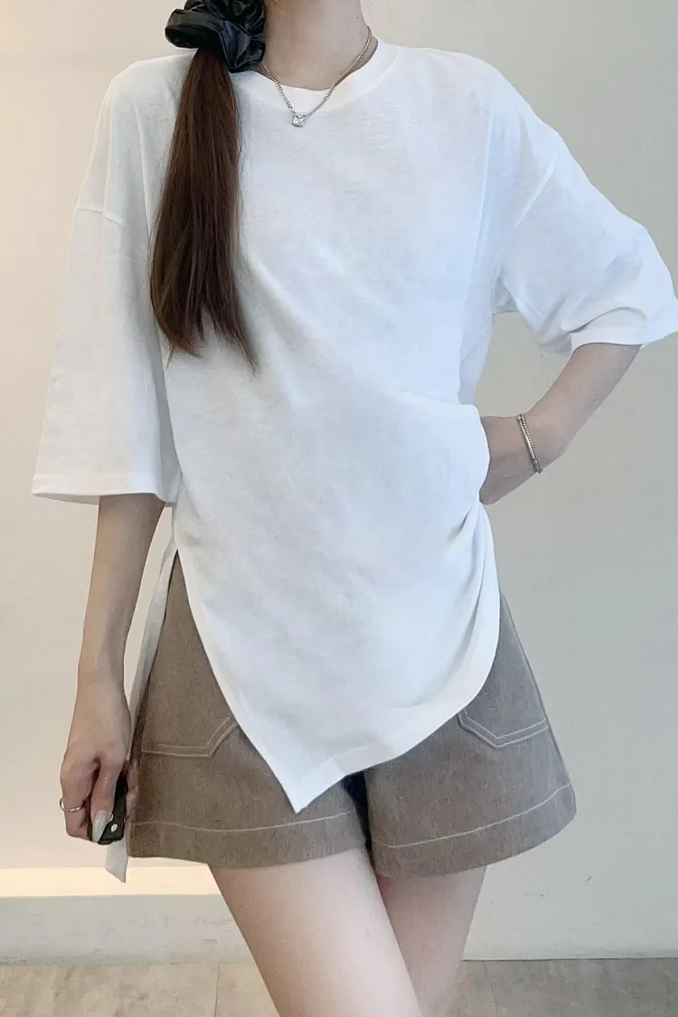 百搭前短後長素面T