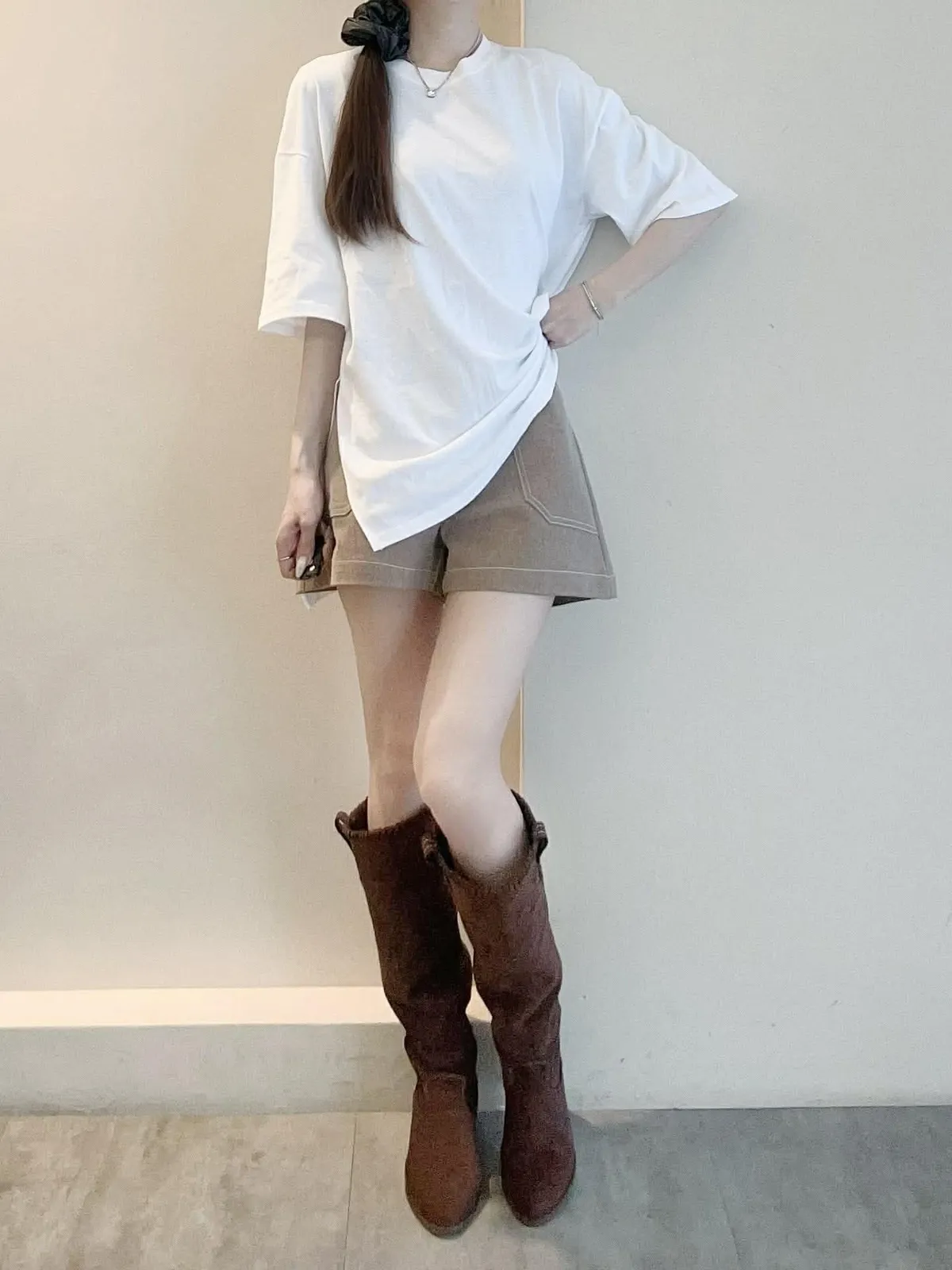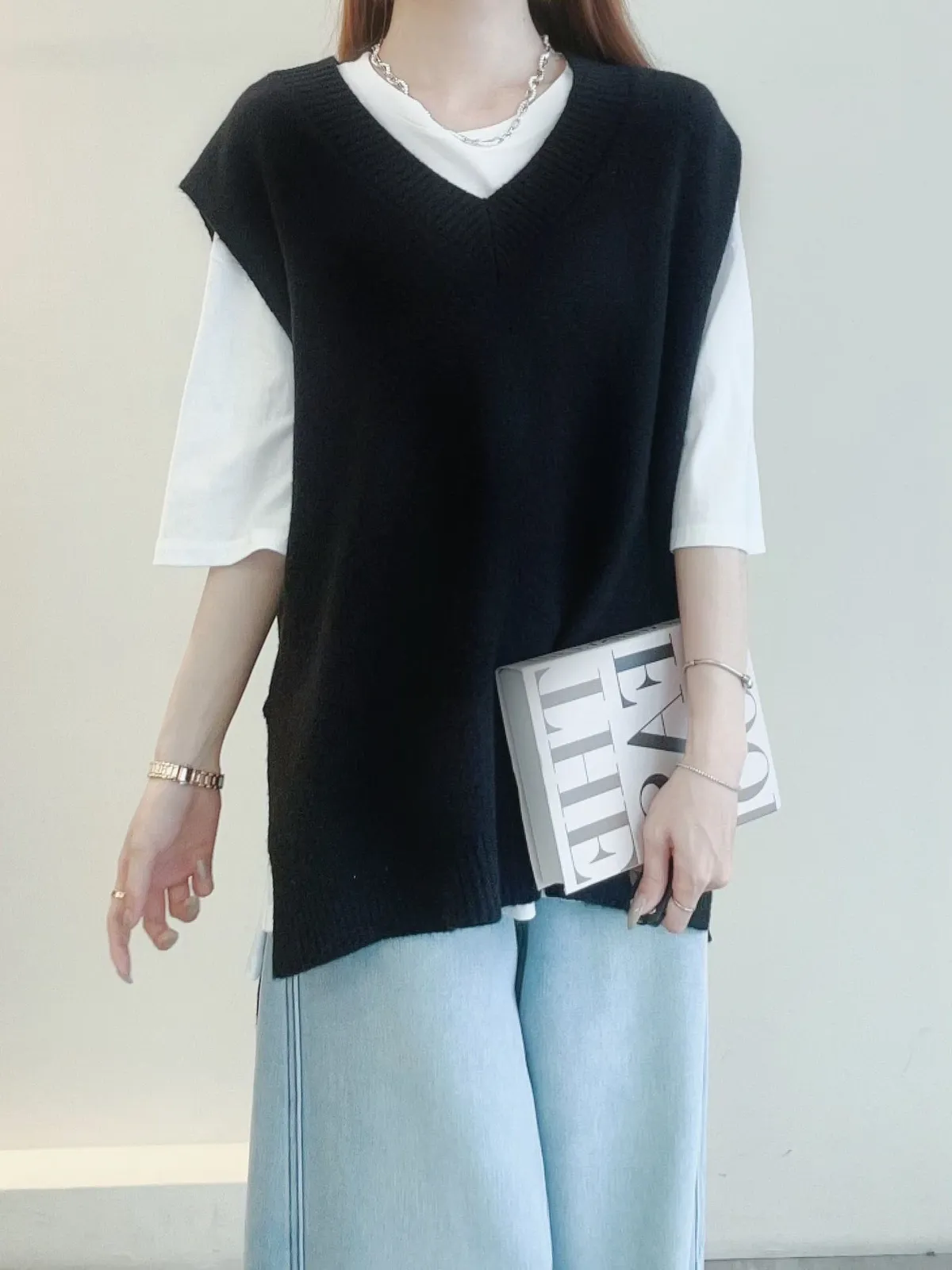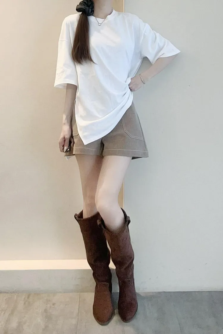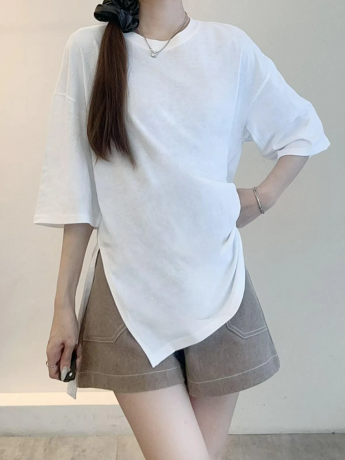百搭前短後長素面T