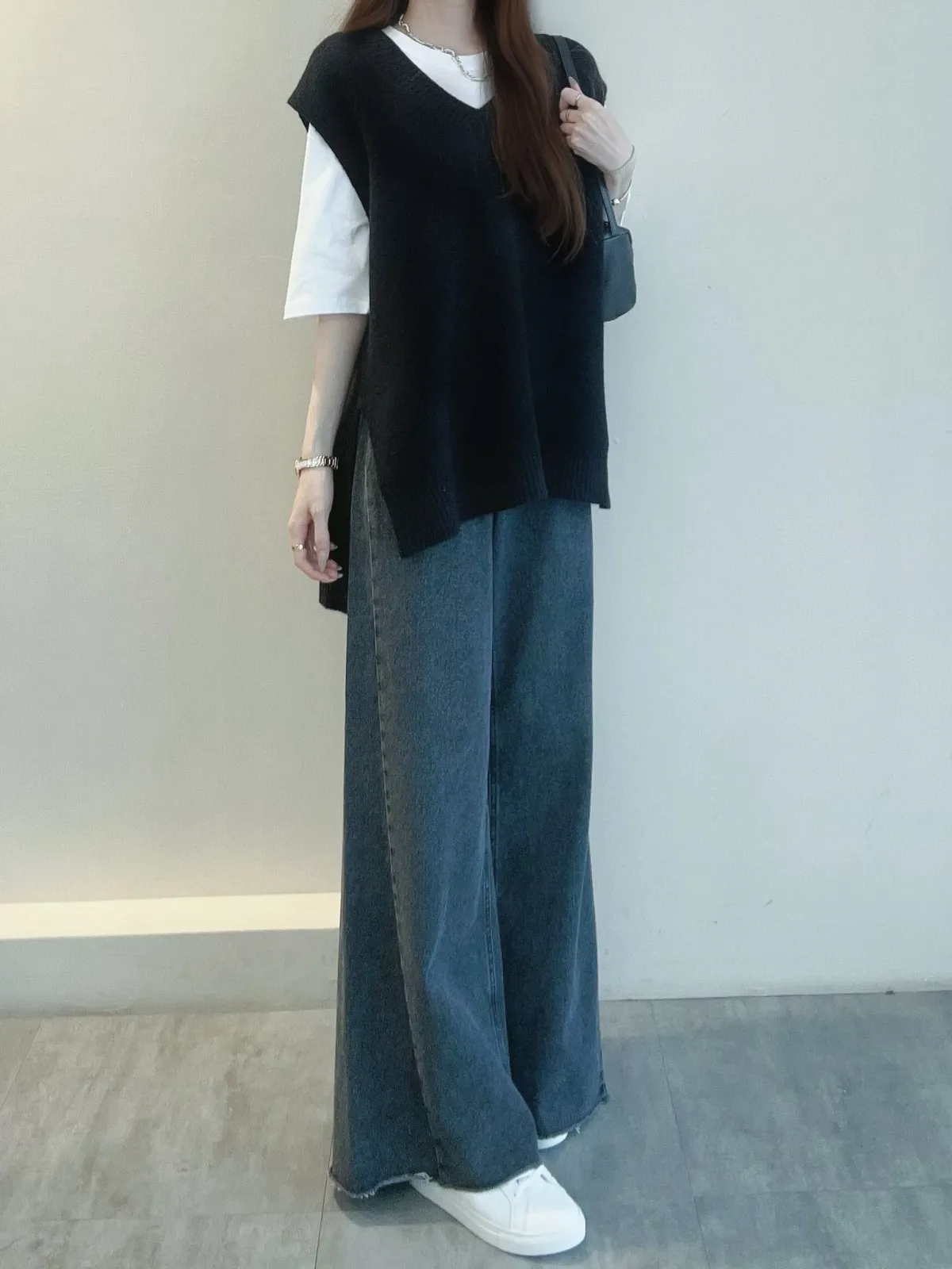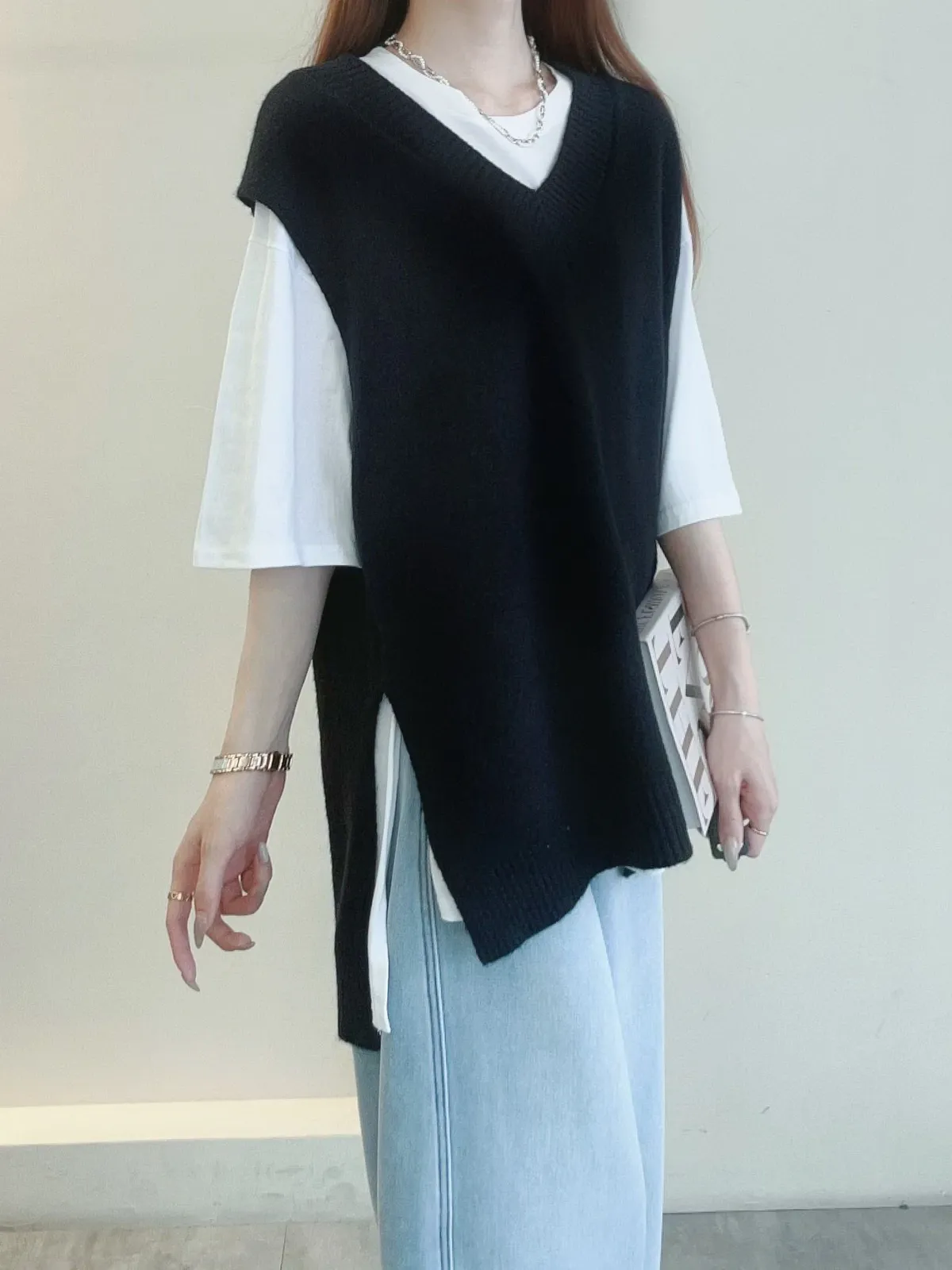 前短後長剪裁搭配兩側開衩設計